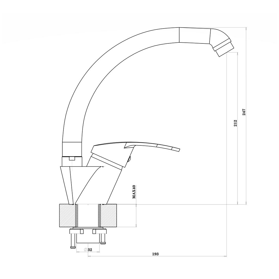 Смеситель однорычажный с низким изливом. Материал - корпуса латунь, материал излива нерж. Сталь. Поворотный излив. Керамический картридж 40 мм. Гибкая подводка 50 см.