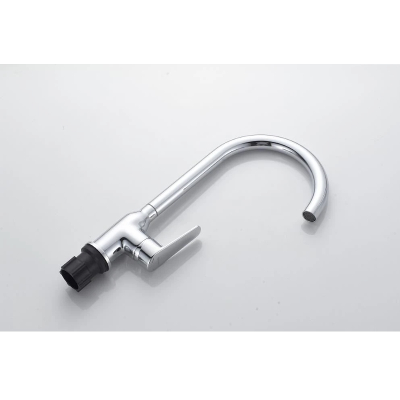 Его хромовый цвет и поворотный излив гармонично впишутся в интерьер любой кухни. Материал изготовления - высококачественная латунь - гарантирует прочность и долговечность смесителя.