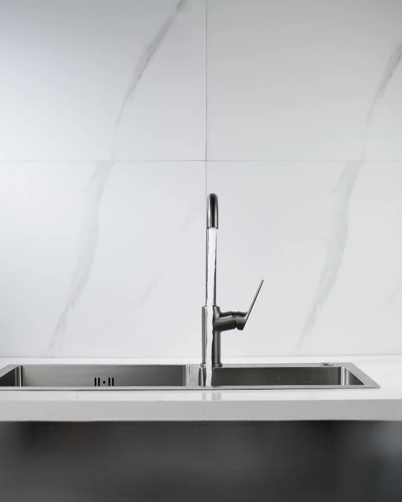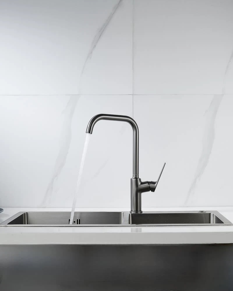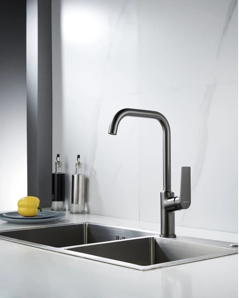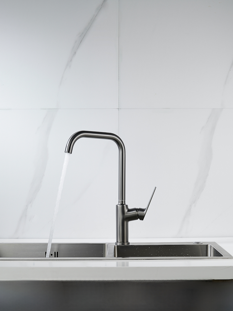 Современный стиль на вашей кухне. Смеситель KN-61/GM в изысканном цвете вороненой стали станет акцентом интерьера, сочетая эстетику и практичность.