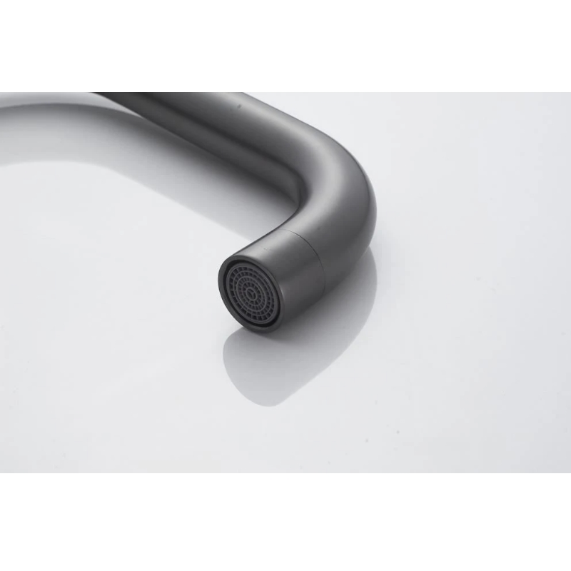 Его модный современный цвет "вороненая сталь" и поворотный излив гармонично впишутся в интерьер любой кухни. Материал изготовления - высококачественная латунь - гарантирует прочность и долговечность смесителя.