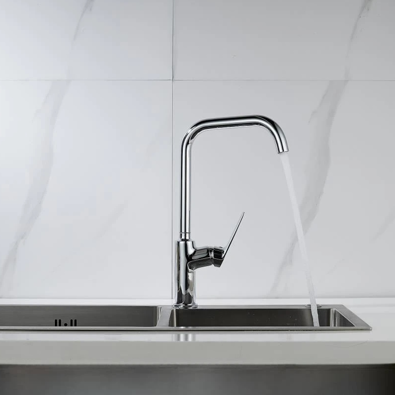 Его хромовый цвет и поворотный излив гармонично впишутся в интерьер любой кухни. Материал изготовления - высококачественная латунь - гарантирует прочность и долговечность смесителя.