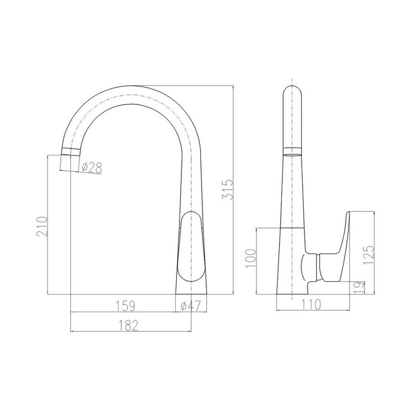 Монолитный корпус смесителя изготовлен из качественной латуни с гладким покрытием цвета хром.