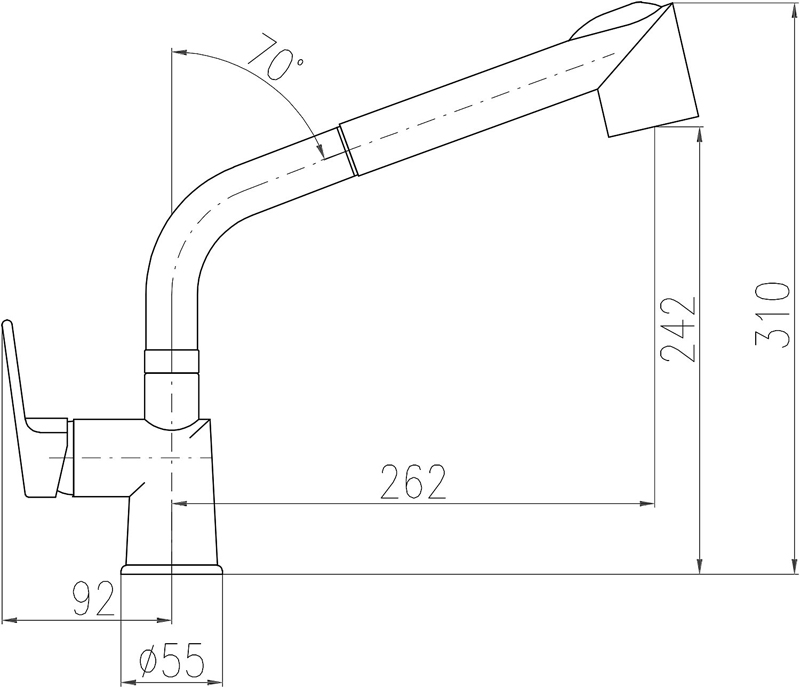 Шланг пластмассовый черный матовый вытягивающийся, длиной 150 см