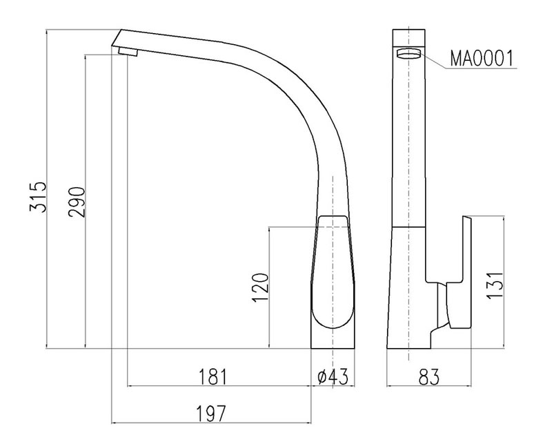 Монолитный корпус смесителя изготовлен из качественной латуни с гладким покрытием цвета хром.