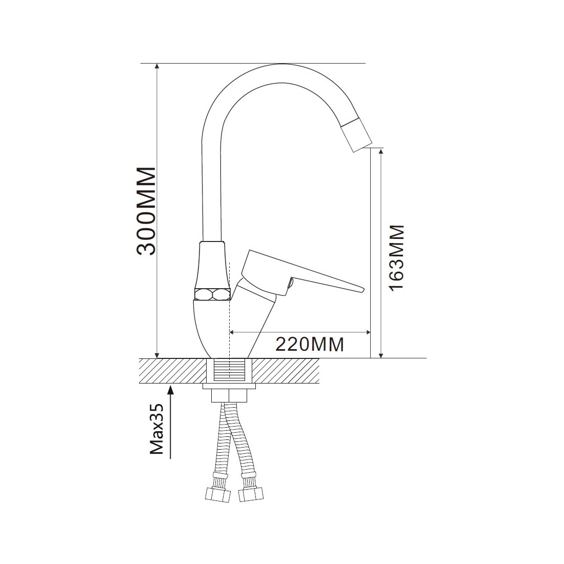 Гибкая подводка длиной 40 см. входит в комплект поставки, что упрощает процесс установки смесителя.