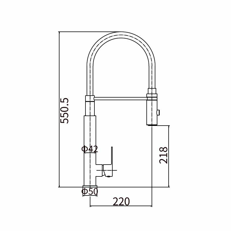 Смеситель для кухни с гибким изливом FASHUN A54102-3, сатин. Управление: рычажное. Вращение излива: да. Выдвижной излив: нет. Гибкий излив: да. Высота: 55 см.