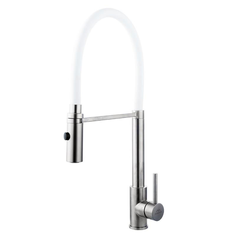 Смеситель для кухни с гибким изливом FASHUN A54111-8, сатин/белый
