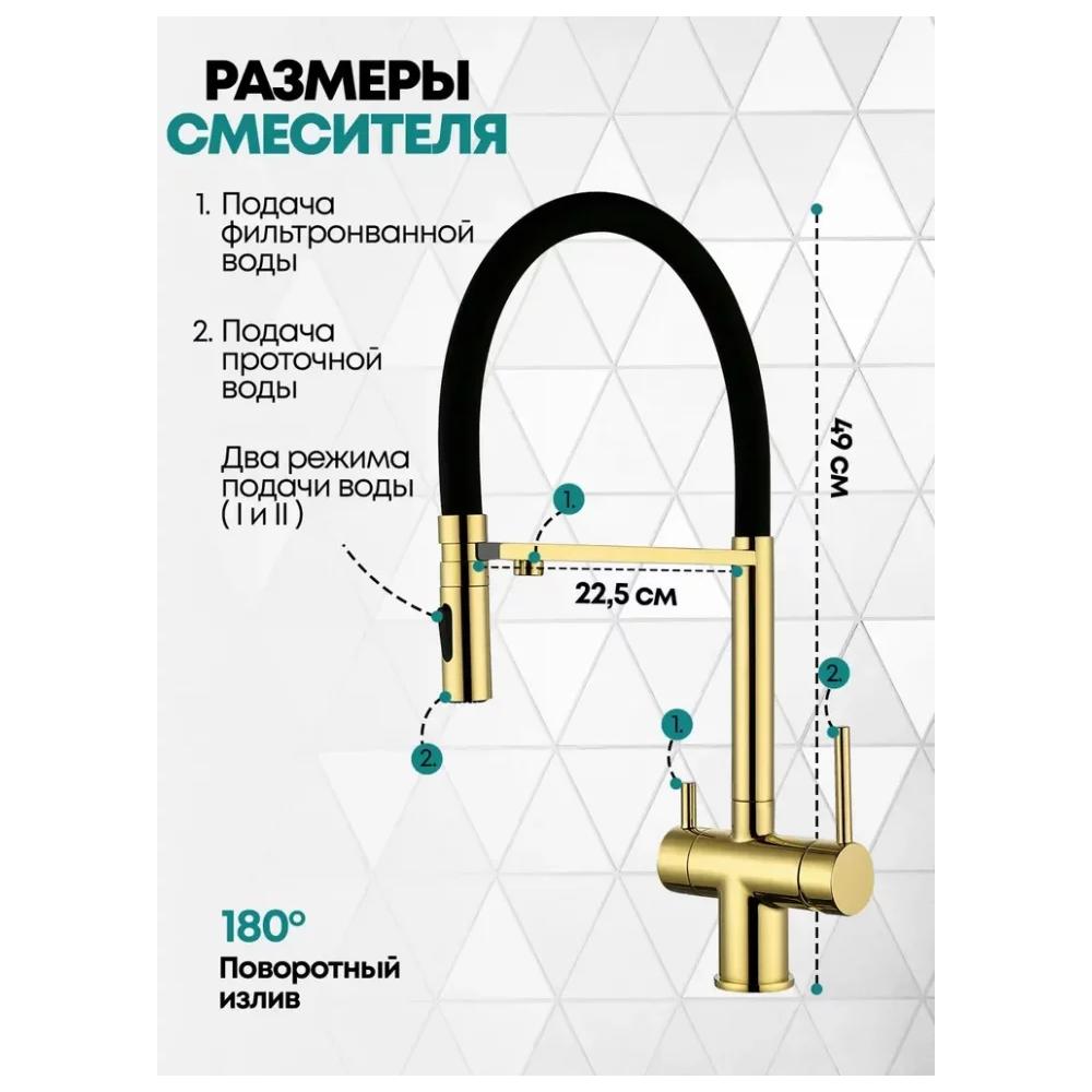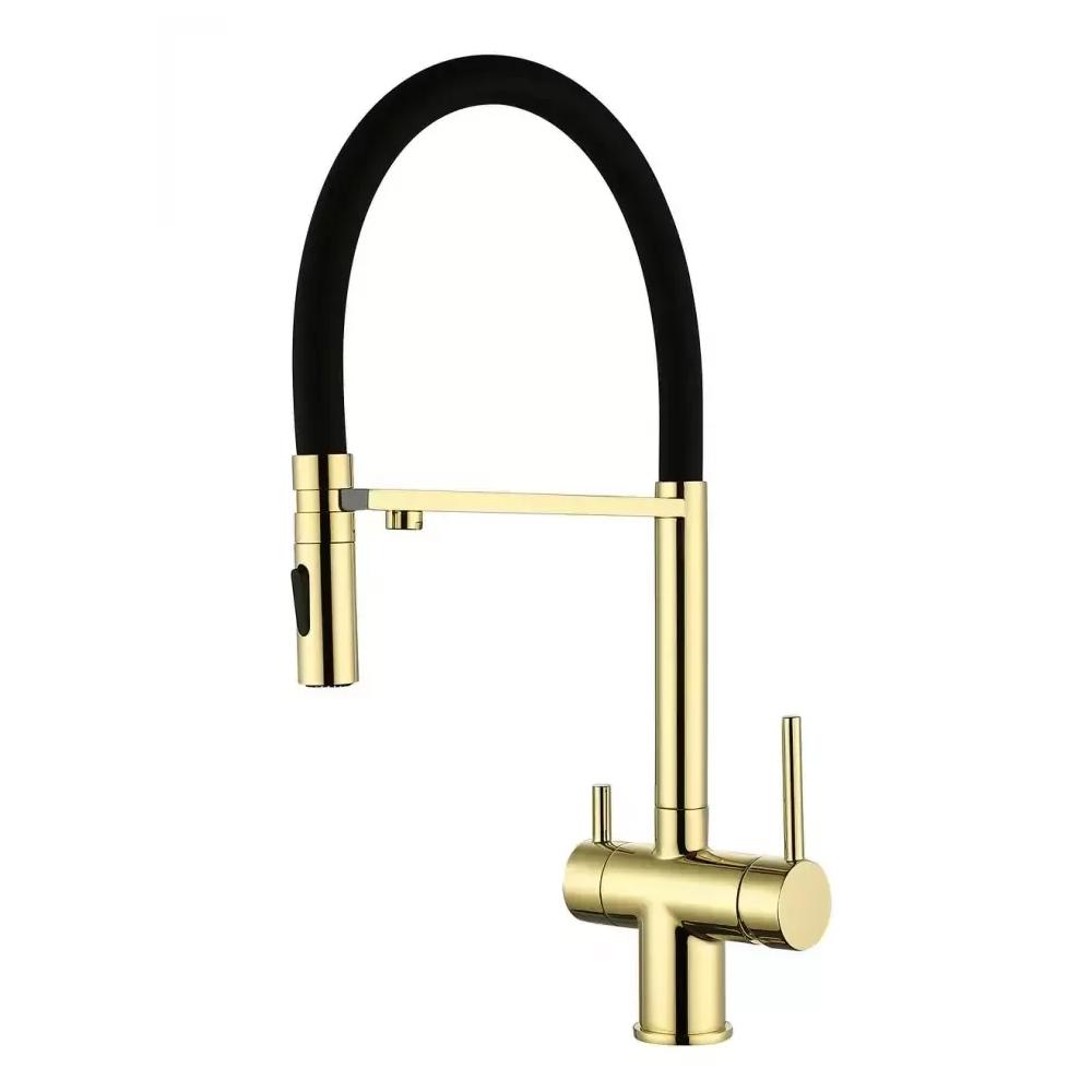 Смеситель для кухни с гибким изливом и подключением фильтра Grocenberg GB4096GO, золото