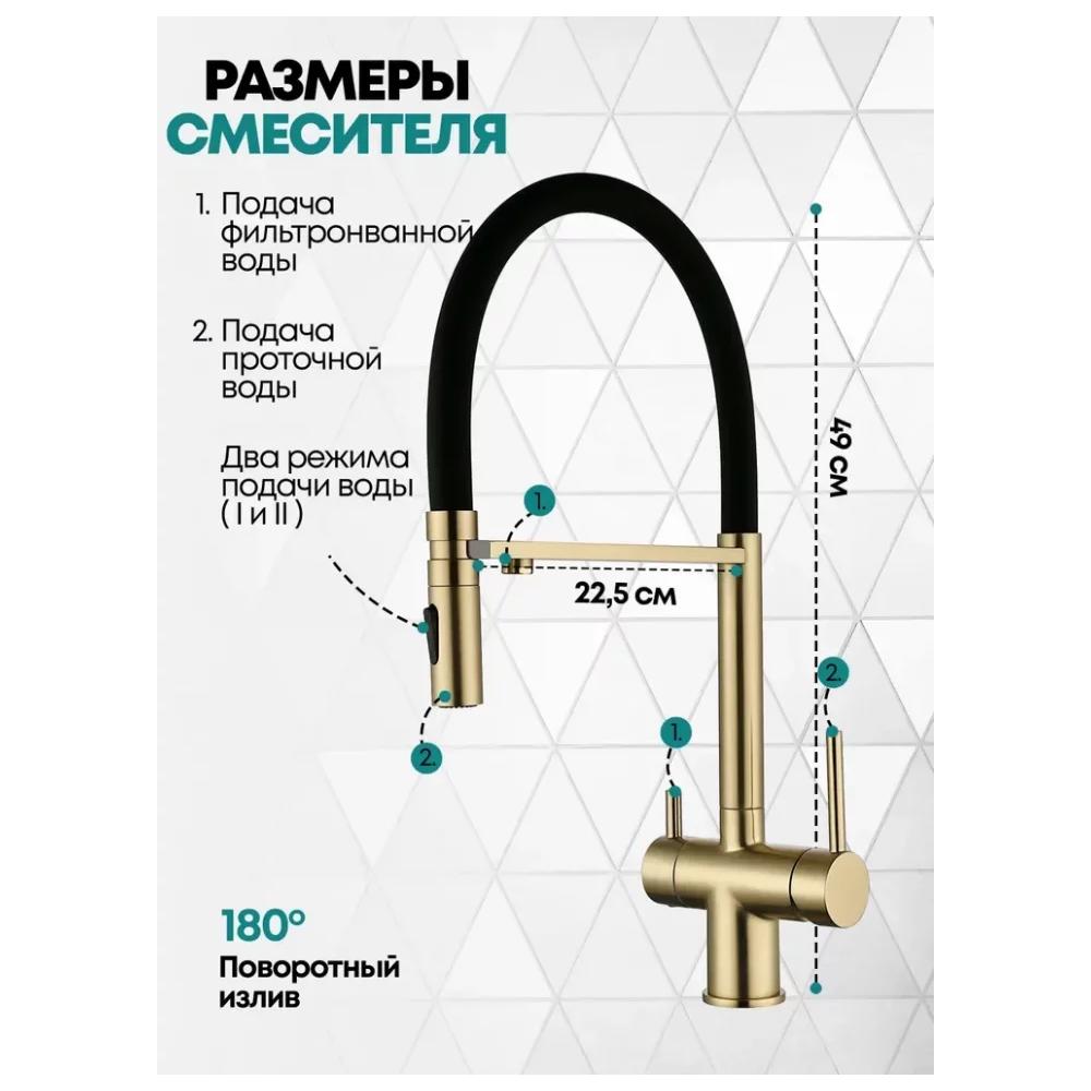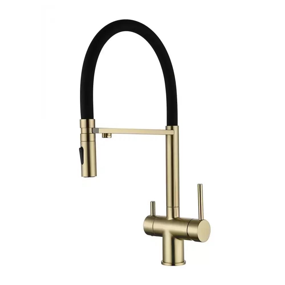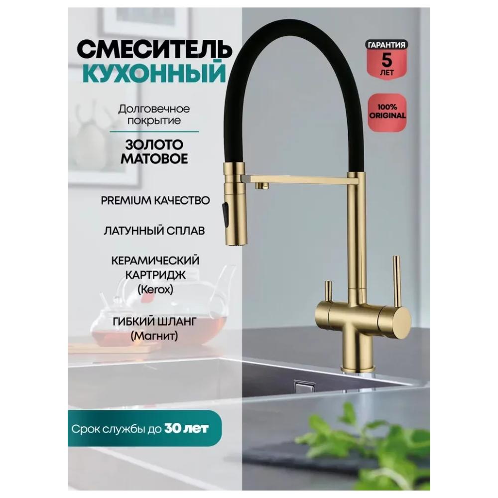 Смеситель для кухни с гибким изливом и подключением фильтра Grocenberg GB4096MG, матовое золото