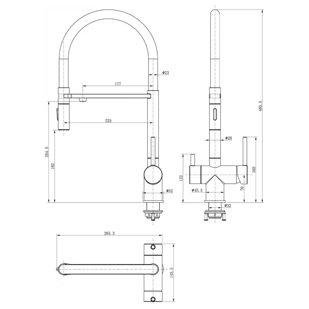 Смеситель для кухни с подключением к фильтру и двумя режимами лейки. Керамический картридж Kerox (Венгрия).