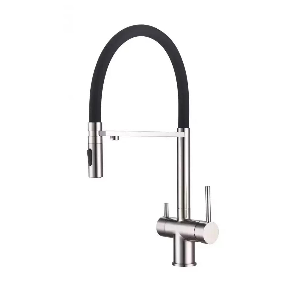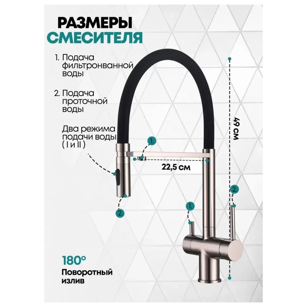 Смеситель для кухни с гибким изливом и подключением фильтра Grocenberg GB4096NK, никель