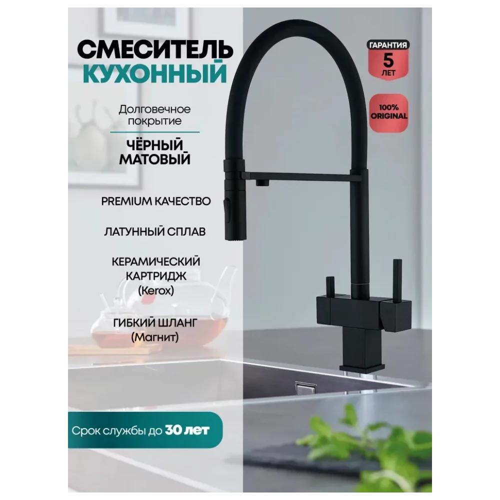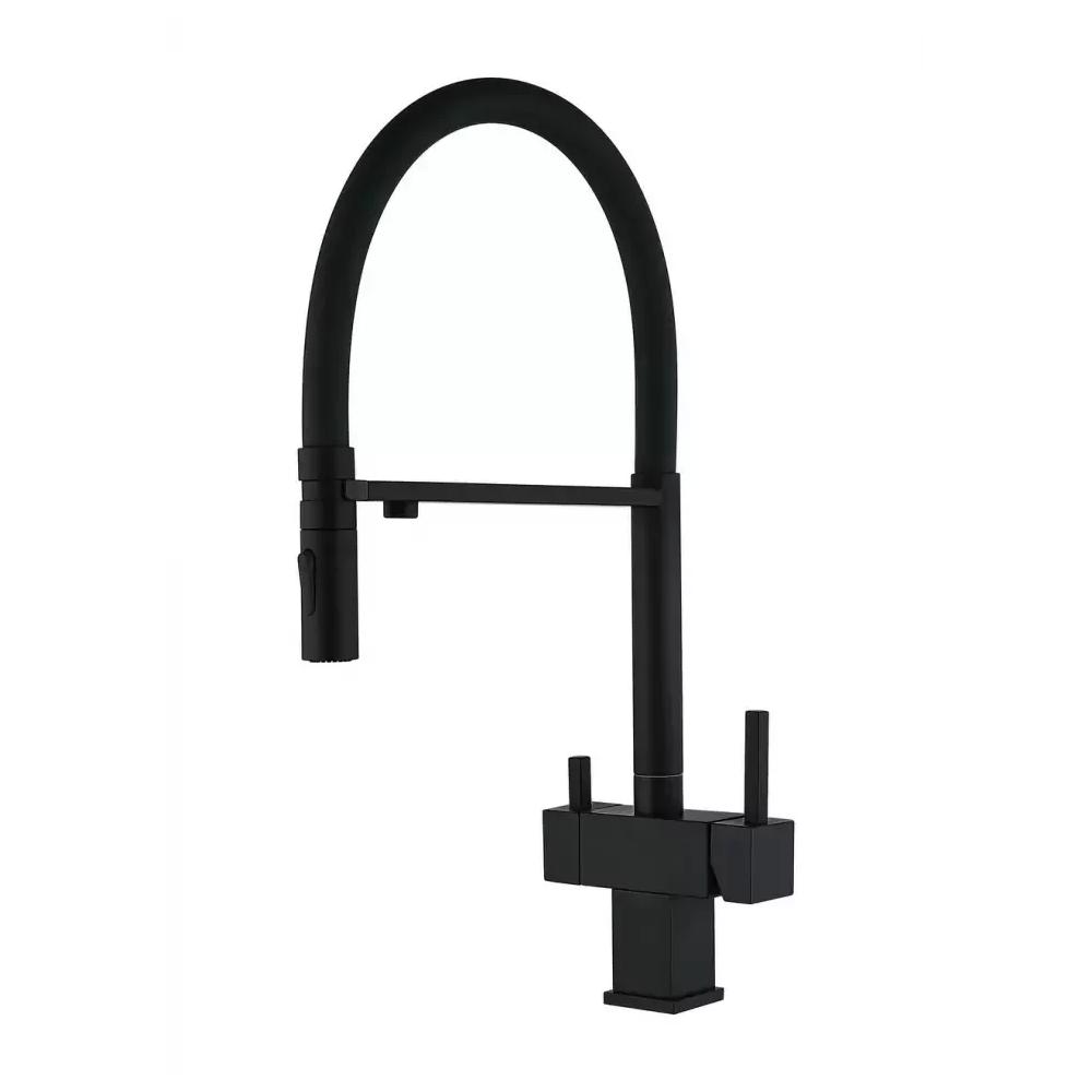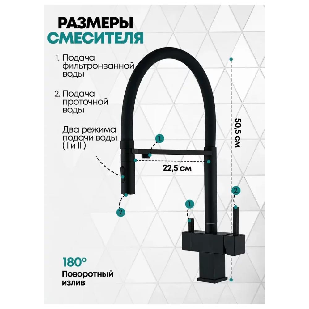 Смеситель для кухни с гибким изливом и подключением фильтра Grocenberg GB4098BL, черный