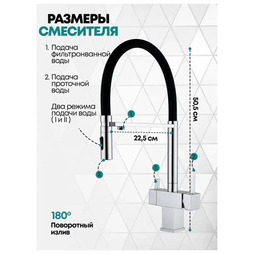 Смеситель для кухни с гибким изливом и подключением фильтра Grocenberg GB4098CR, хром