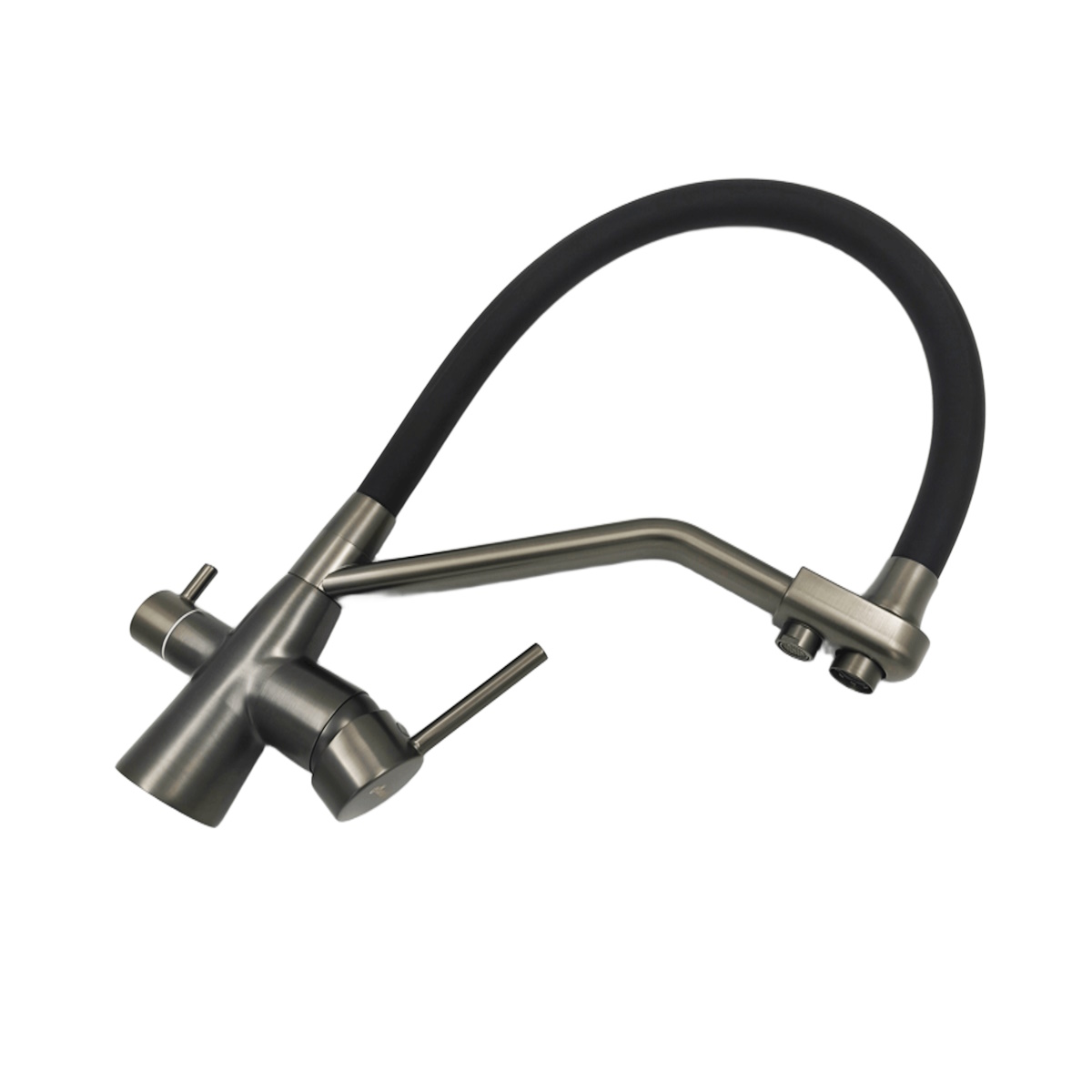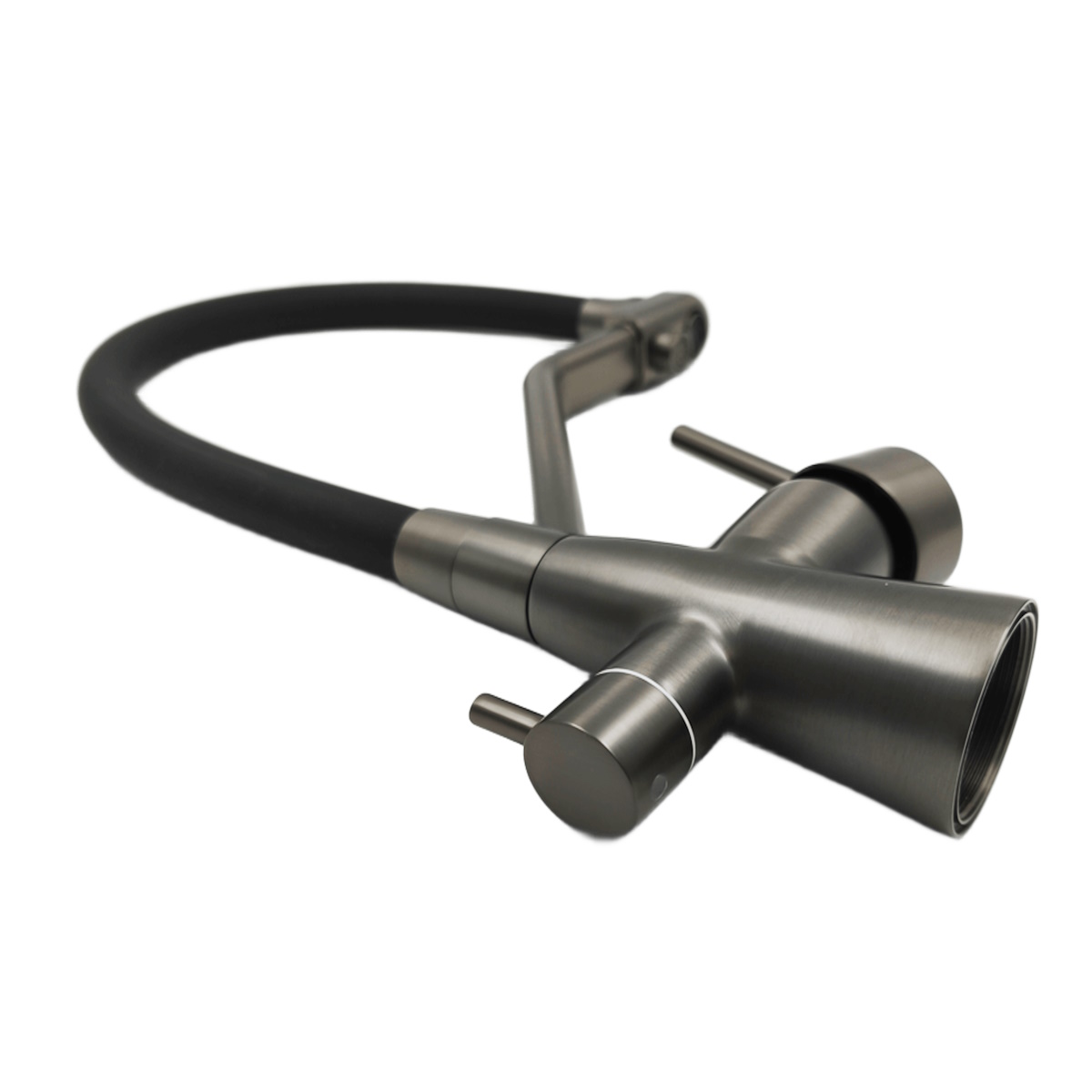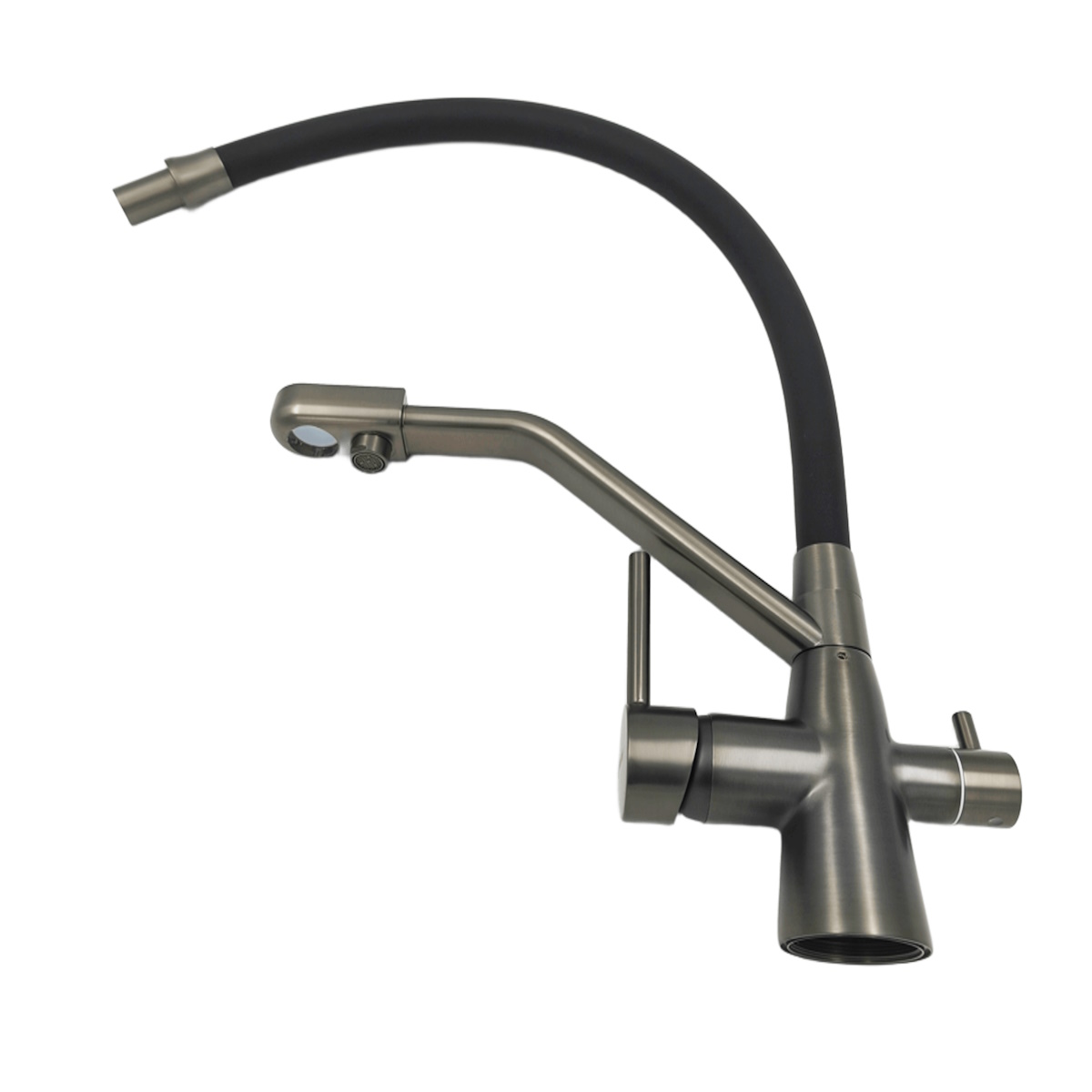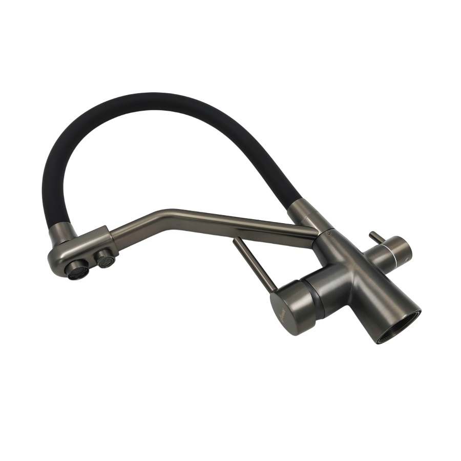 Смеситель для кухни с гибким изливом и подключением фильтра Maretti Eleganza EN31RGF14, оружейная сталь