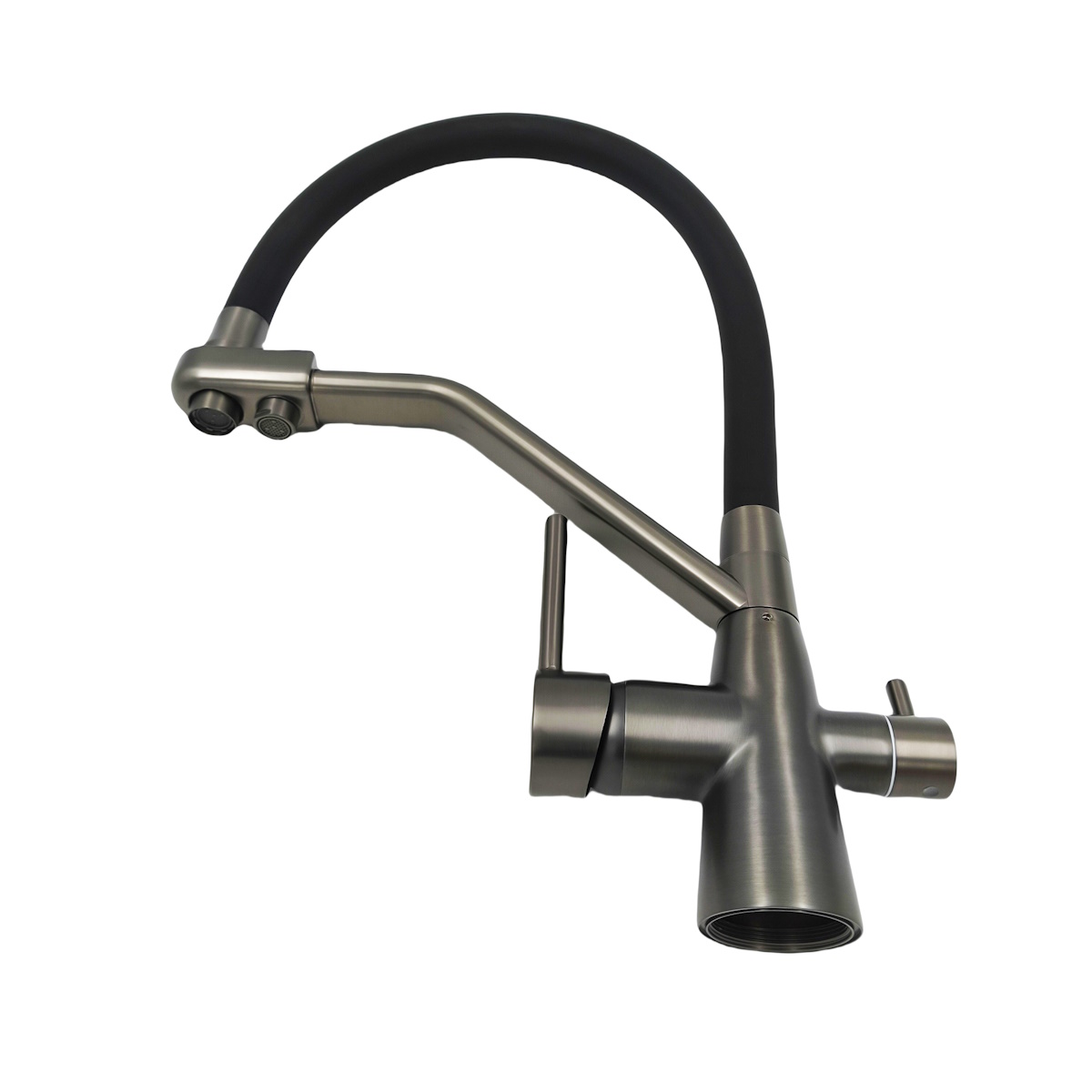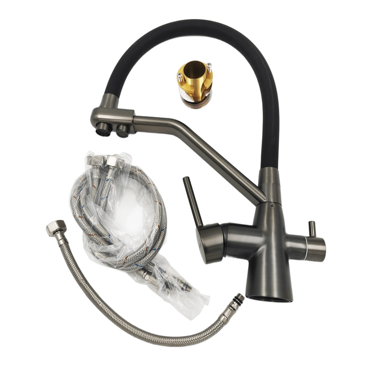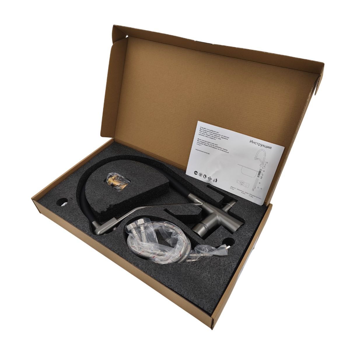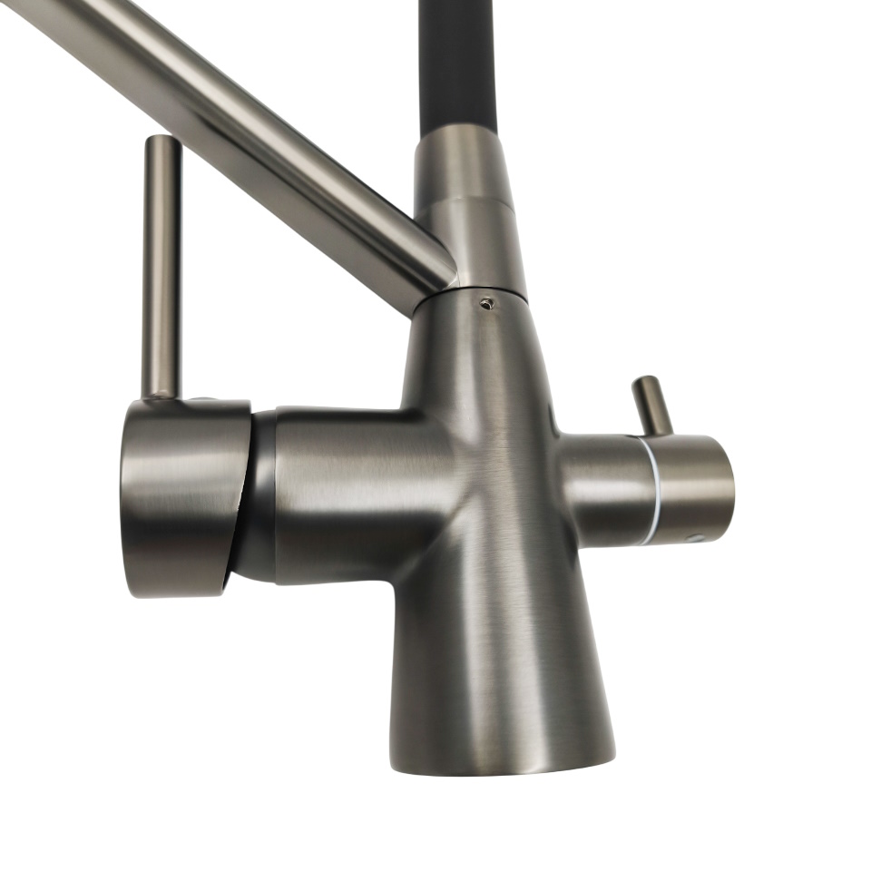 Смеситель для кухни с гибким изливом и подключением фильтра Maretti Eleganza EN31RGF14, оружейная сталь