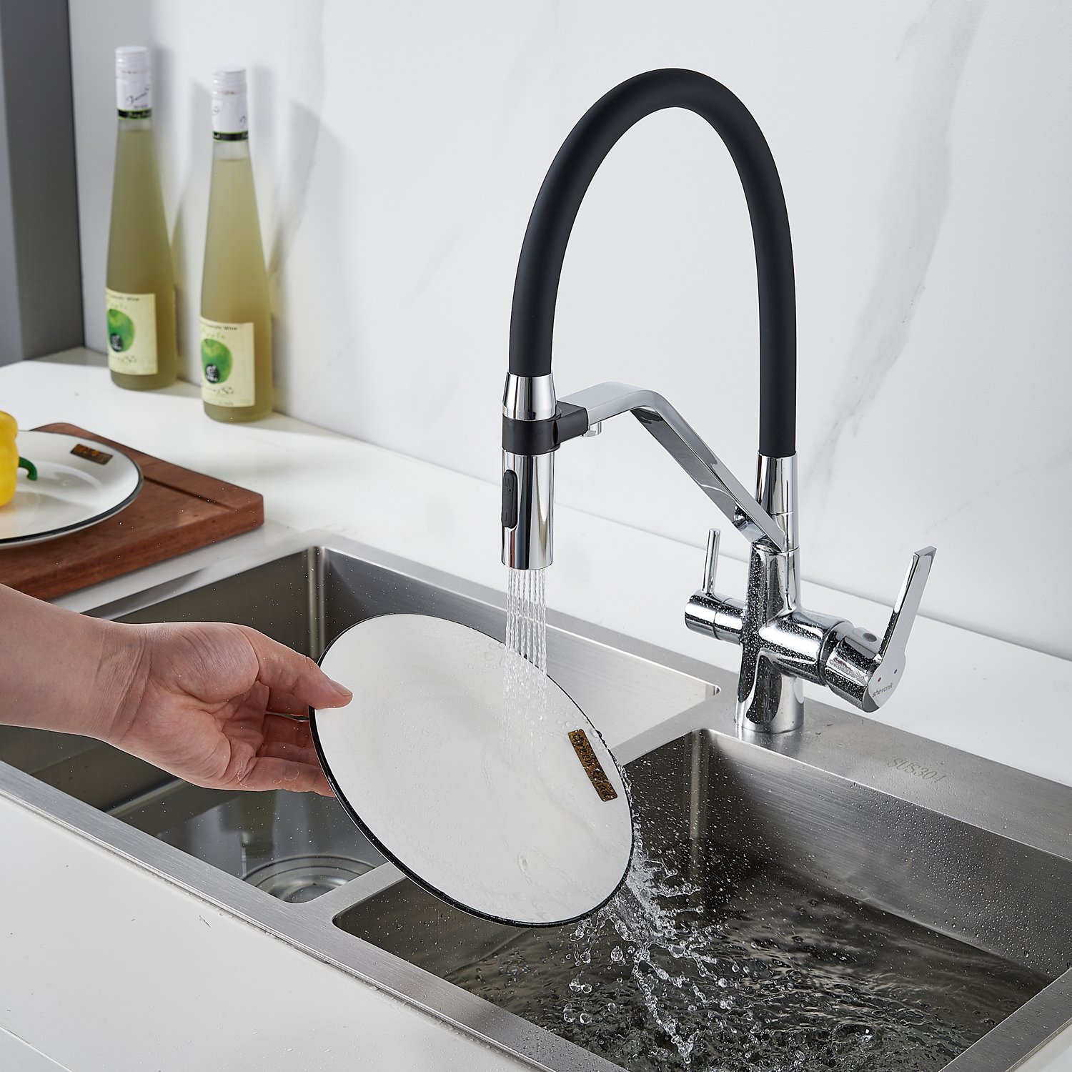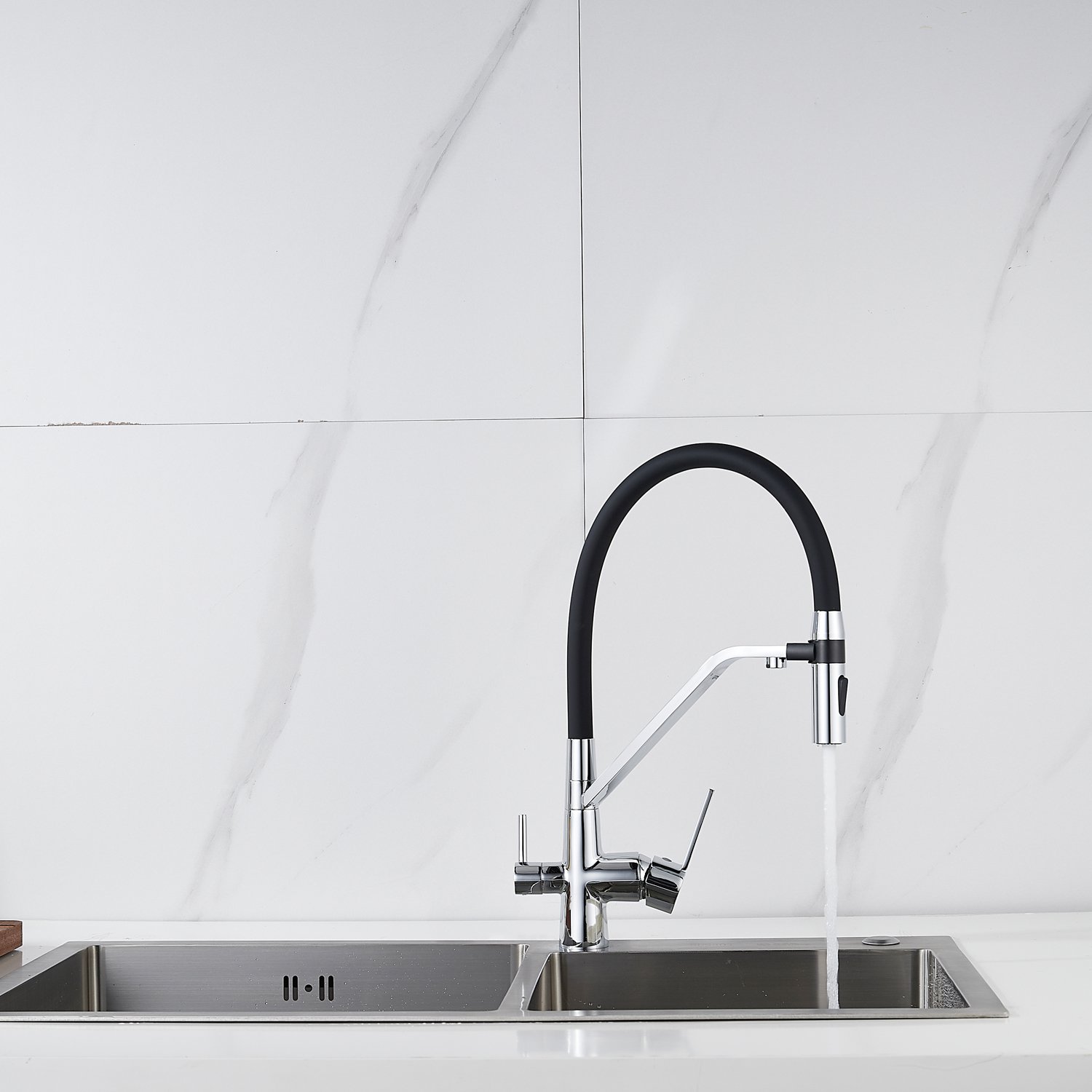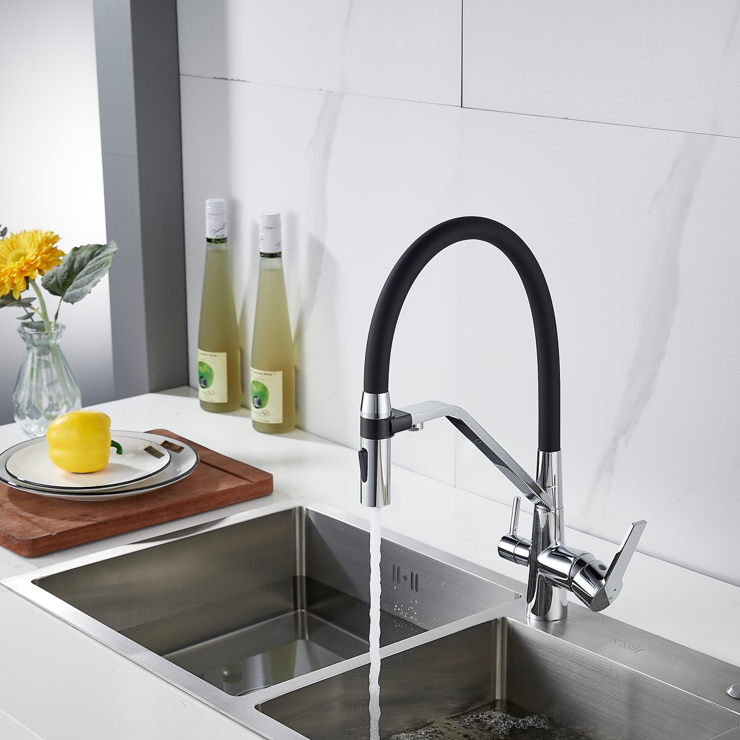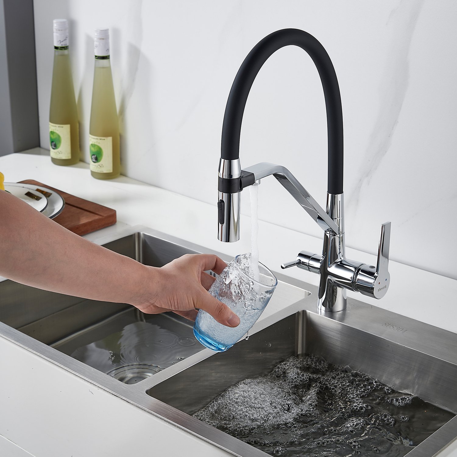 Смеситель для кухни с гибким изливом и подключением фильтра Shevanik S278, хром