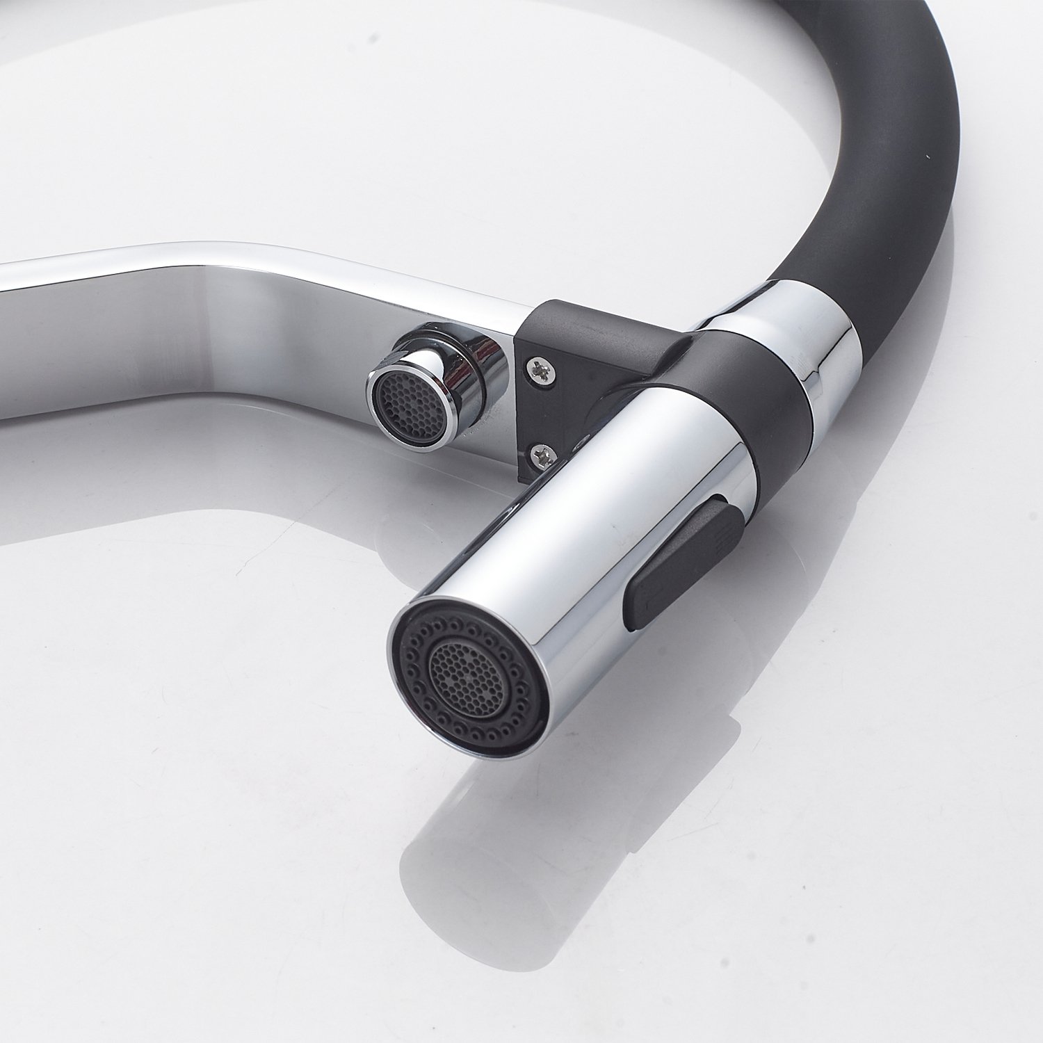 Высокая конструкция смесителя обеспечивает удобство использования даже при наполнении высоких емкостей. Гибкий излив с режимом “душ” позволяет легко направлять поток воды в нужном направлении, а после использования гибкий излив надежно крепится на магнитном держателе, что предотвращает его повреждение и обеспечивает порядок на кухне.