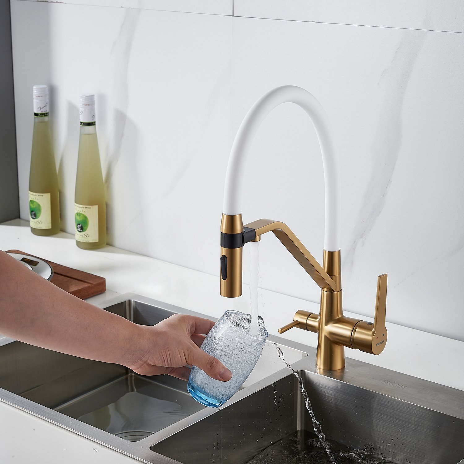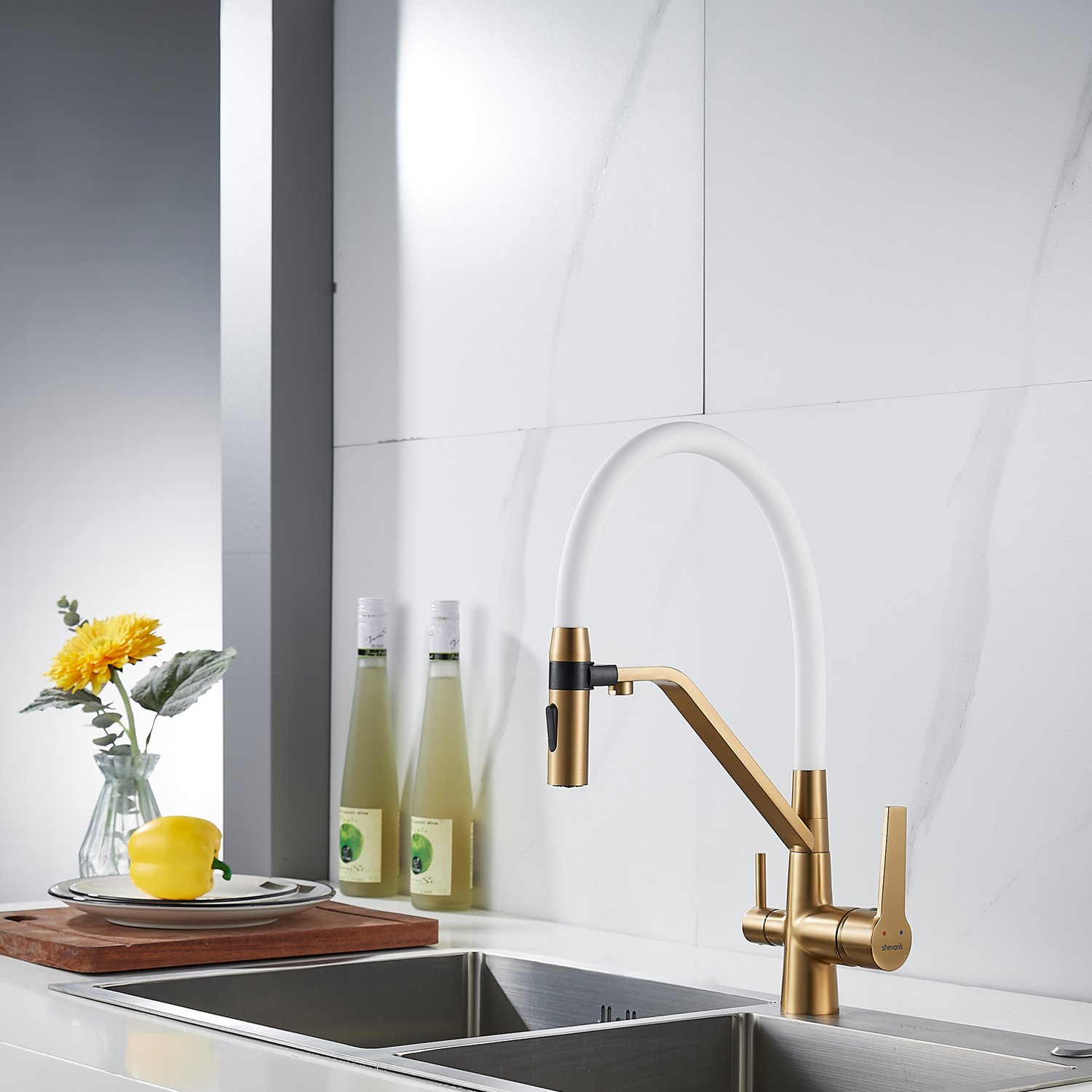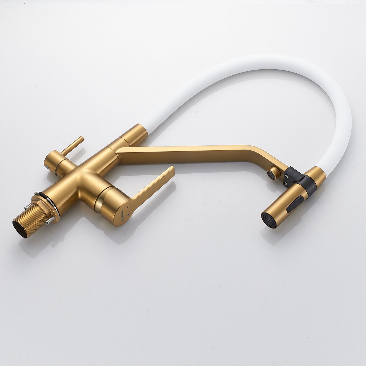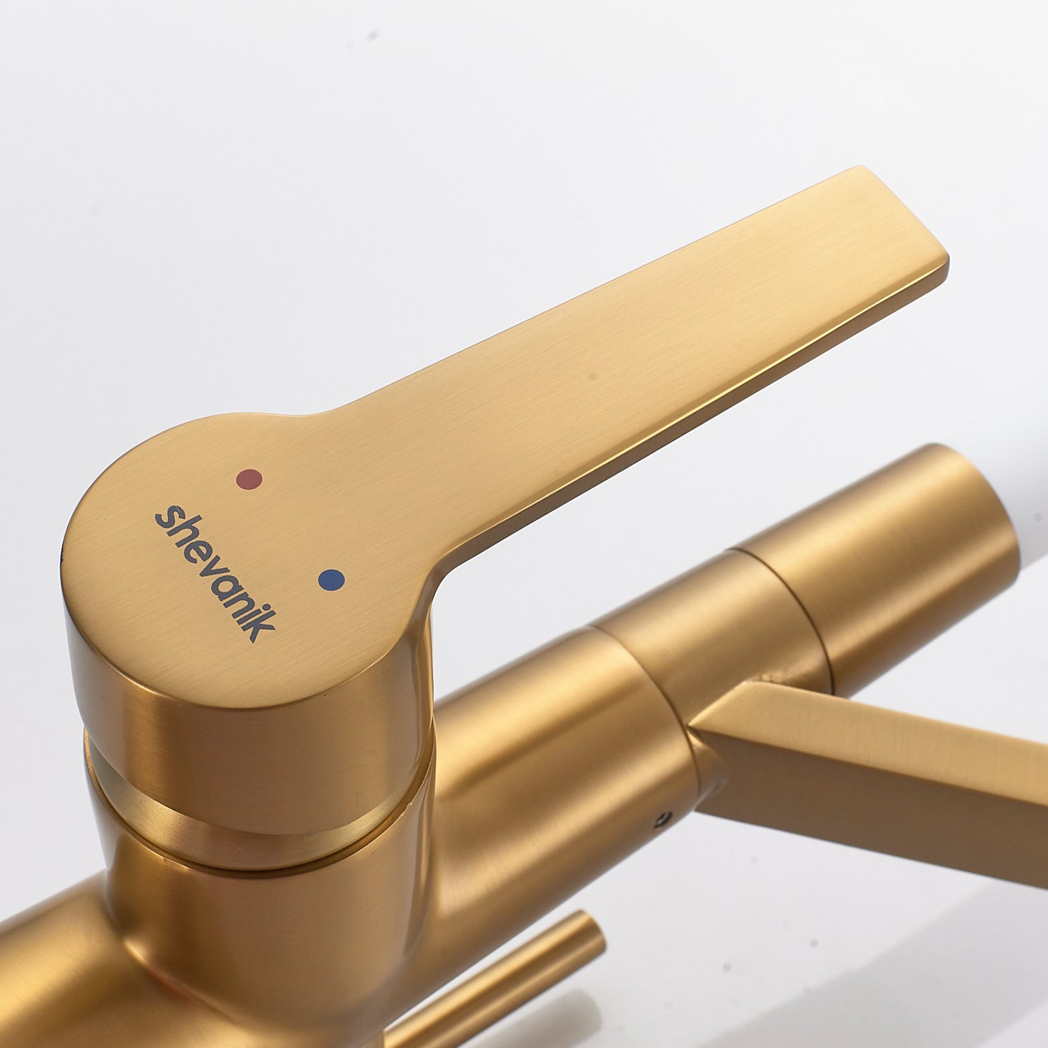 Смеситель для кухни с гибким изливом и подключением фильтра Shevanik S278G, золотой сатин