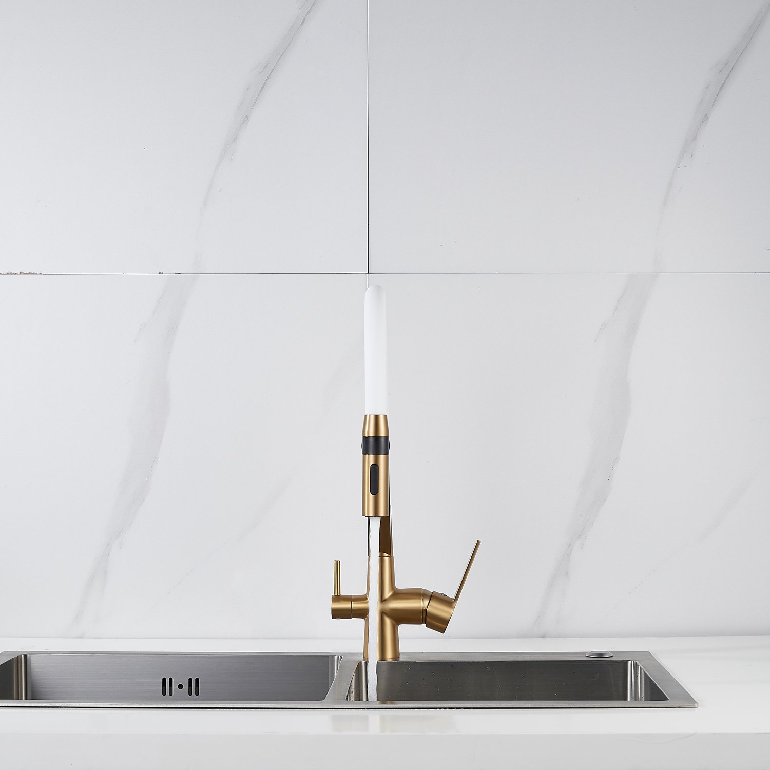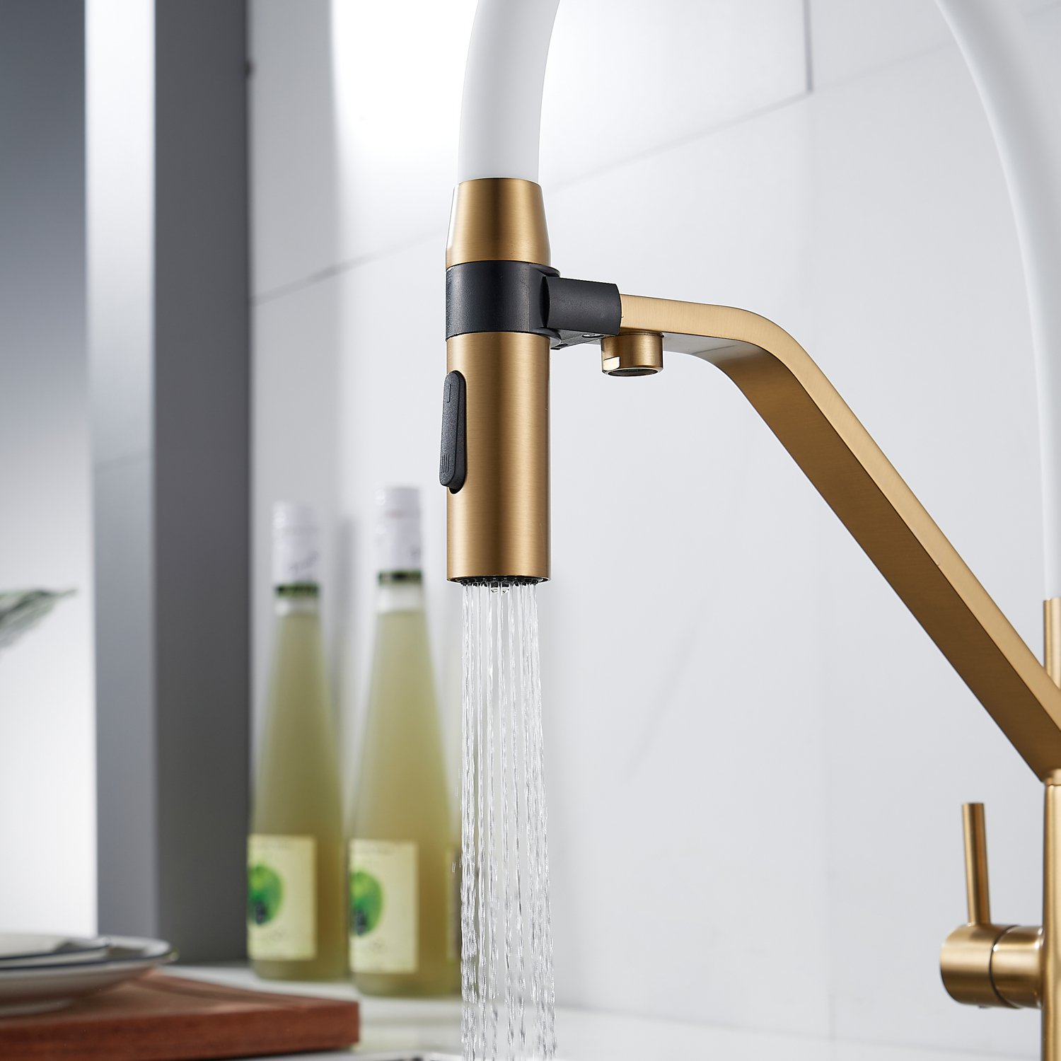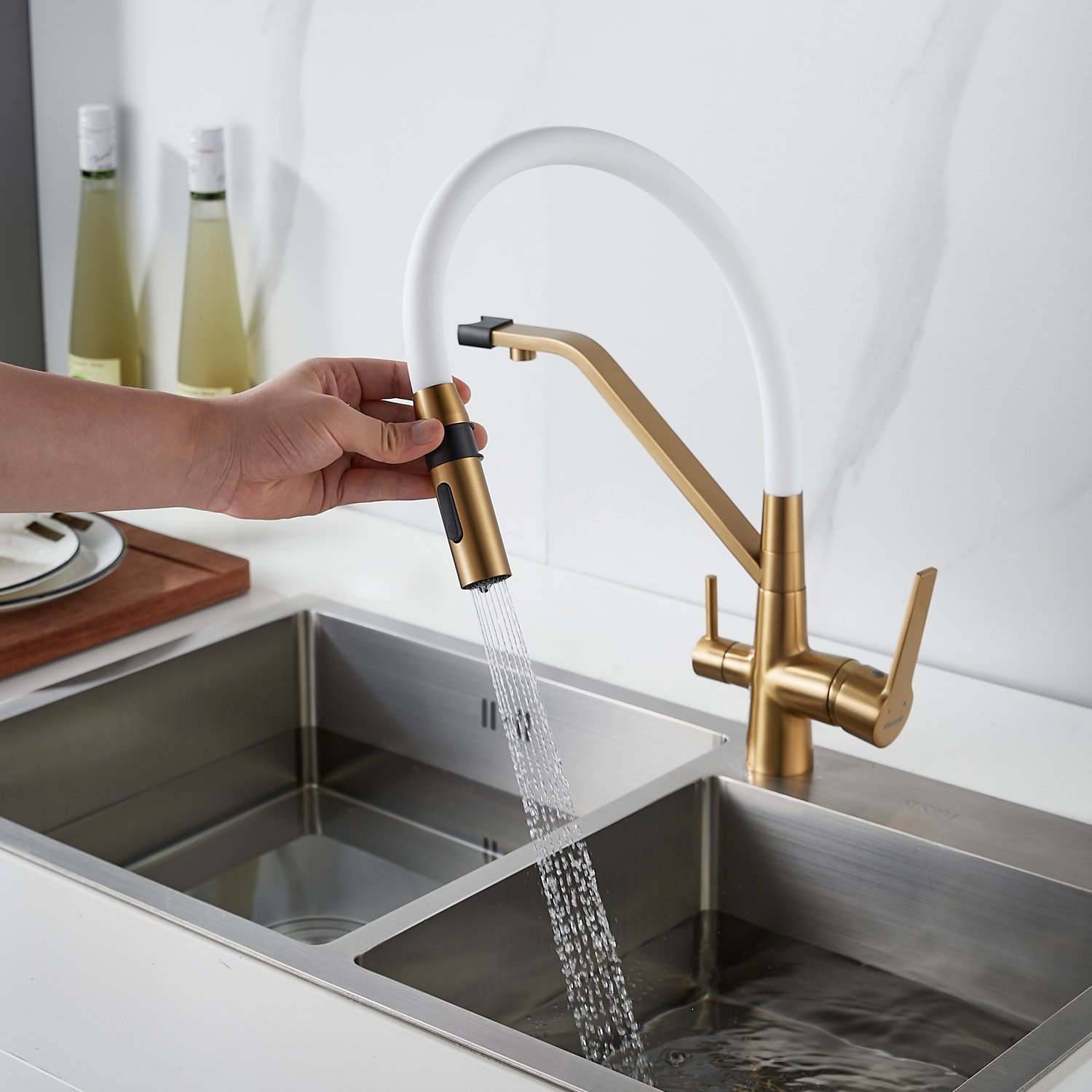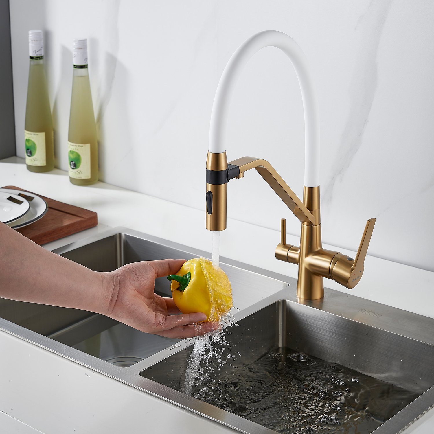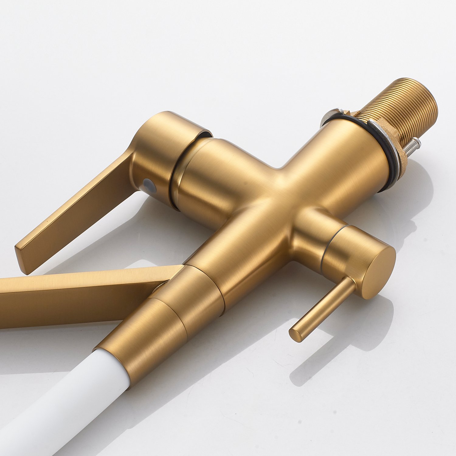 Смеситель для кухни с гибким изливом и подключением фильтра Shevanik S278G, золотой сатин