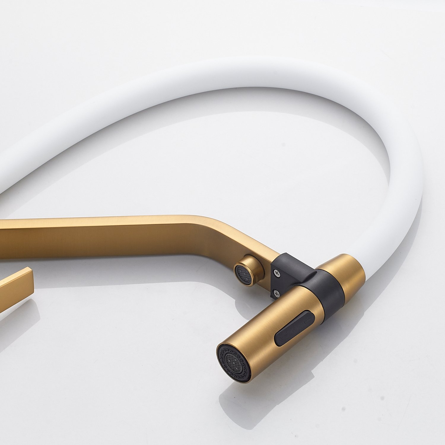 Смеситель для кухни с гибким изливом и подключением фильтра Shevanik S278G в современном цвете "золотой сатин" – это идеальное решение для тех, кто ценит комфорт и функциональность. Изготовленный из высококачественной латуни, этот смеситель обеспечивает долговечность и надежность в использовании.