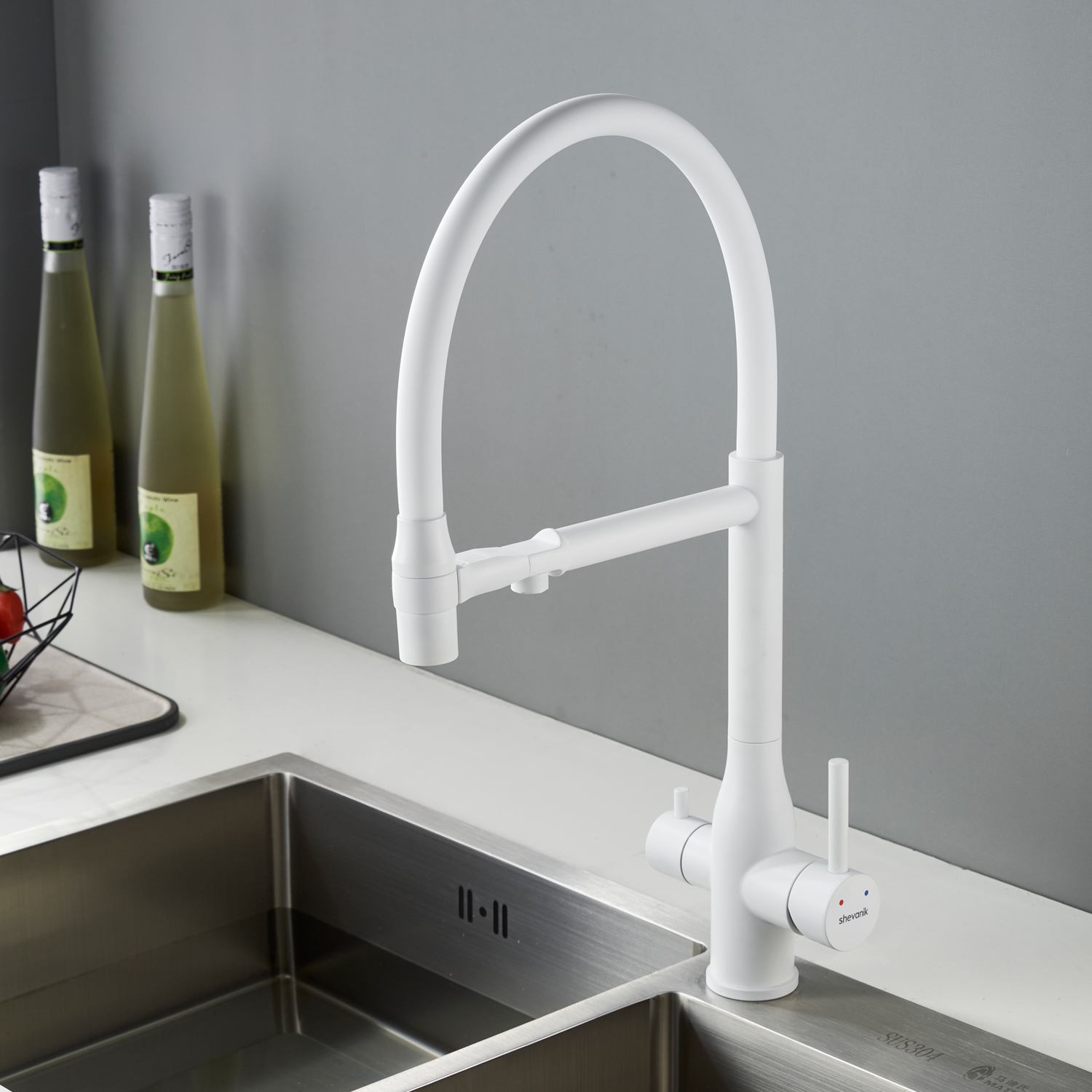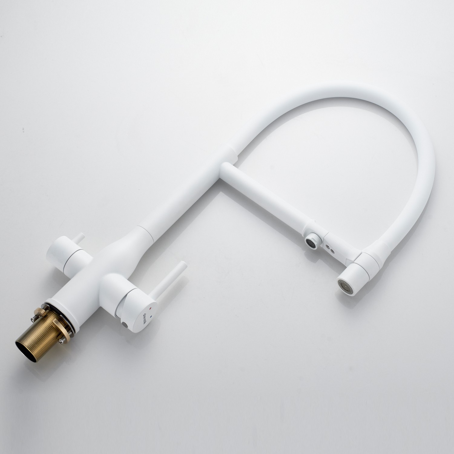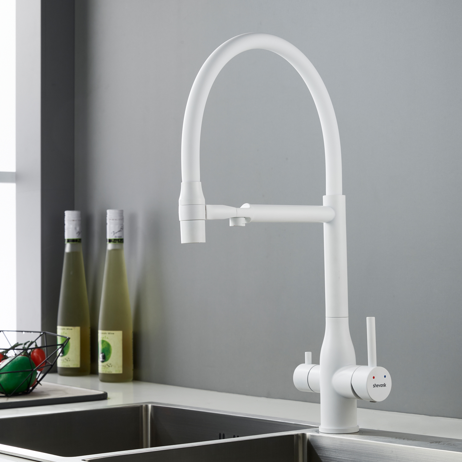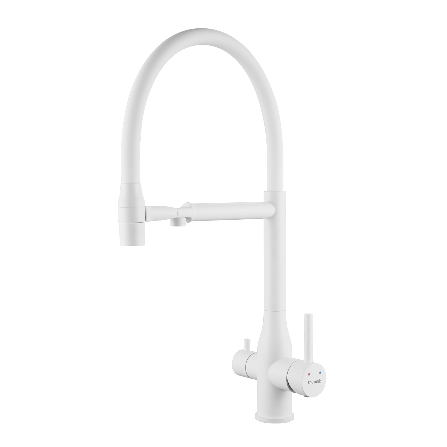 Смеситель для кухни с гибким изливом и подключением фильтра Shevanik S378C, белый