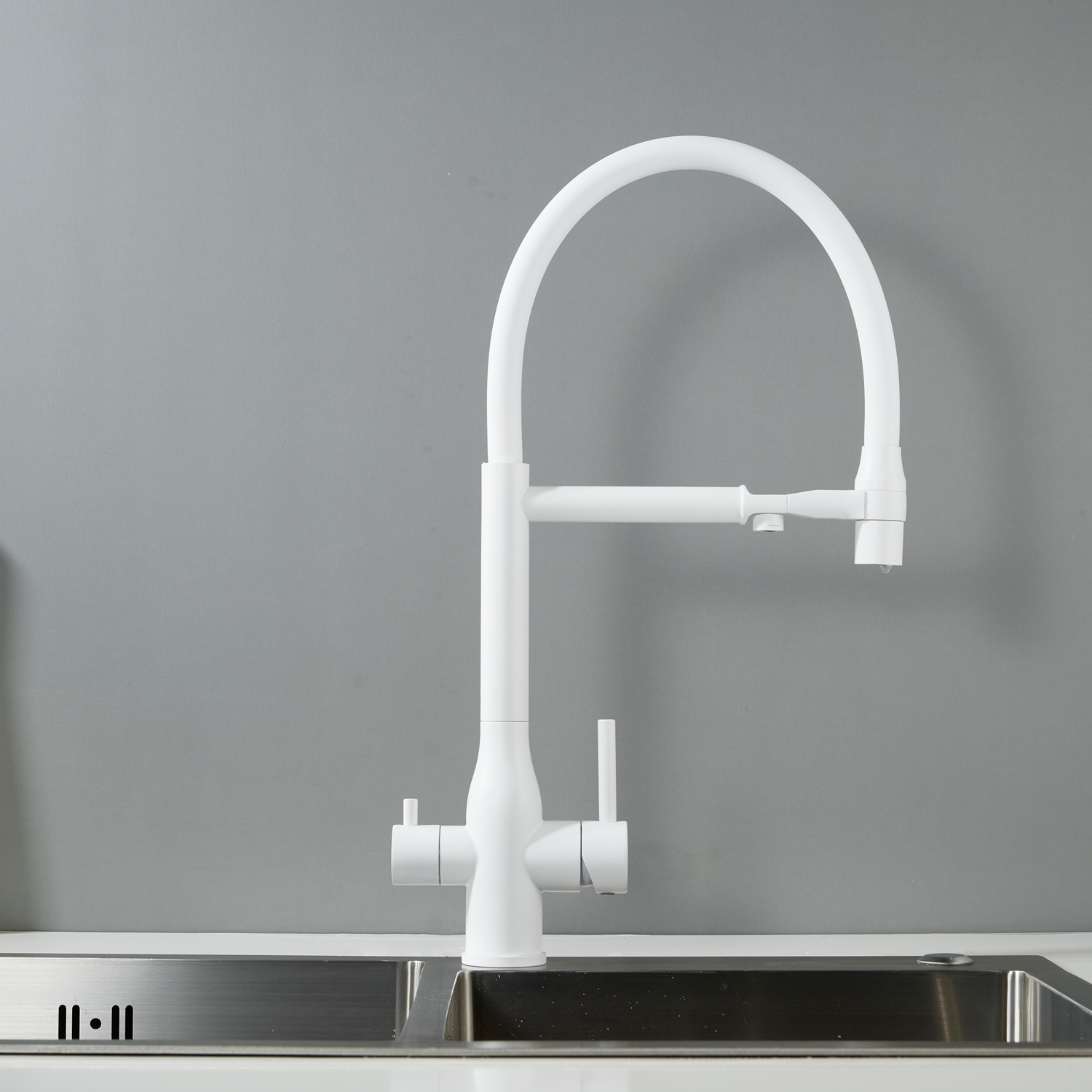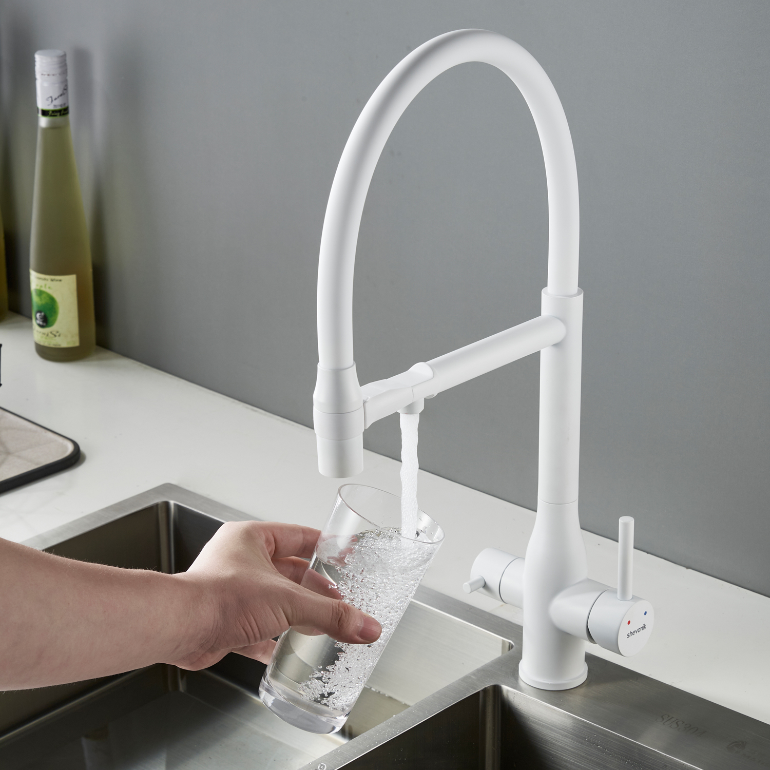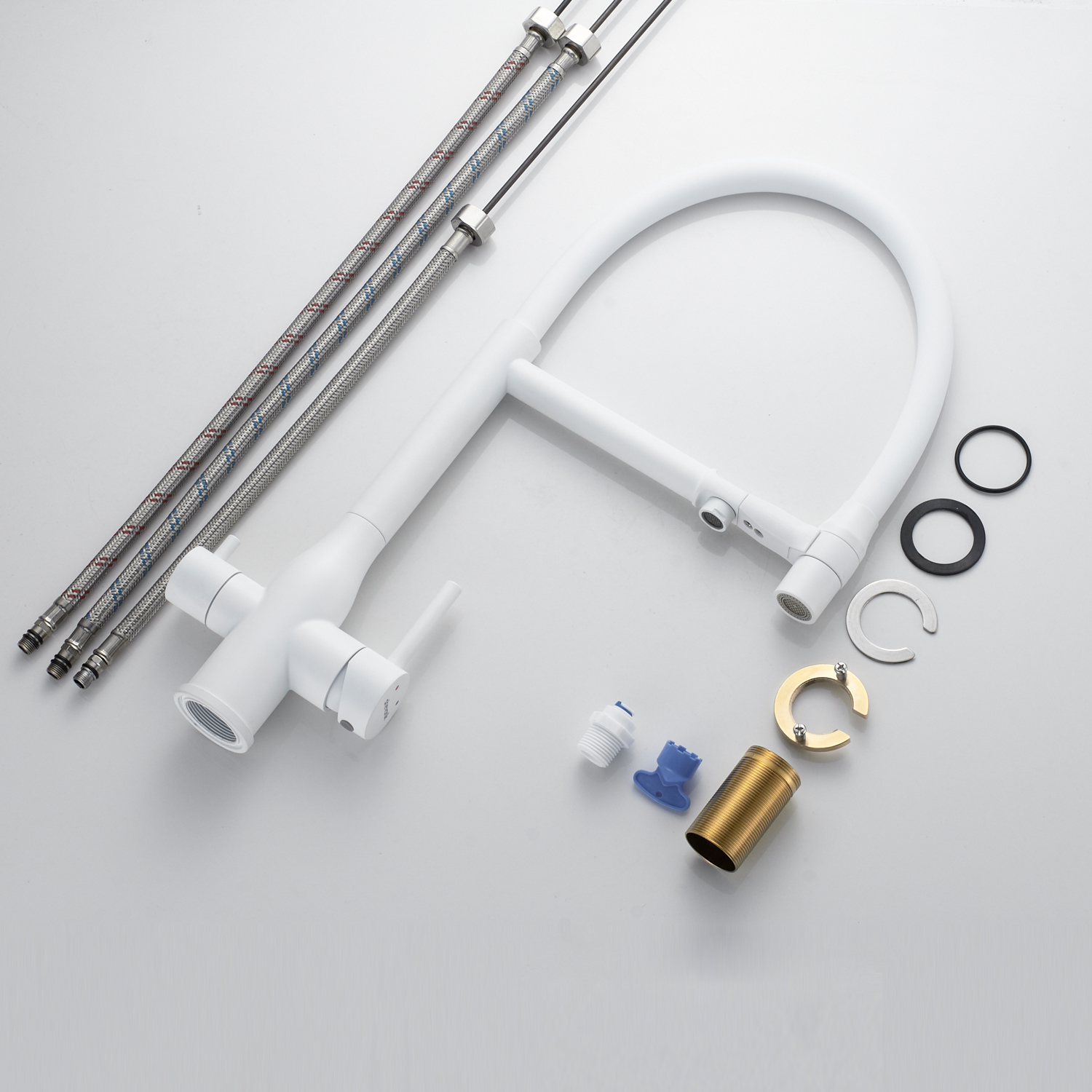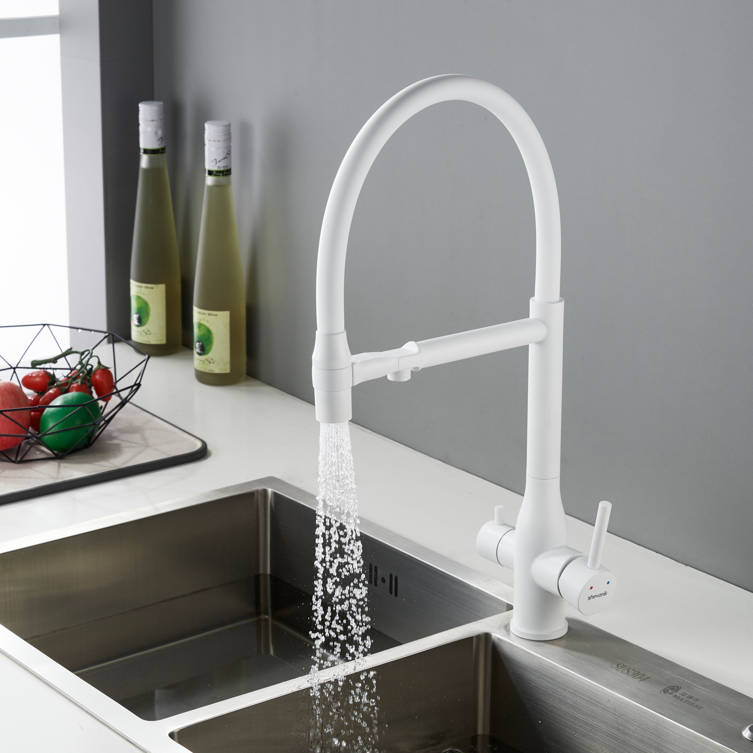 Смеситель для кухни с гибким изливом и подключением фильтра Shevanik S378C, белый