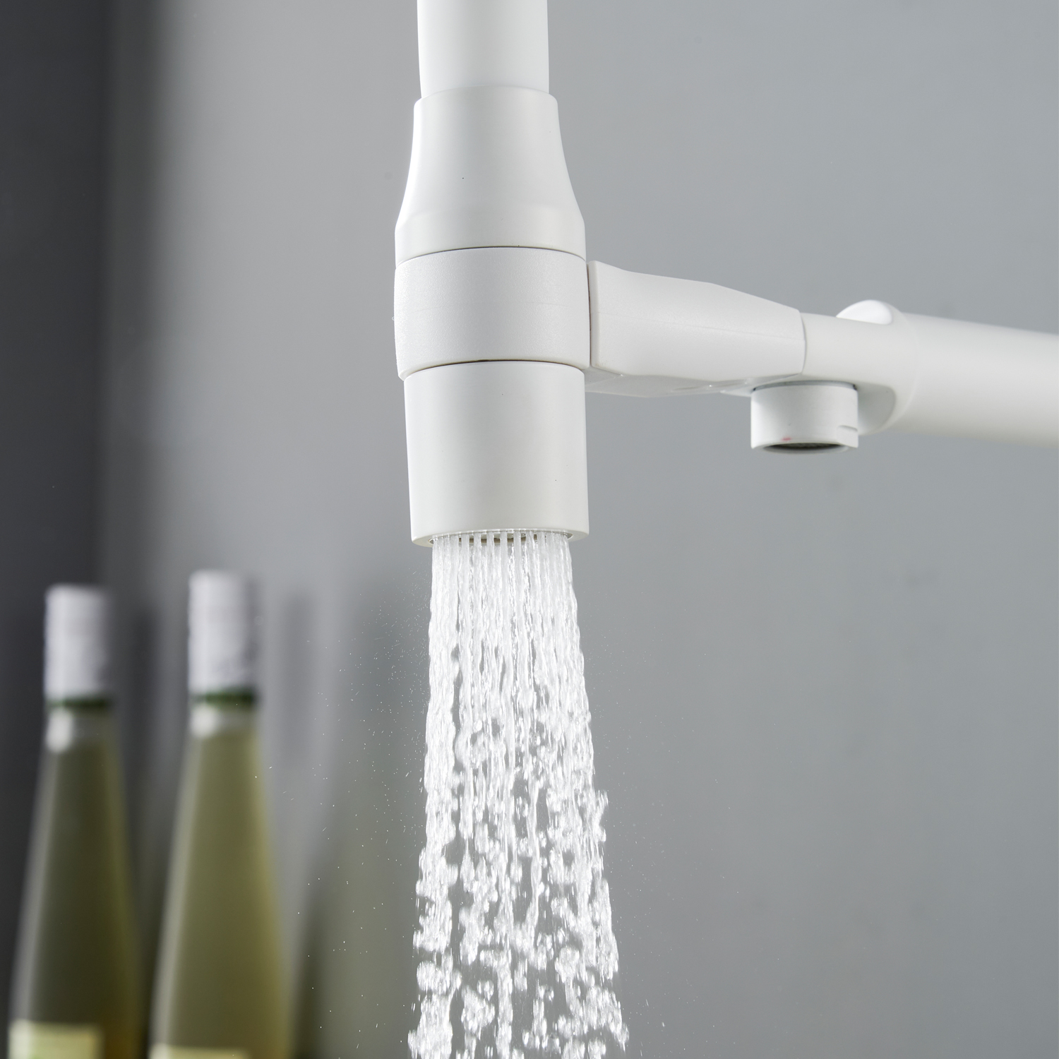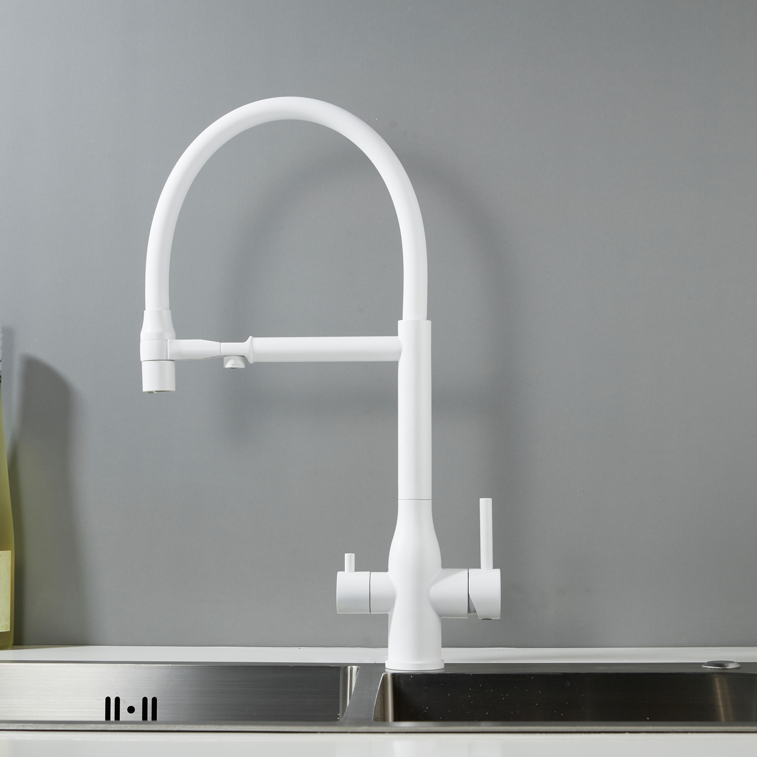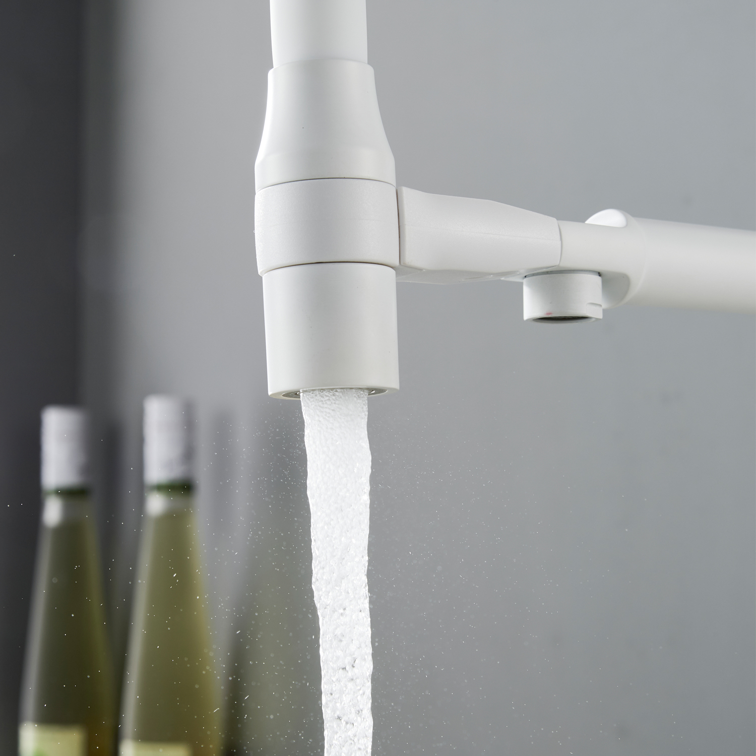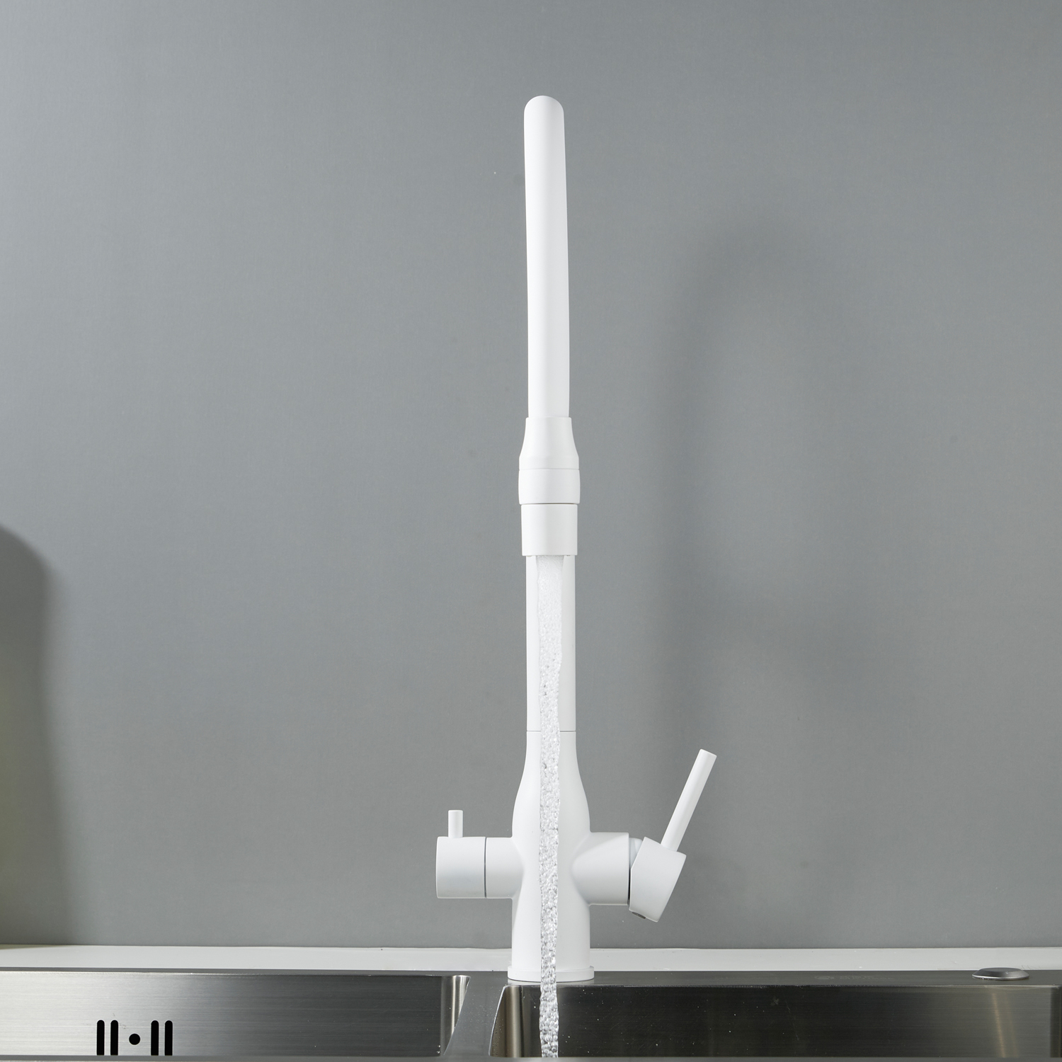 Смеситель для кухни с гибким изливом и подключением фильтра Shevanik S378C, белый