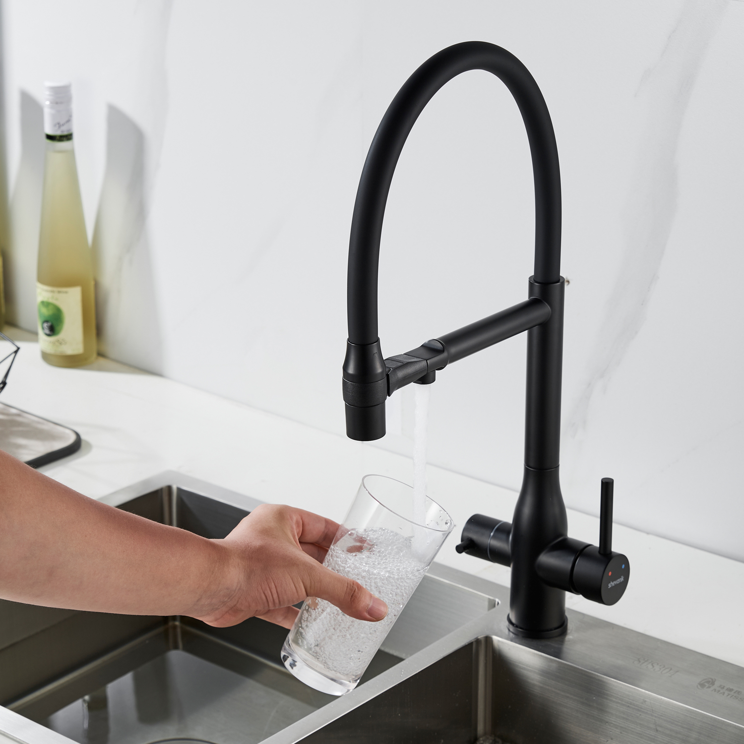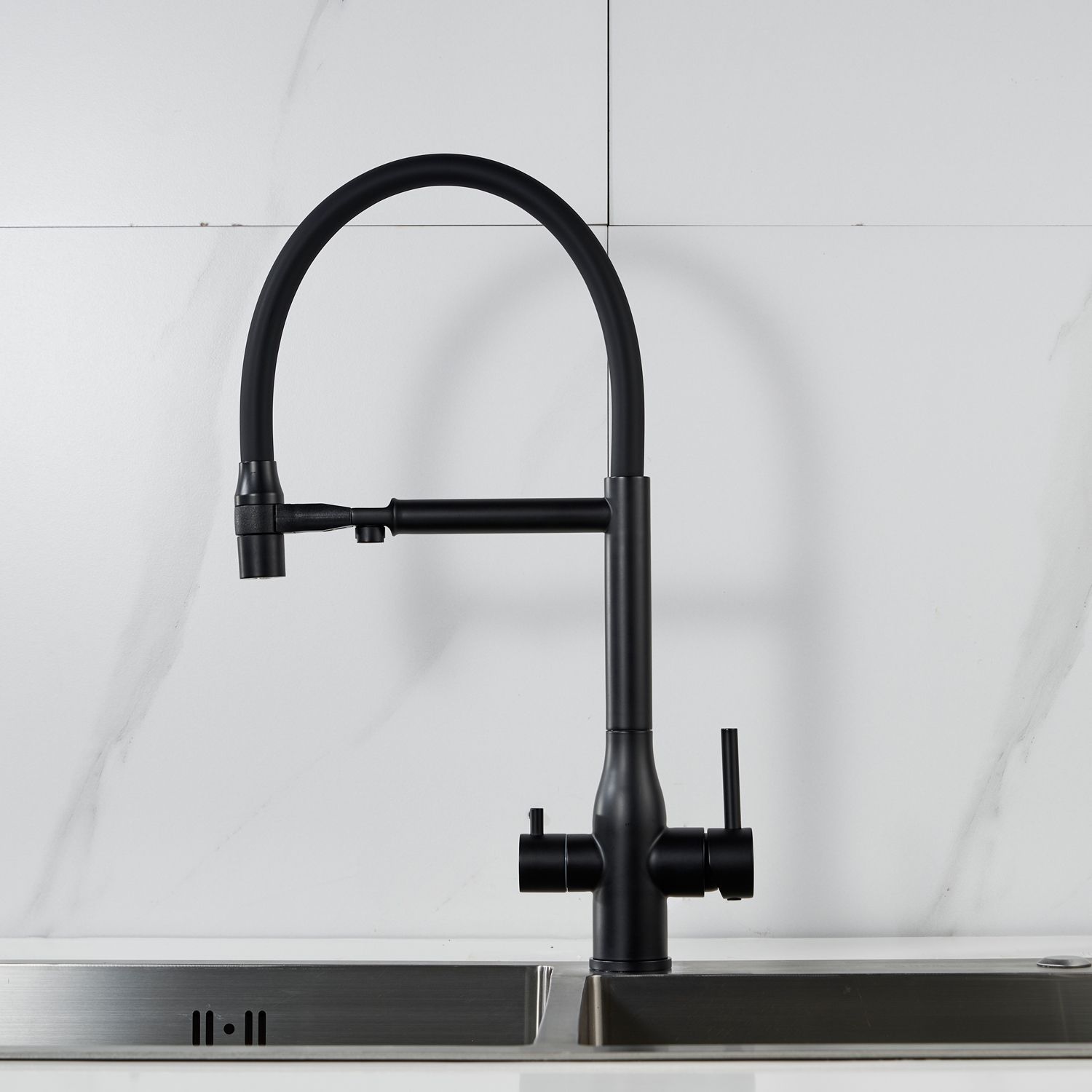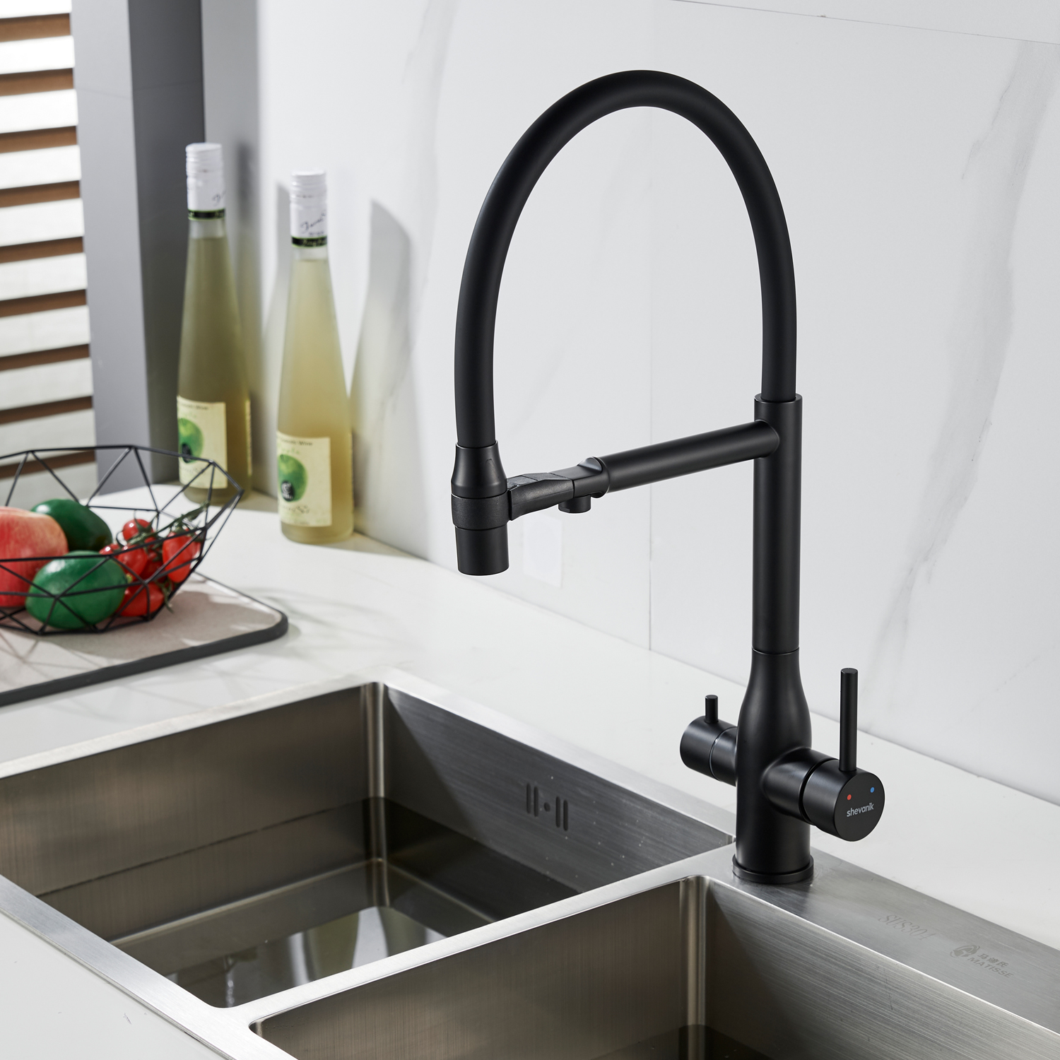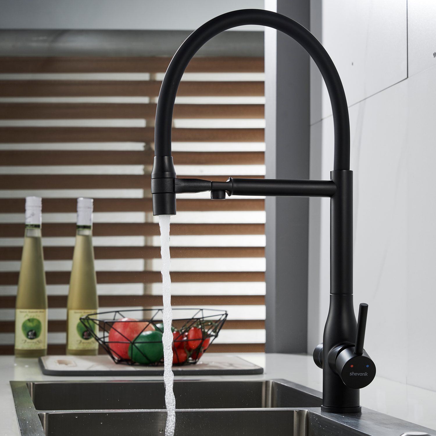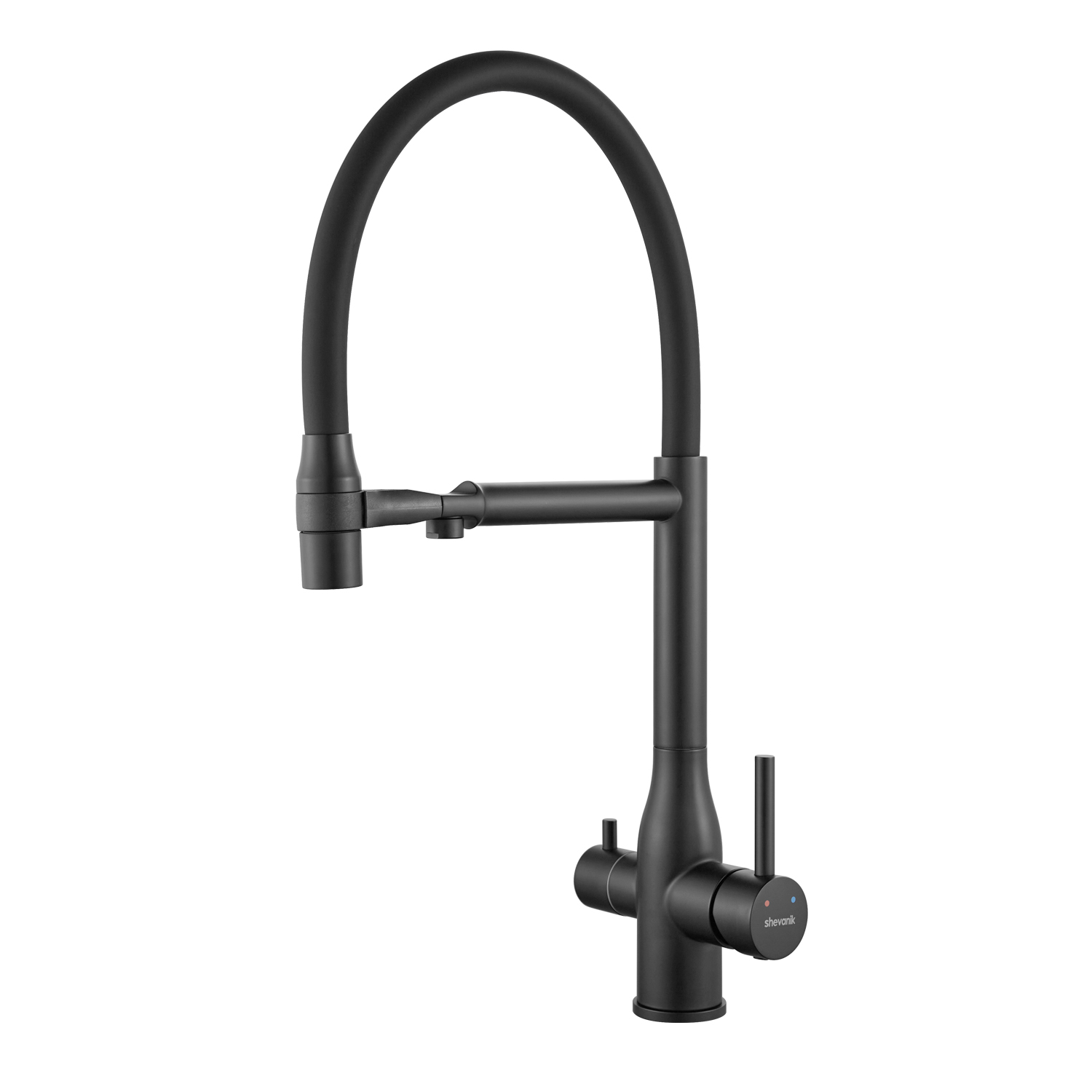Смеситель для кухни с гибким изливом и подключением фильтра Shevanik S378H, черный