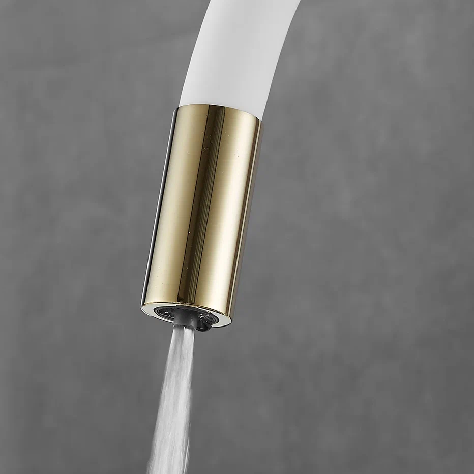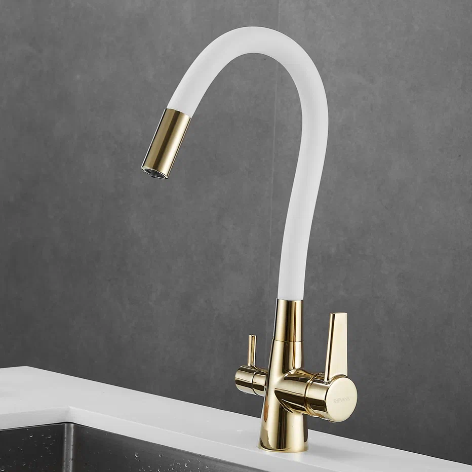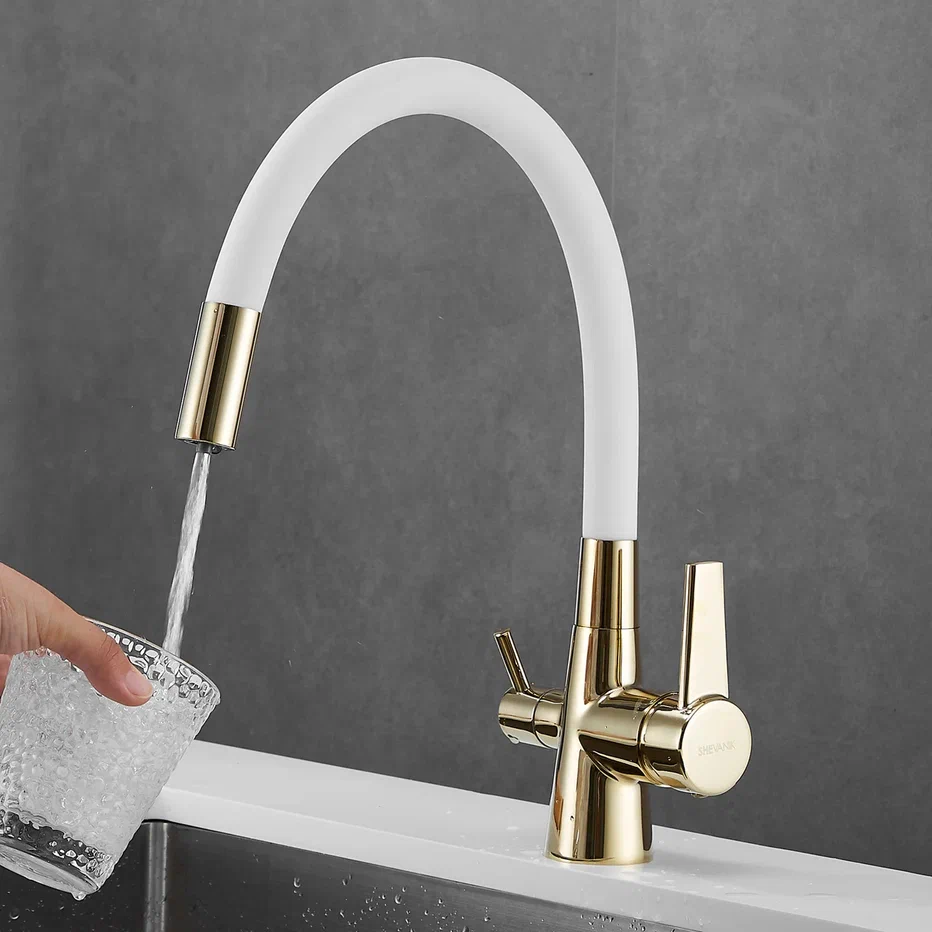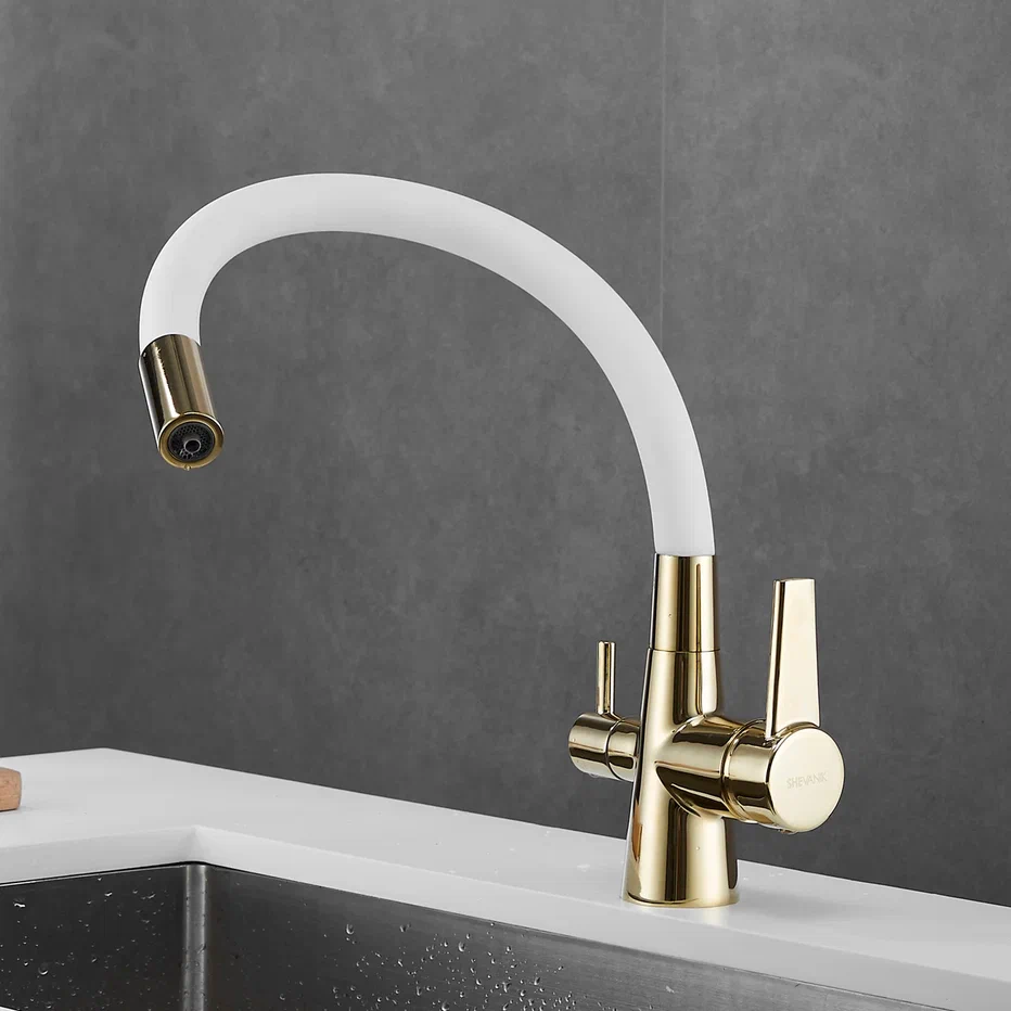 Смеситель для кухни с гибким изливом и подключением фильтра Shevanik S668E, золото/белый