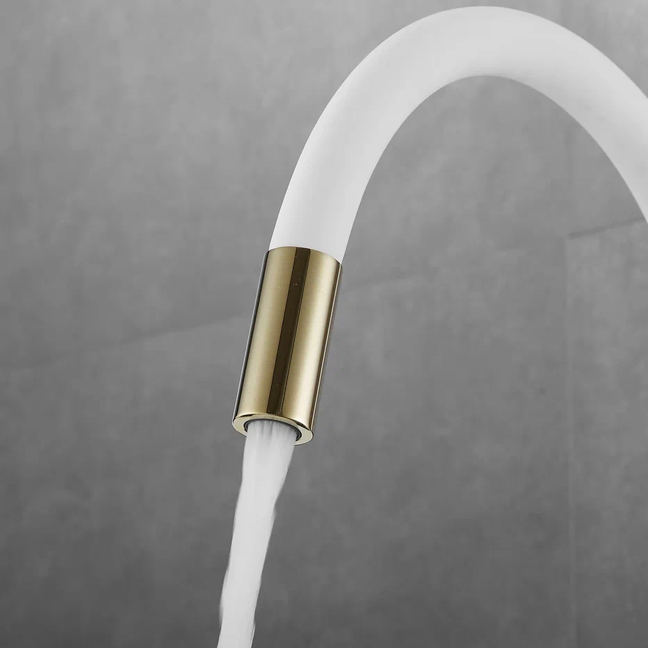Смеситель для кухни с гибким изливом и подключением фильтра Shevanik S668E, золото/белый. Управление: рычажное. Вращение излива: да. Выдвижной излив: нет. Гибкий излив: да. Высота:33,5.