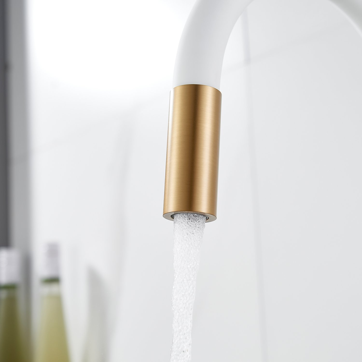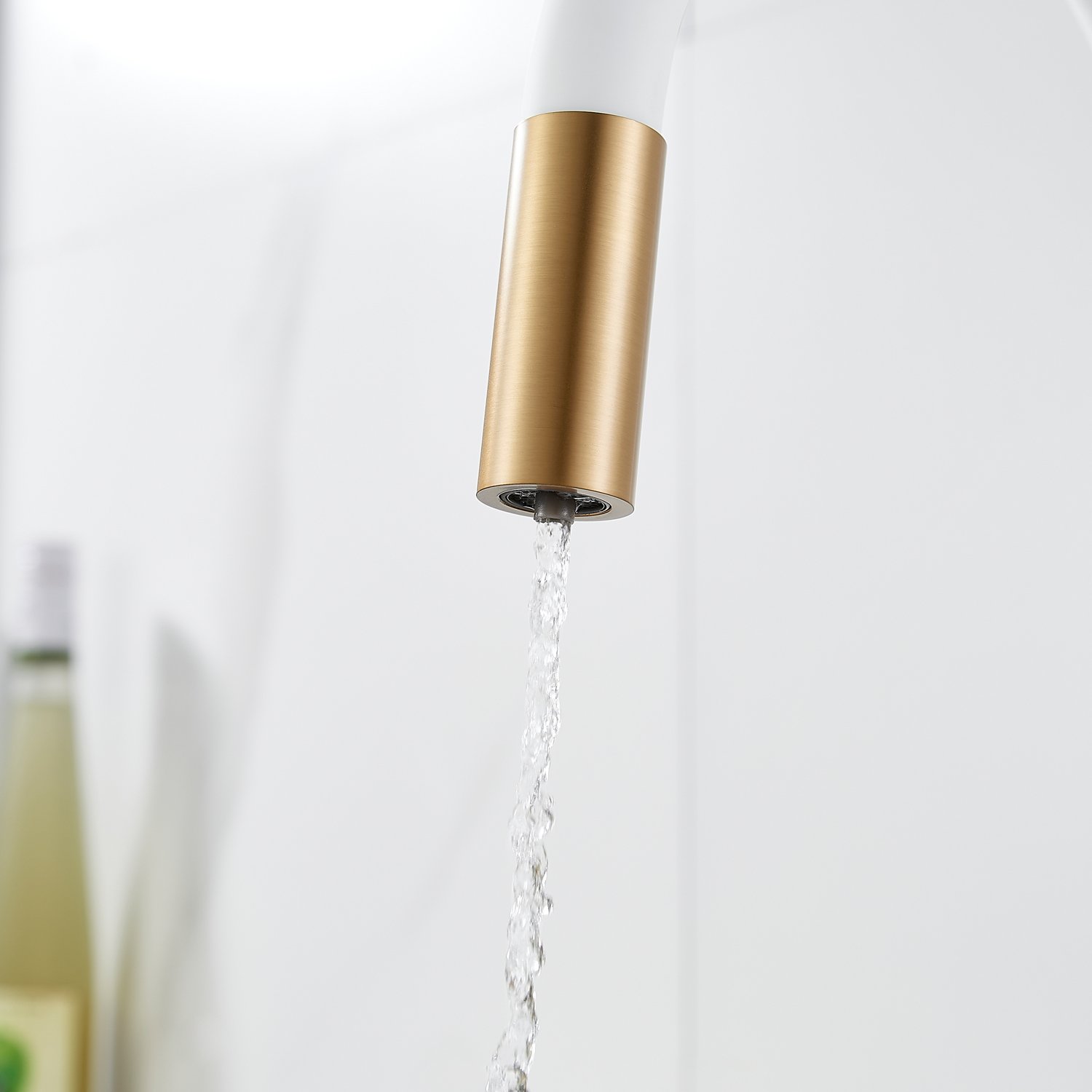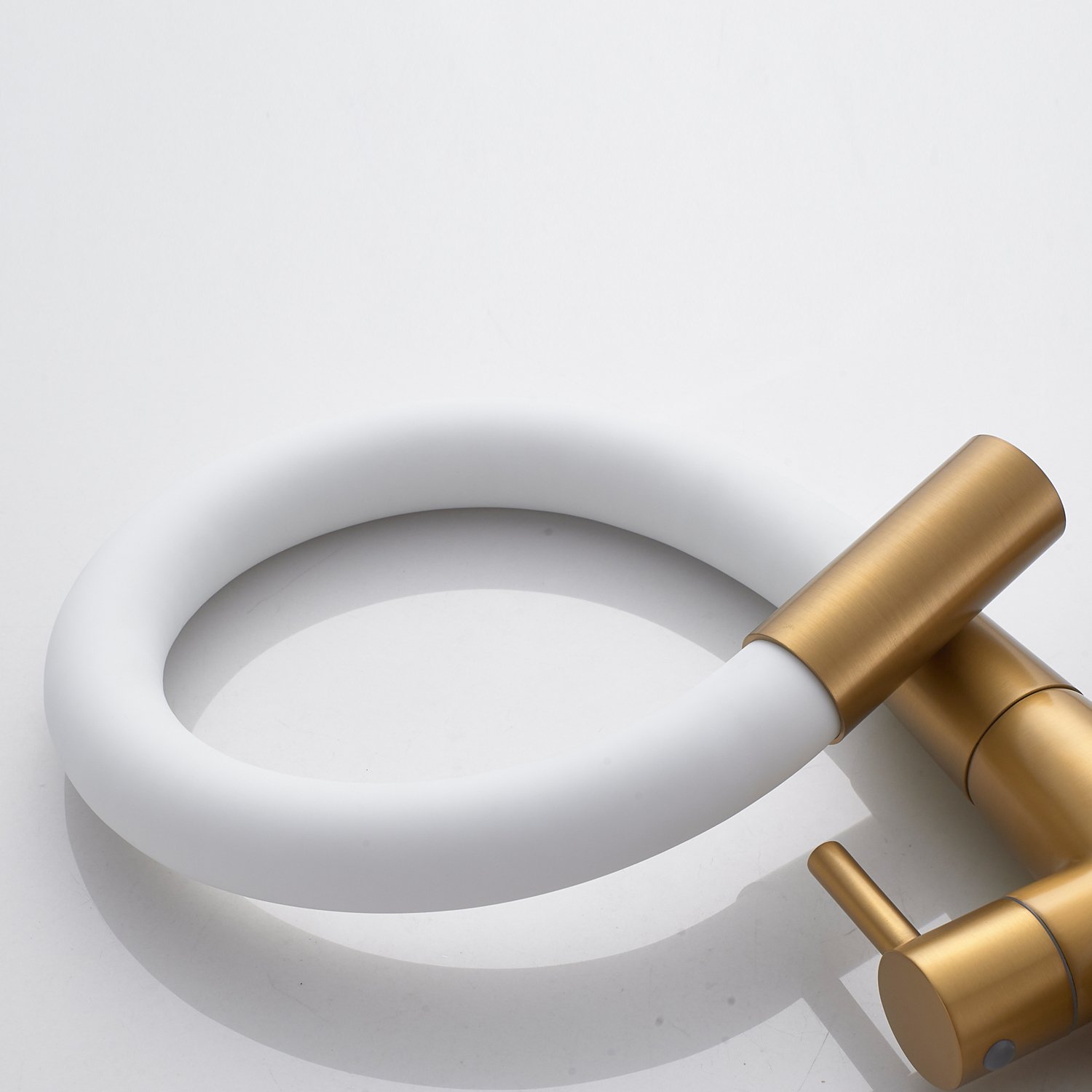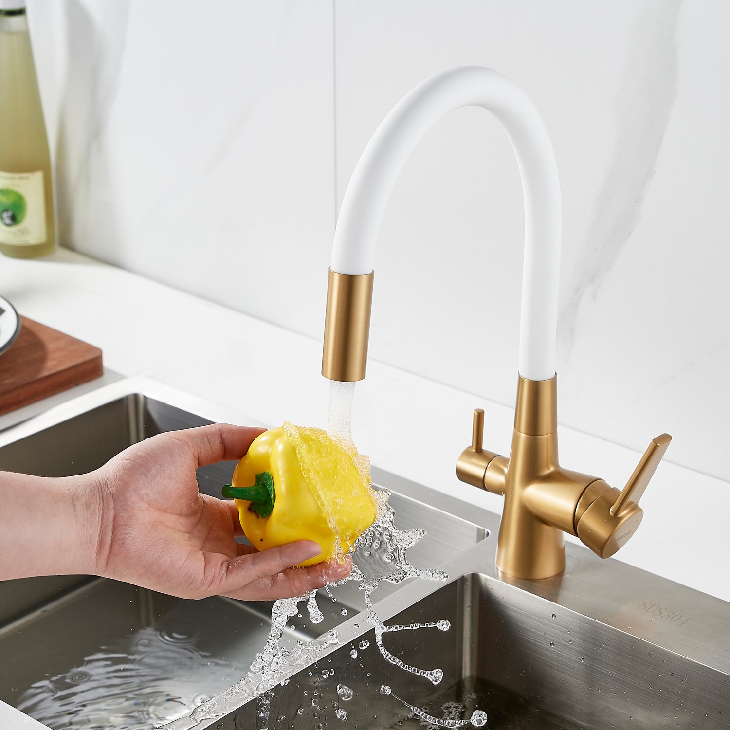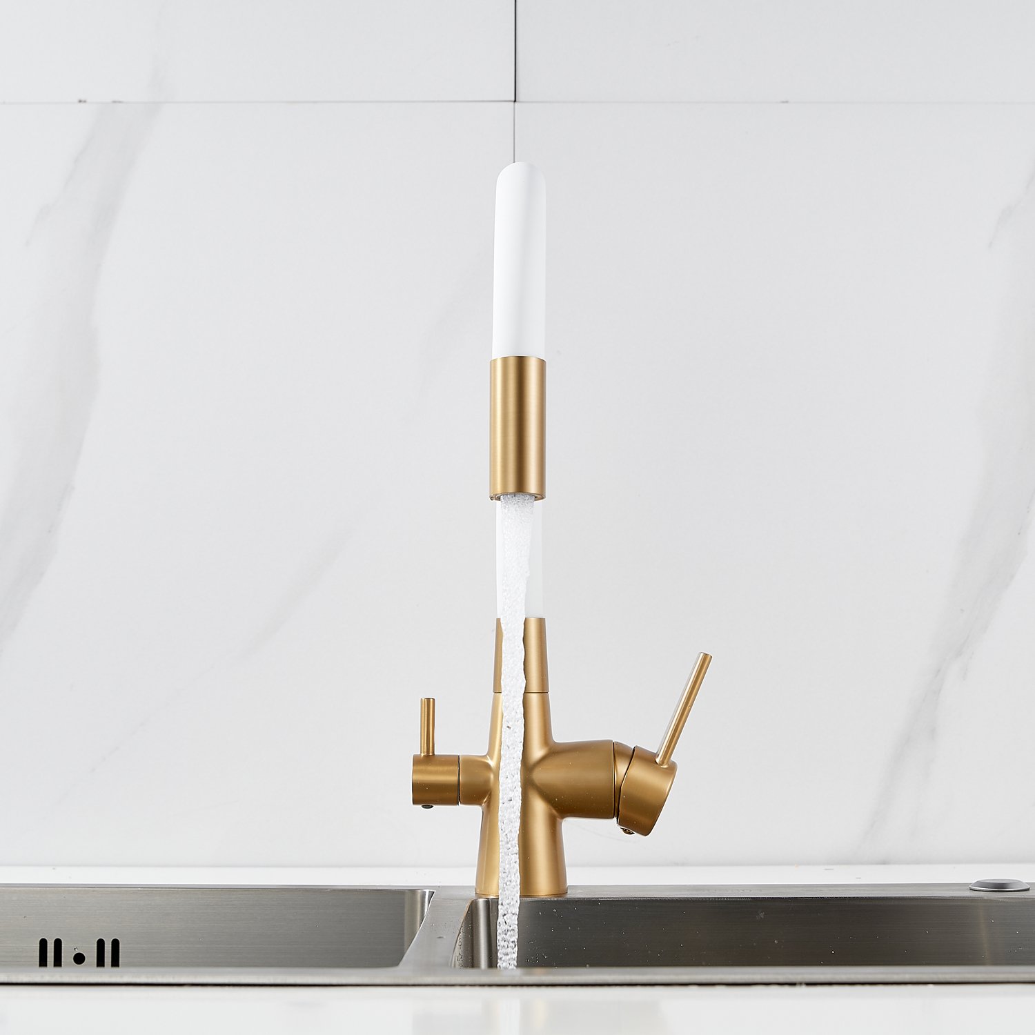 Смеситель для кухни с гибким изливом и подключением фильтра Shevanik S668G, золотой сатин/белый