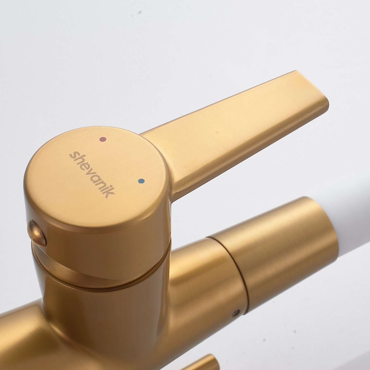 Shevanik изготовлен из прочной латуни, что гарантирует его долговечность и устойчивость к коррозии. Керамический картридж и рычажное управление обеспечивают плавное и точное регулирование температуры и напора воды.