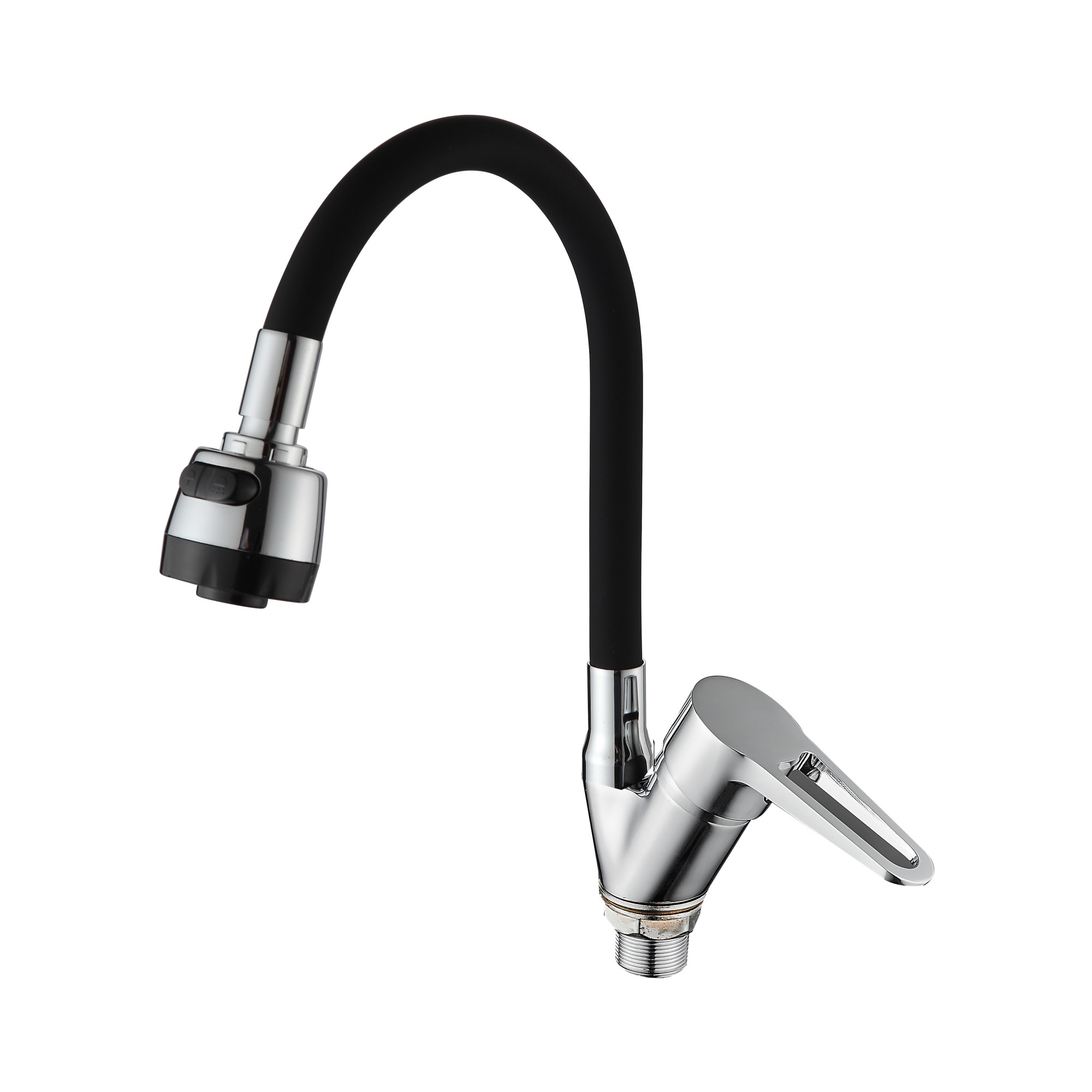 Смеситель для кухни с гибким изливом и режимом "душ" D-Lin D150303-1T, хром/черный