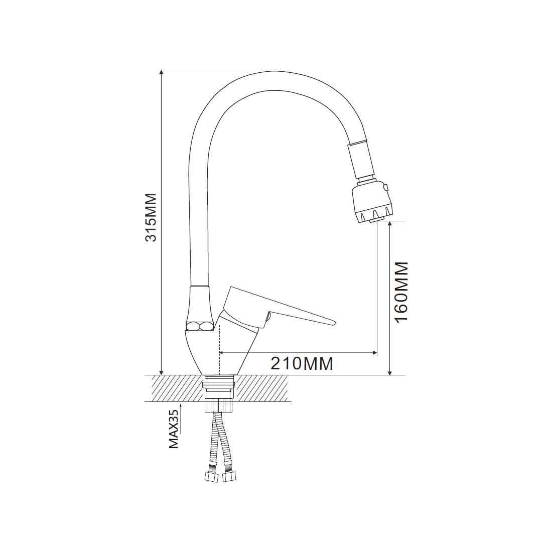 Гибкая подводка длиной 40 см. входит в комплект поставки, что упрощает процесс установки смесителя.