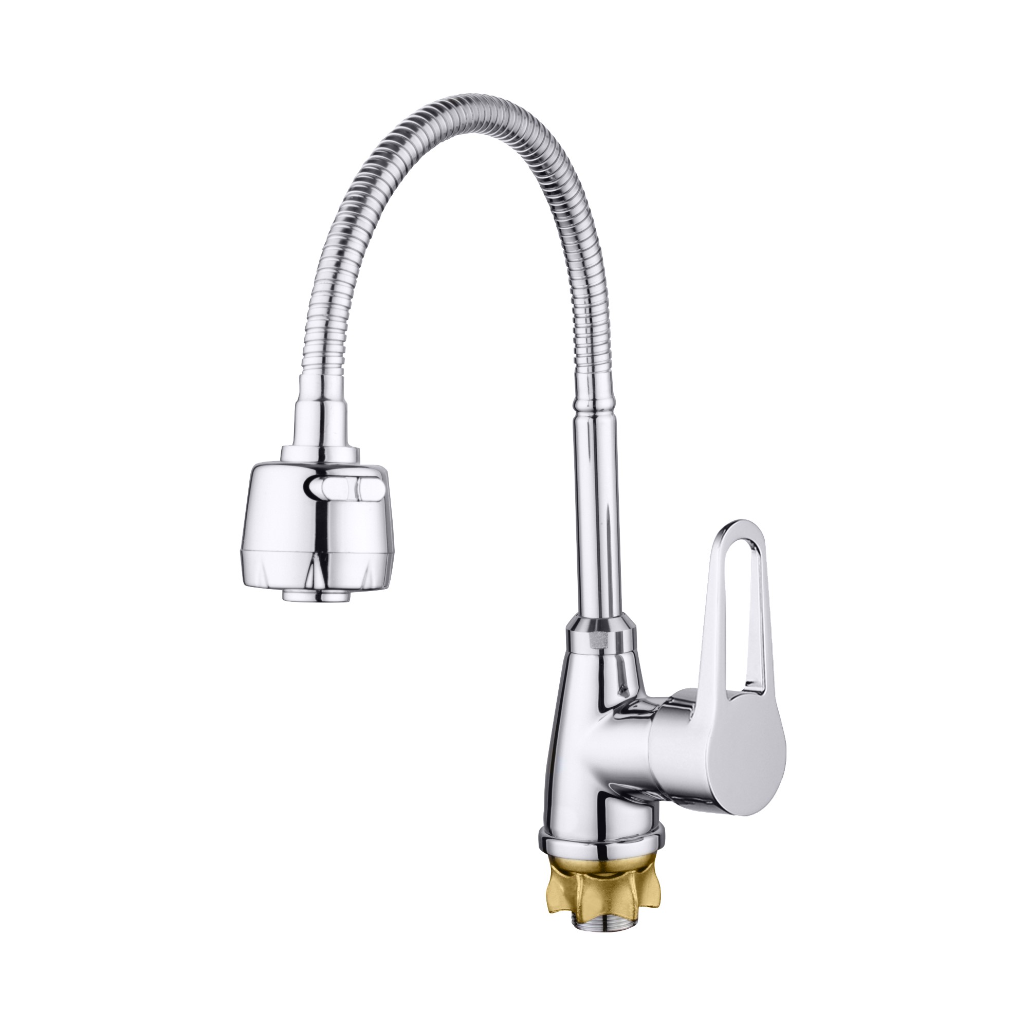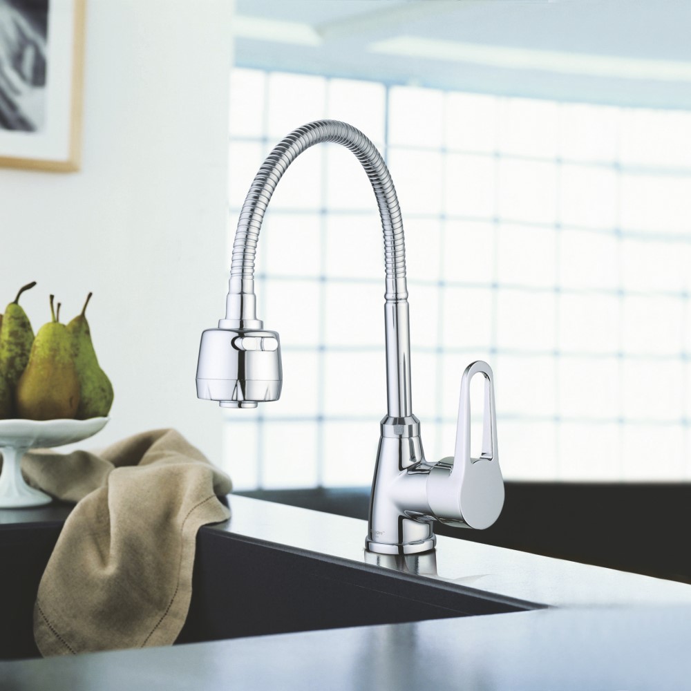 Смеситель для кухни с гибким изливом и режимом "душ" G.Lauf ZOP4-E045. Цвет: хром. Поверхность: глянцевая. Материал: латунь. Гарантийный срок: 3 года. Стилистика дизайна современный стиль. Монтаж: на мойку;на столешницу. Управление: рычажное. Вращение излива: да. Выдвижной излив: нет. Гибкий излиа: да. Режим душ излива: да. Стандарт подводки: 1/2".