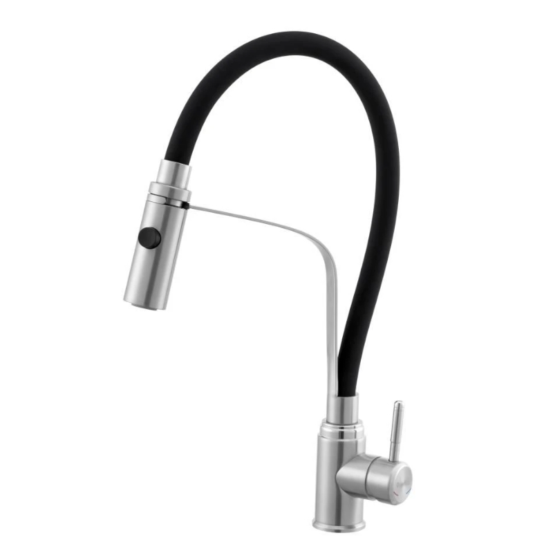 Смеситель для кухни с гибким изливом и режимом "душ" Knotlor SS-07, сатин