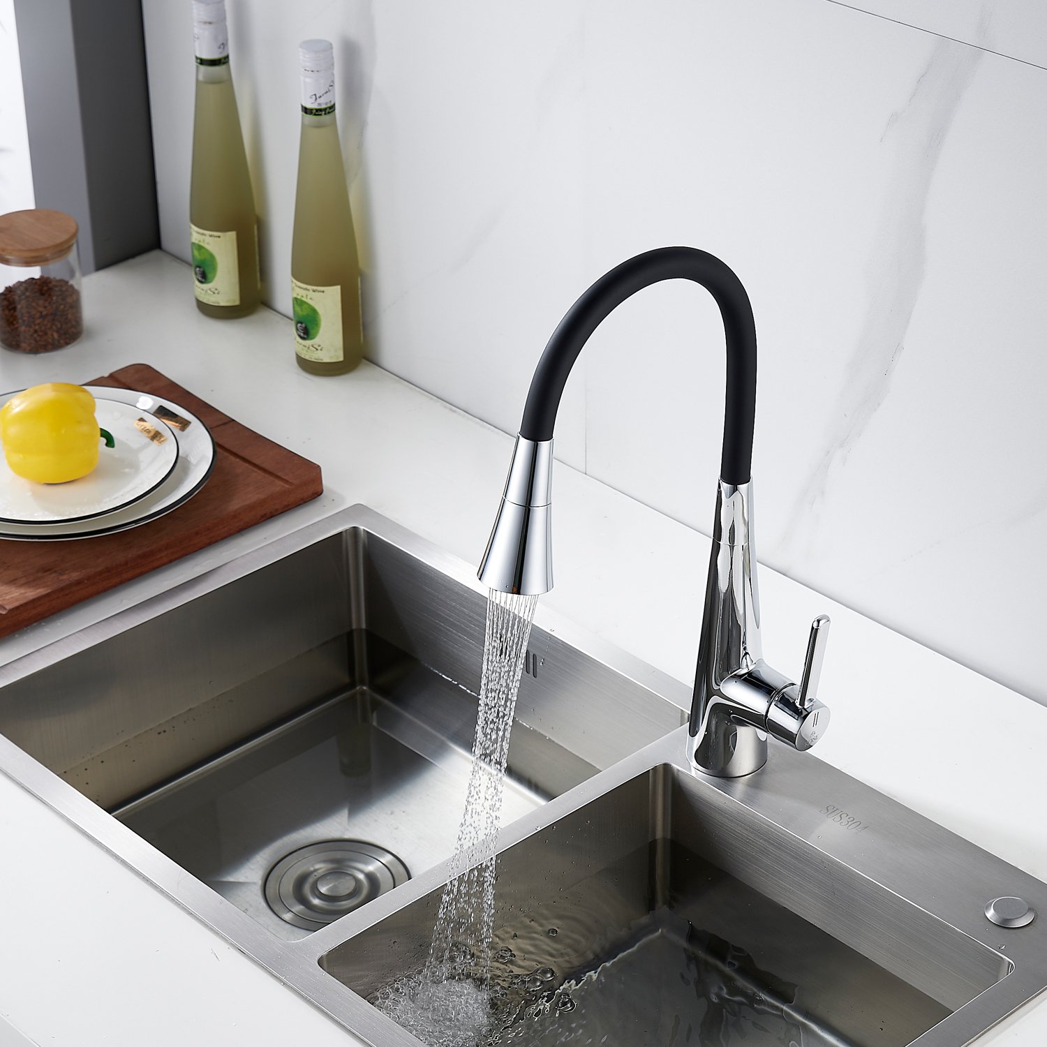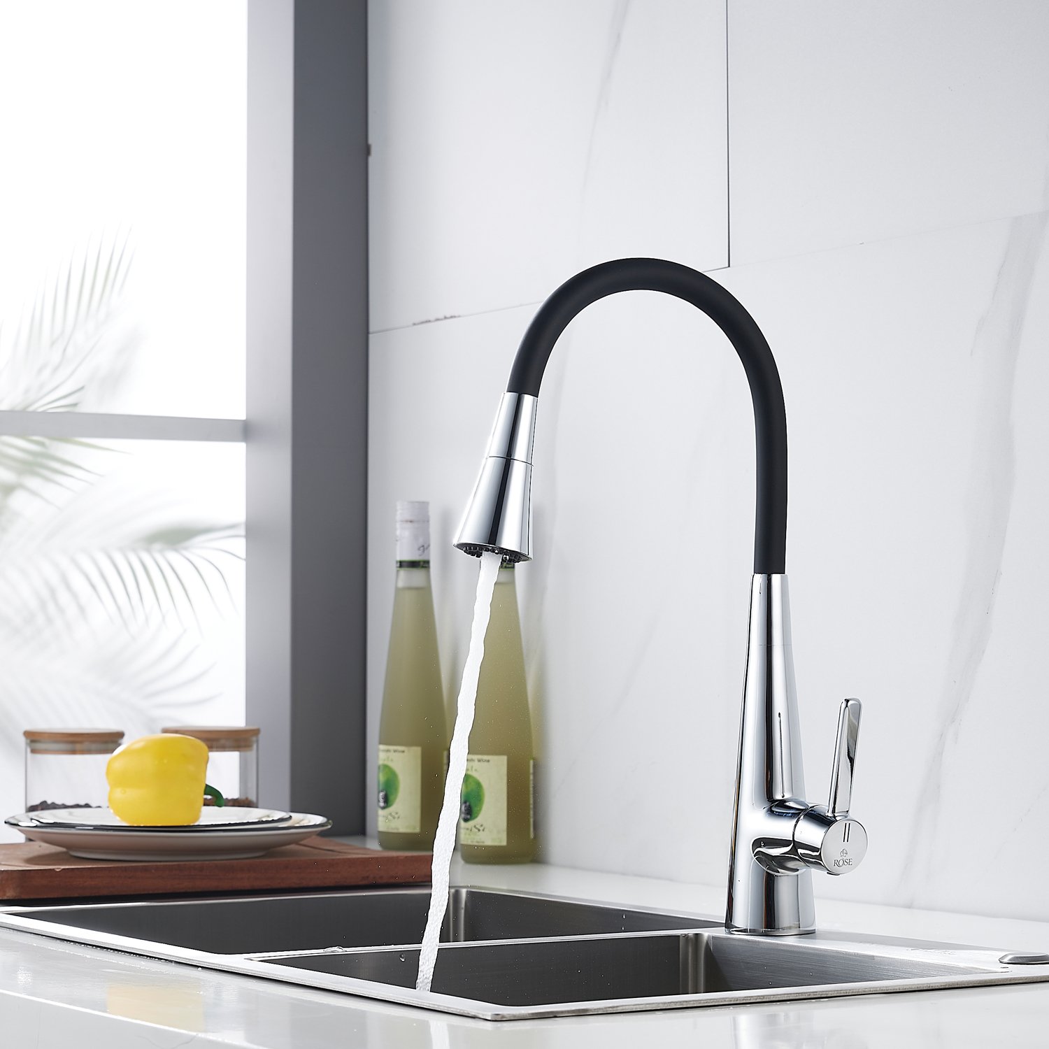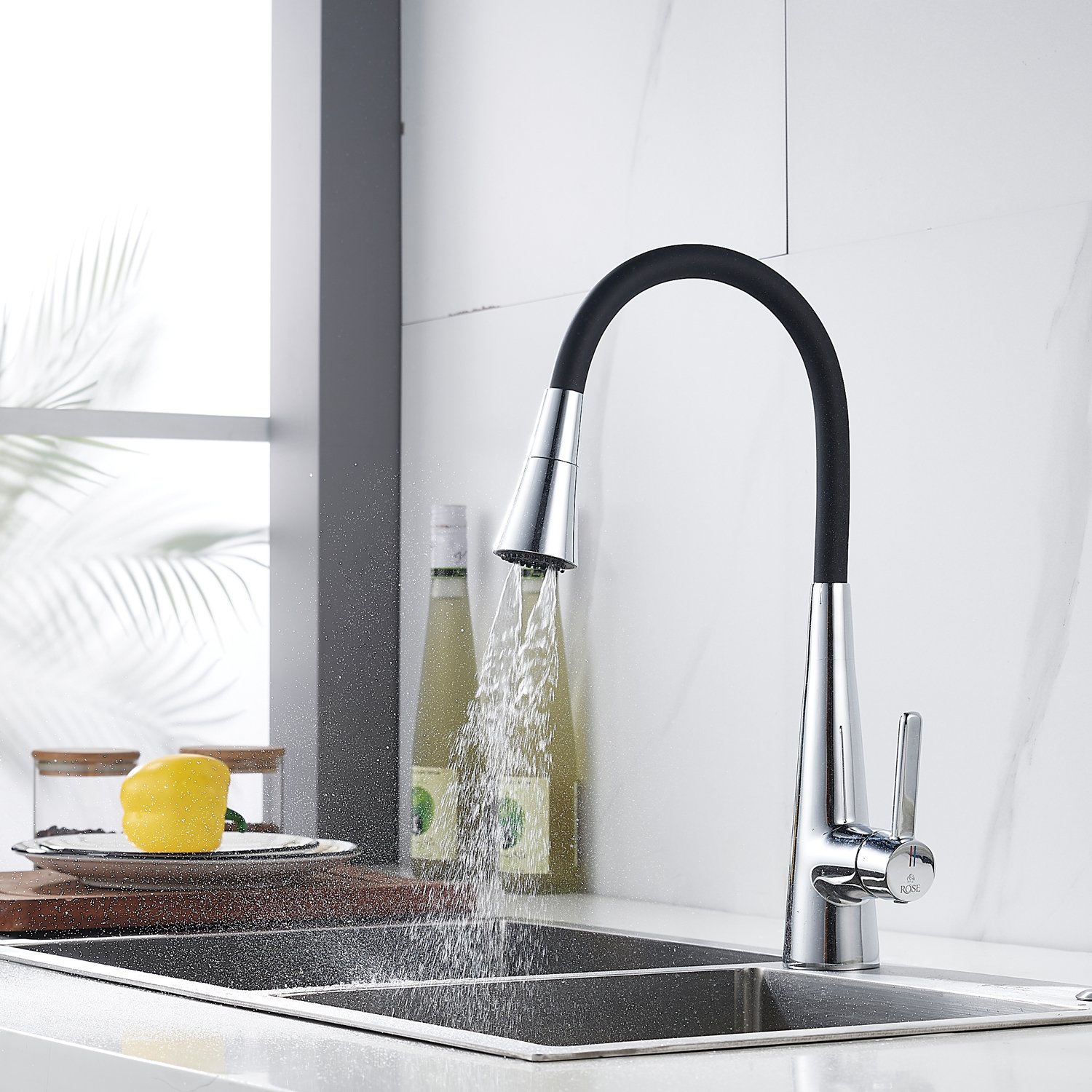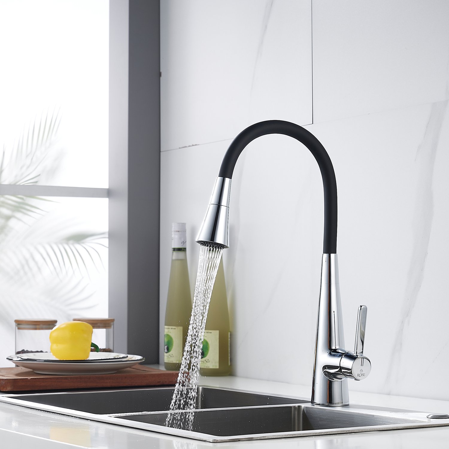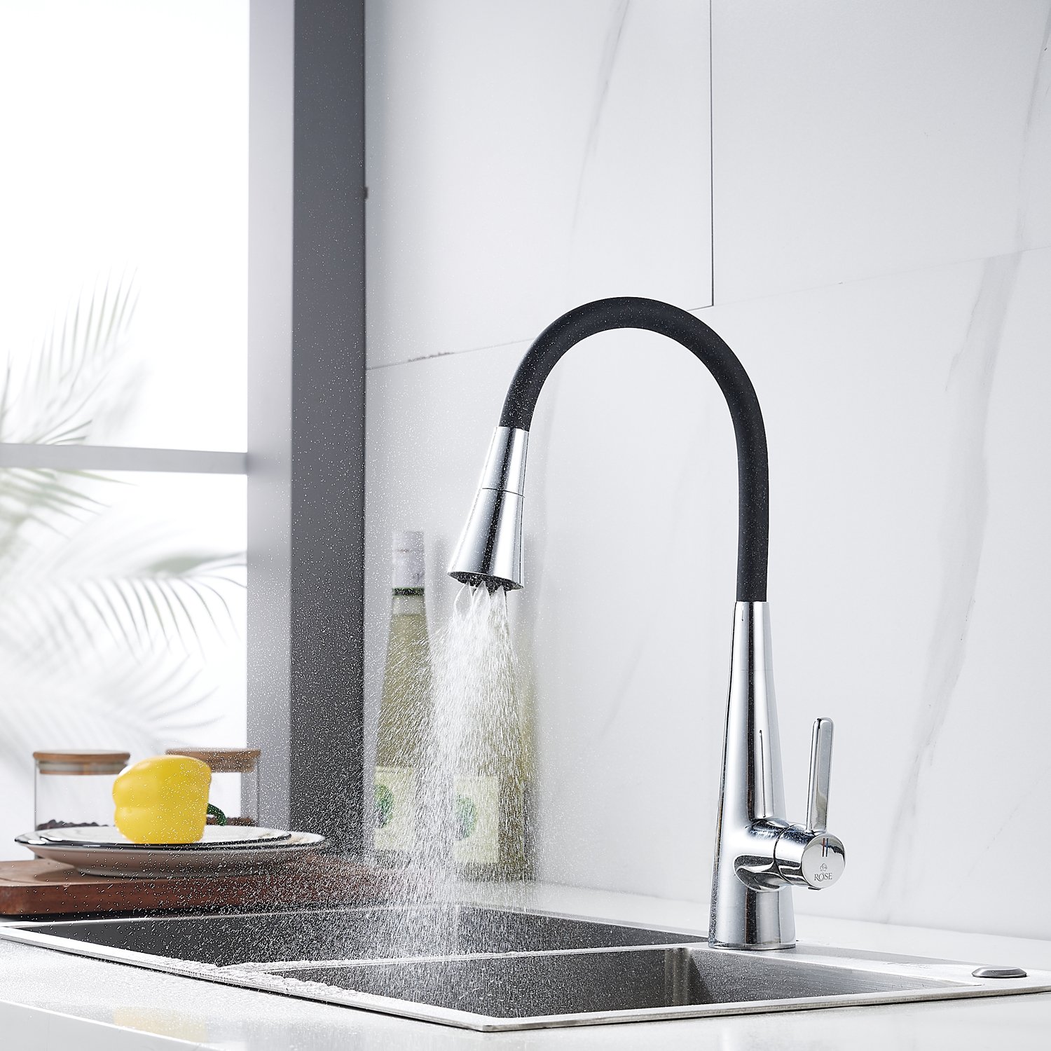 Смеситель для кухонной мойки Rose - идеальное решение для вашей кухни! Изготовленный из прочной и надежной латуни, он гарантирует долговечность и стабильность на многие годы. Гибкий поворотный силиконовый излив обеспечивает максимальный комфорт при использовании.