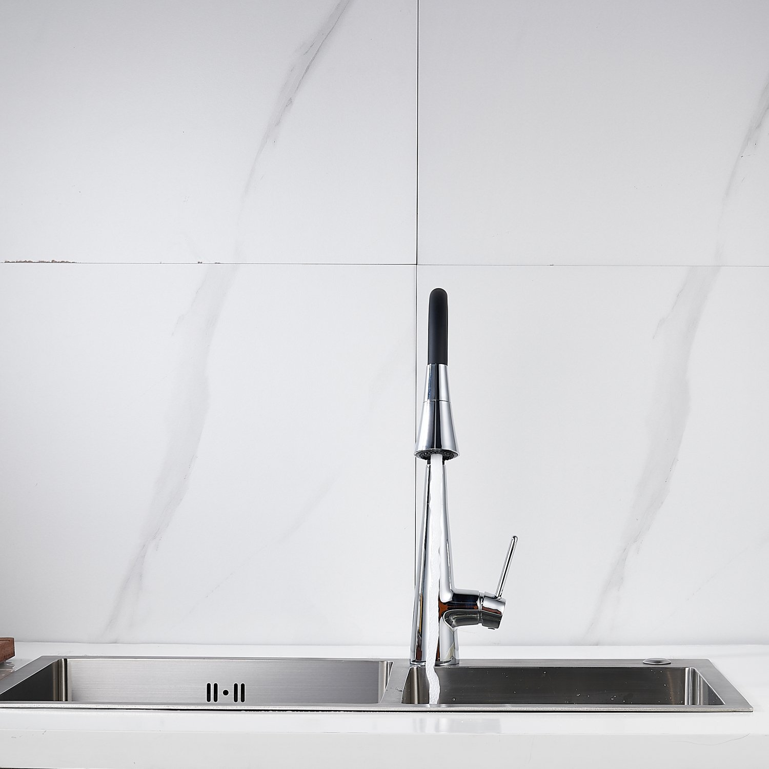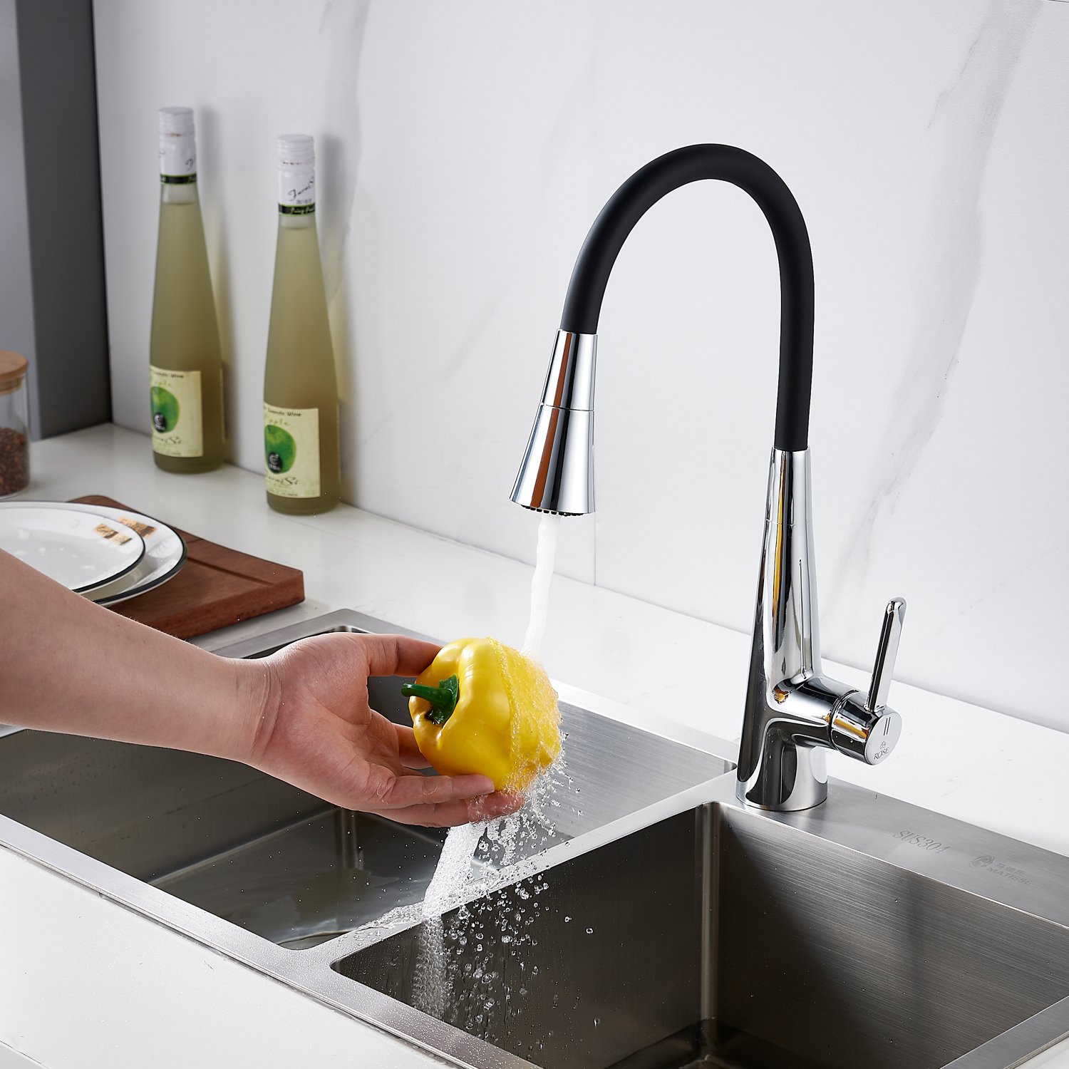 Одним из ключевых преимуществ данного смесителя Rose является режим излива "душ". Специальная насадка имеет несколько видов потока. Струя душа имеет больший диаметр, что позволяет ополаскивать объёмные кастрюли быстрее. Распыляющий режим бережно очистит мягкие поверхности.