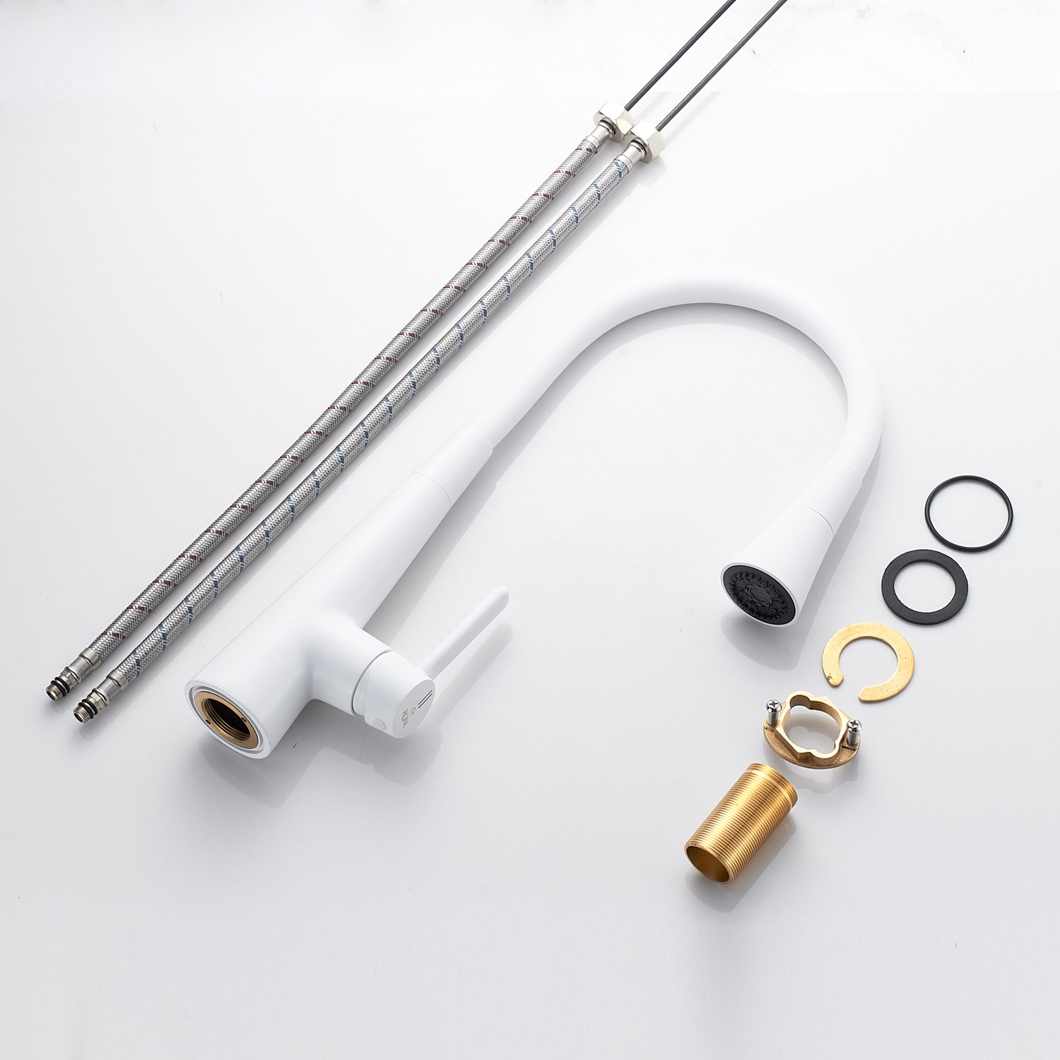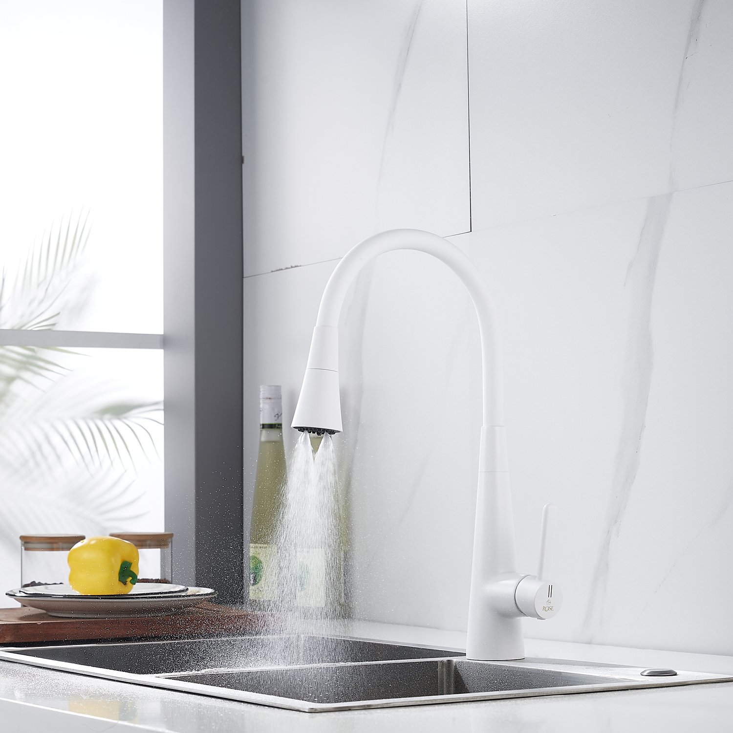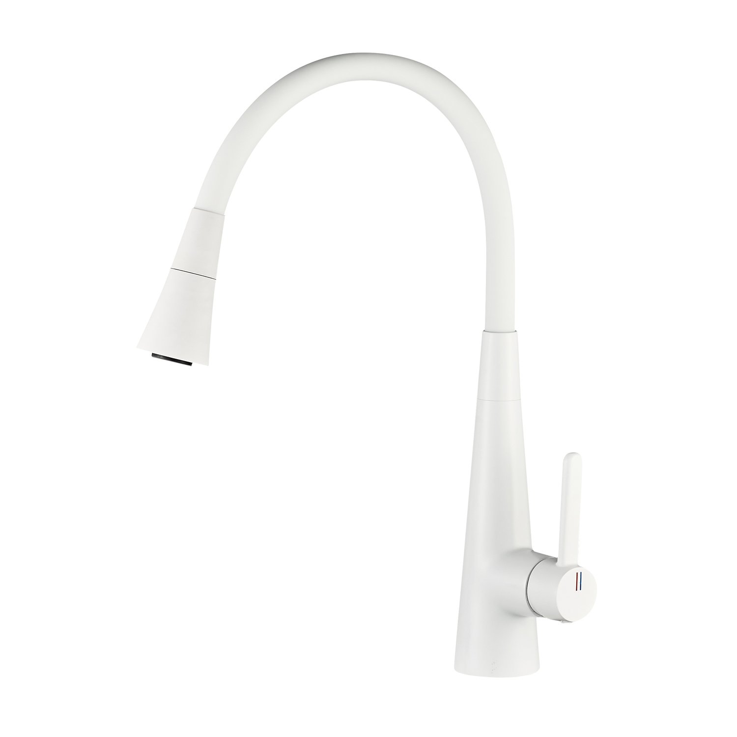 Смеситель для кухни с гибким изливом и режимом "душ" Rose R213C, белый