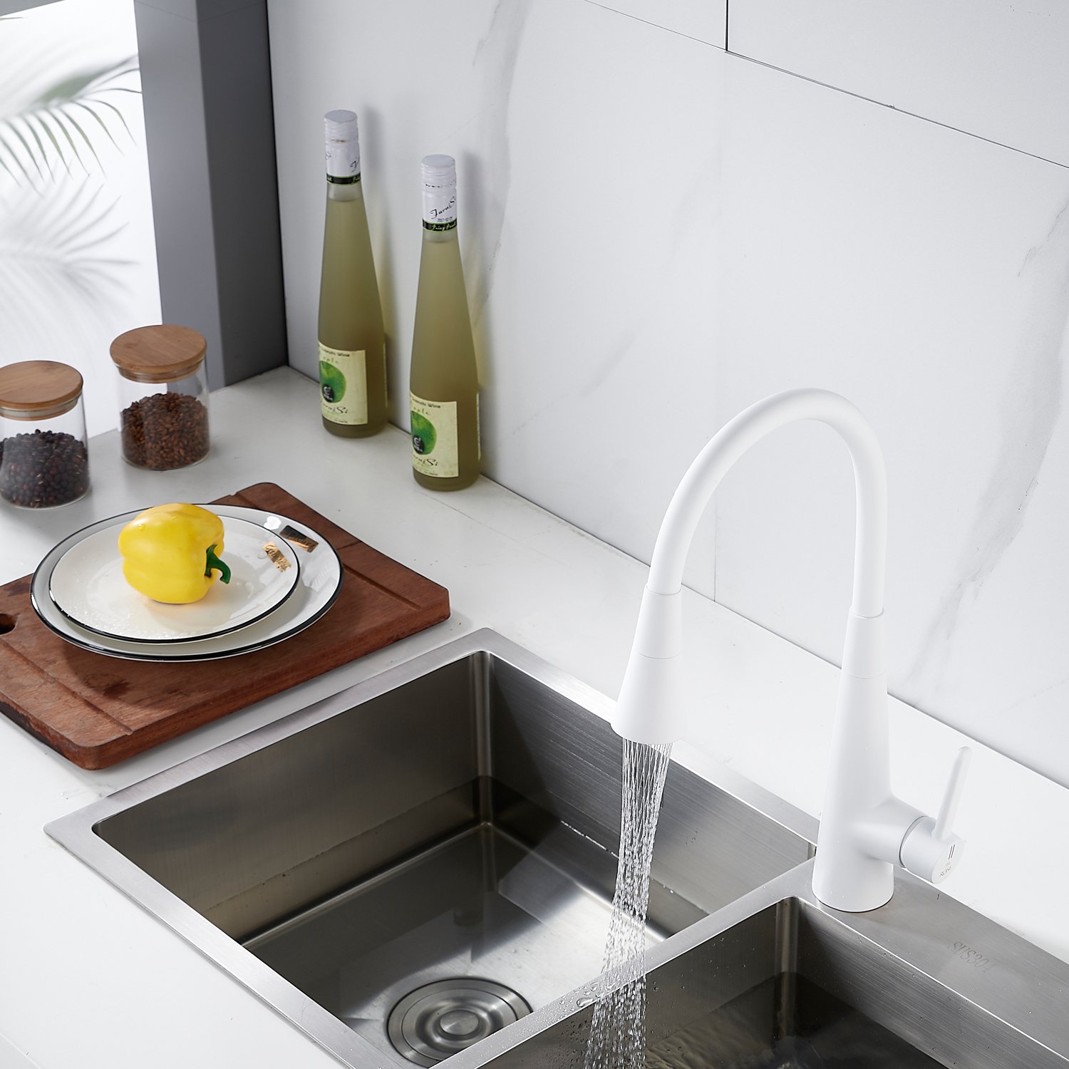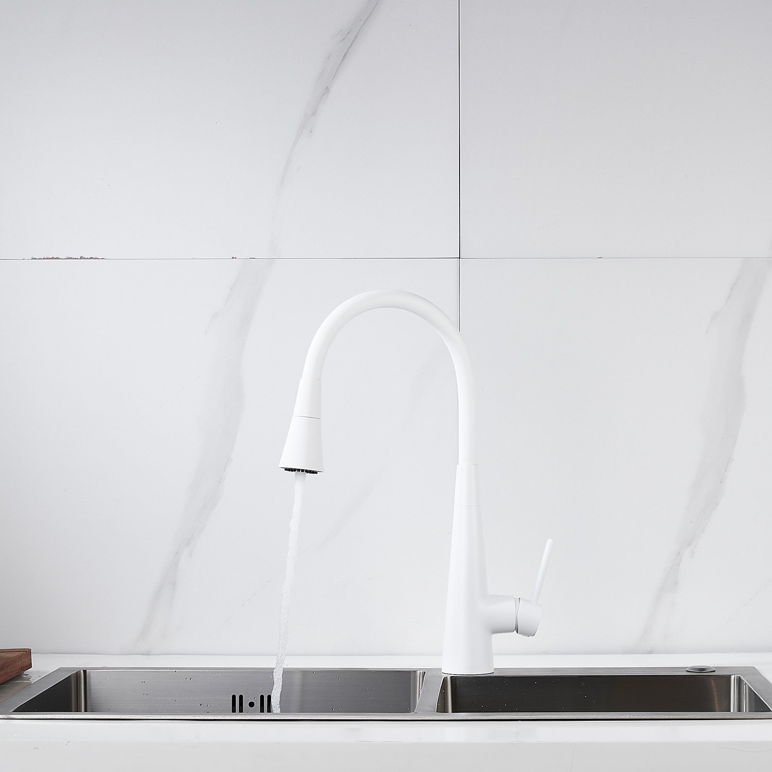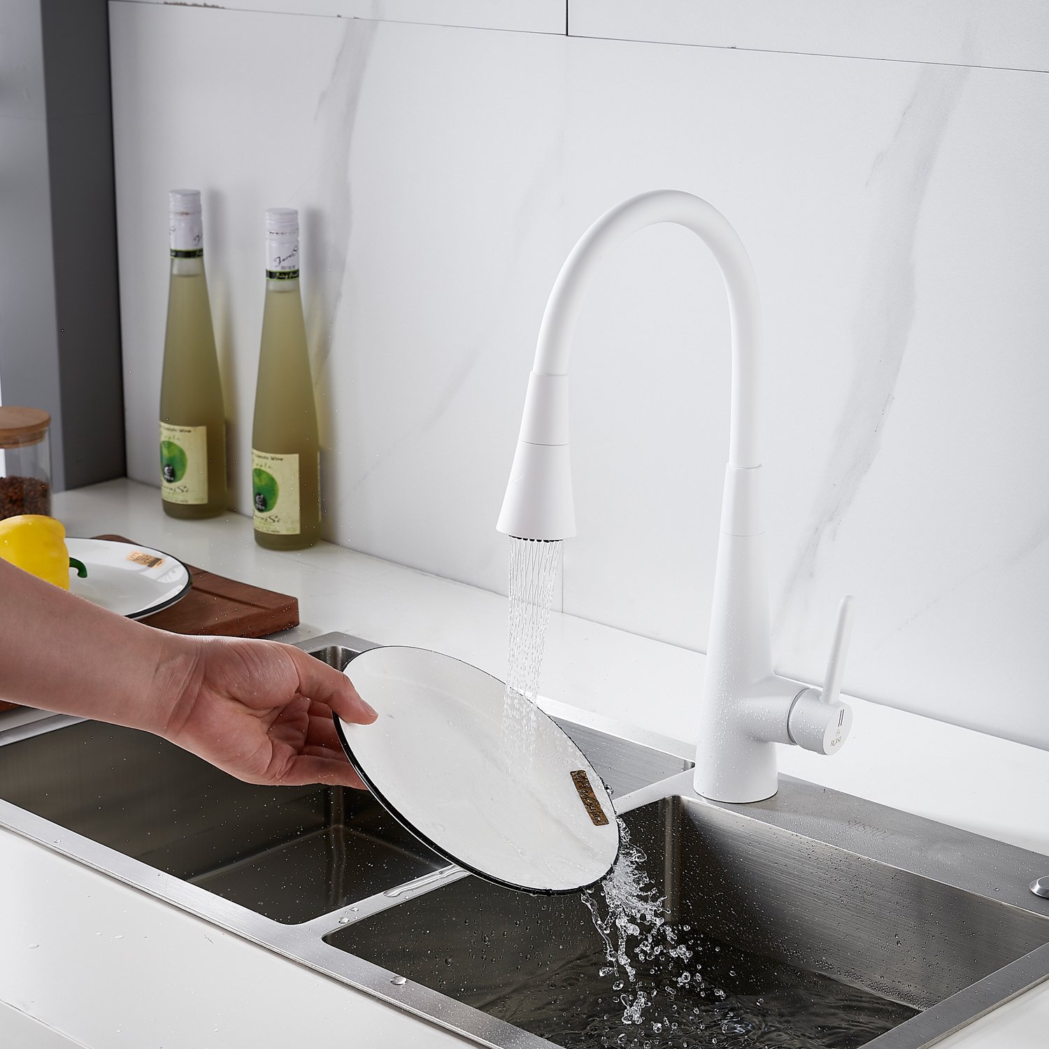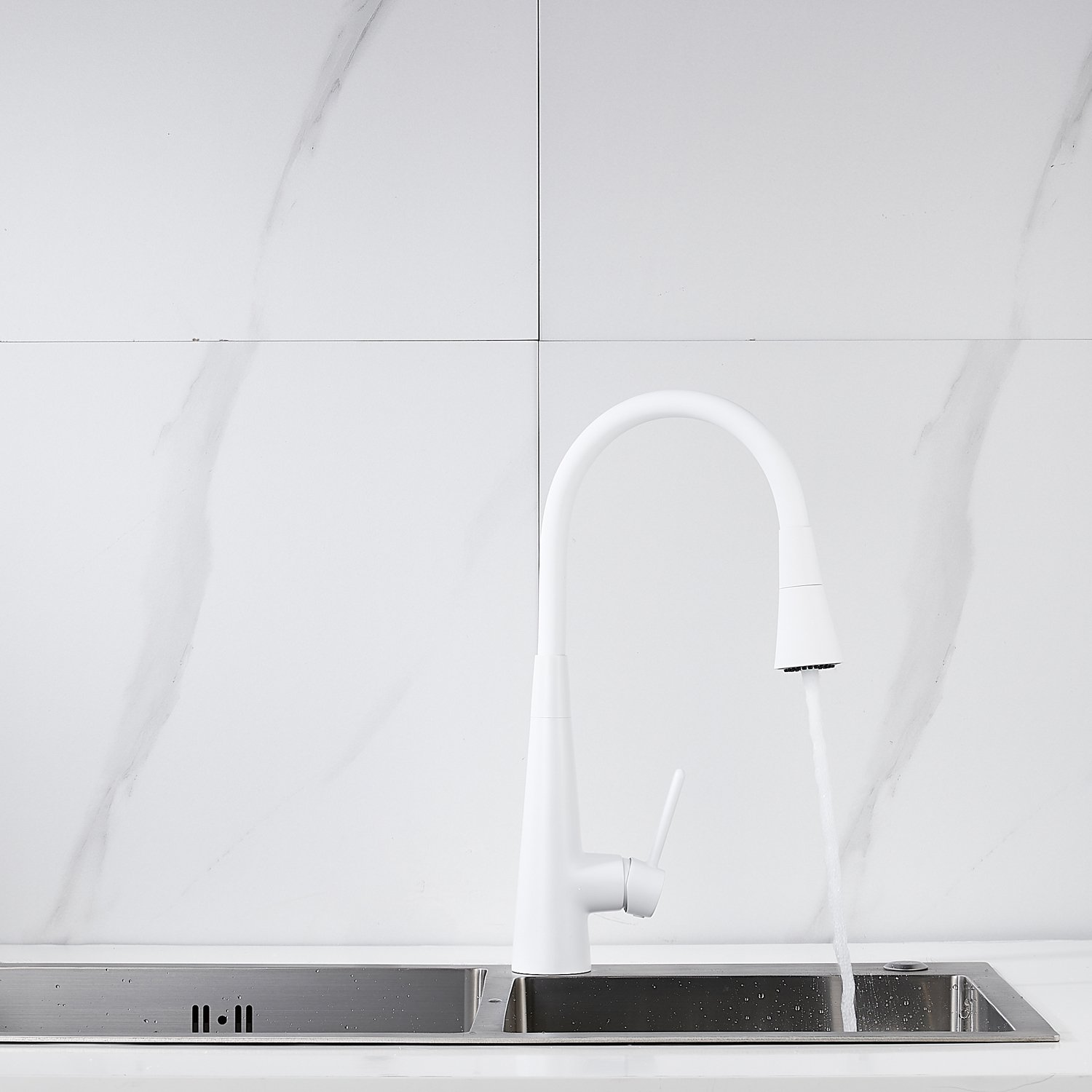 Смеситель для кухни с гибким изливом и режимом "душ" Rose R213C, белый