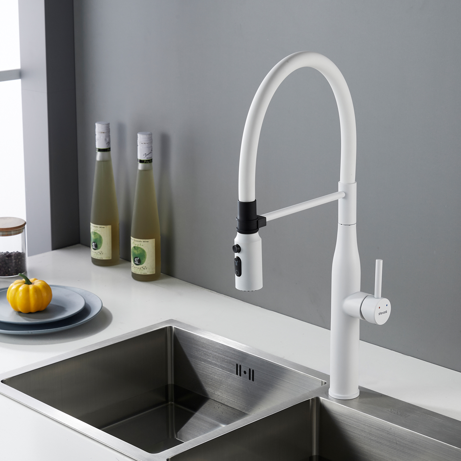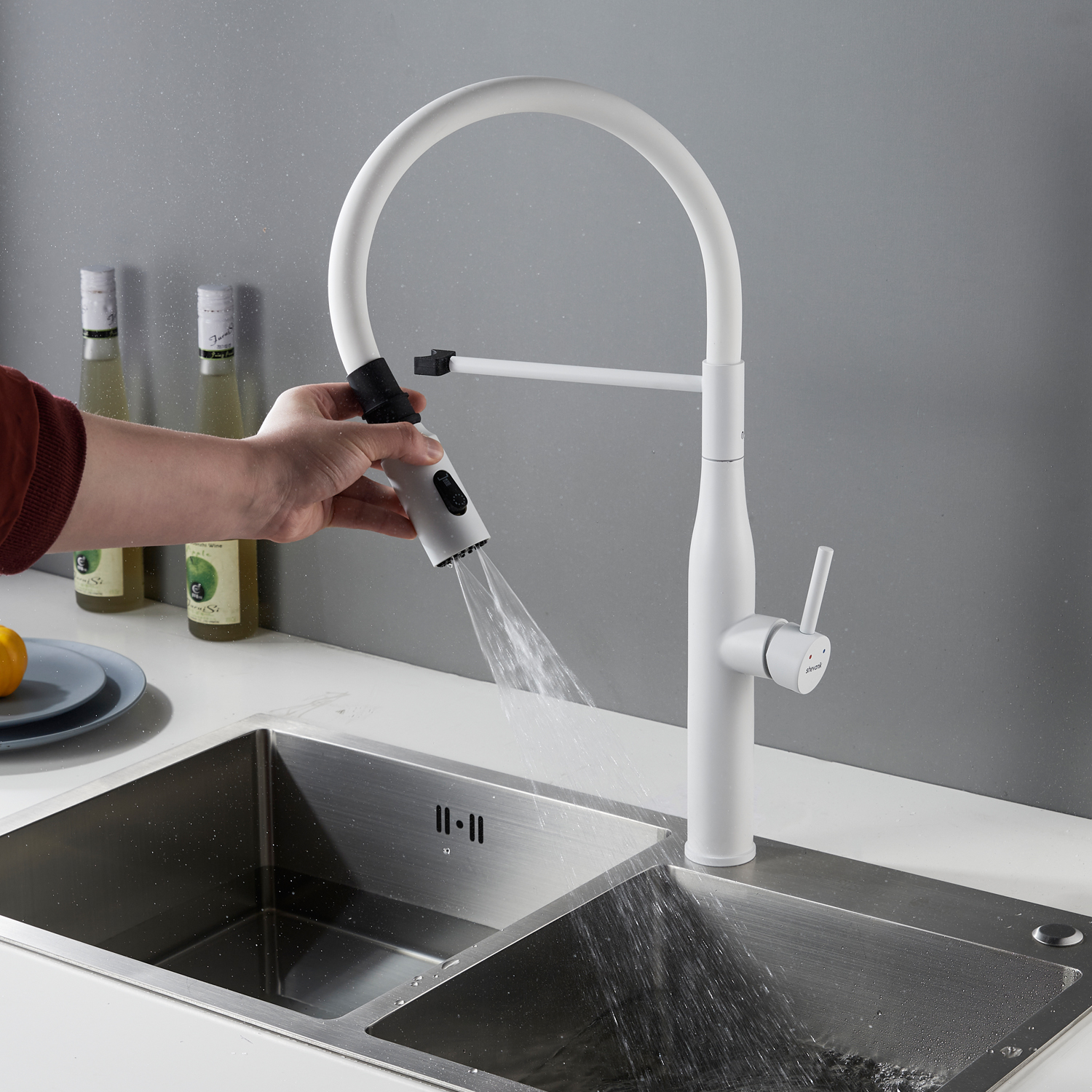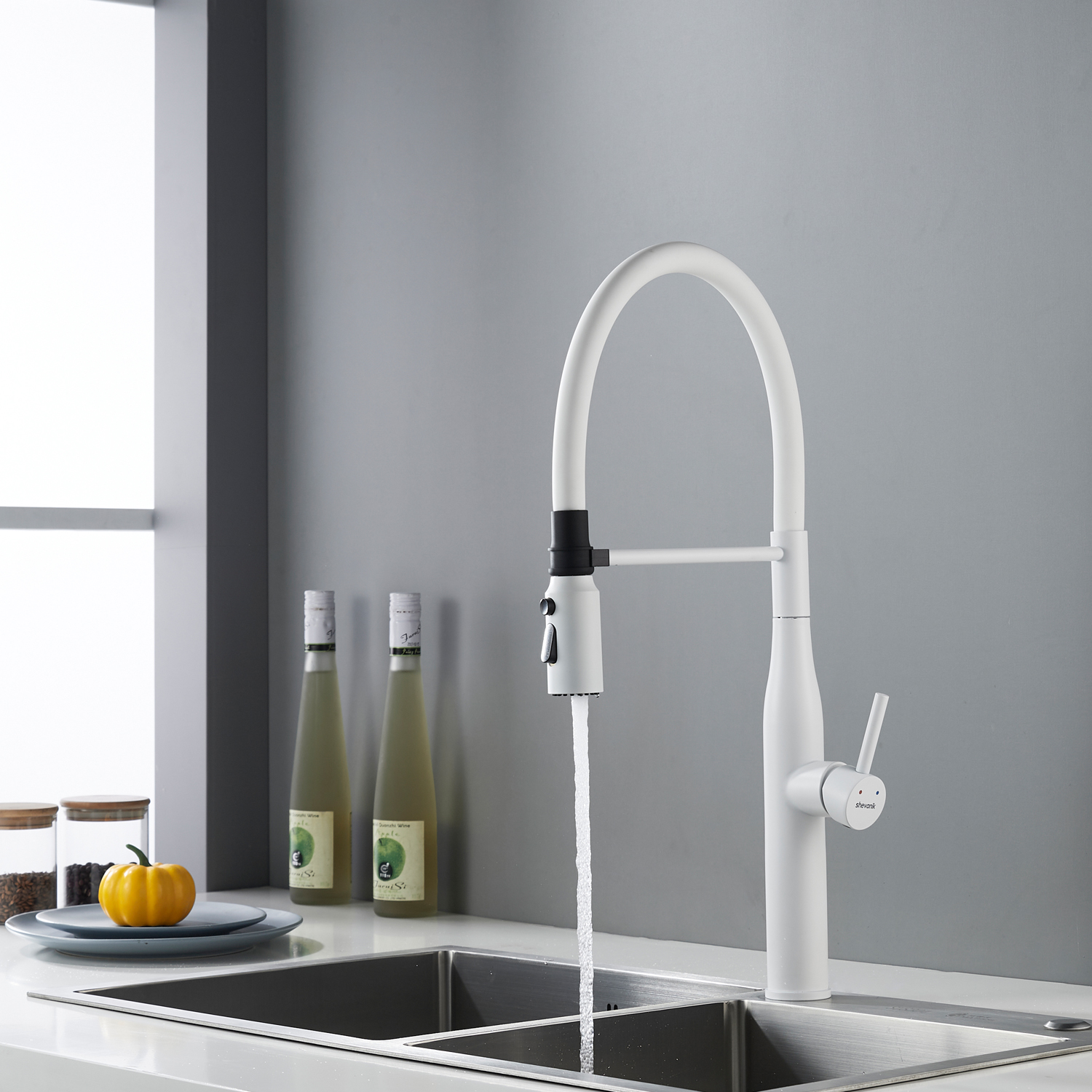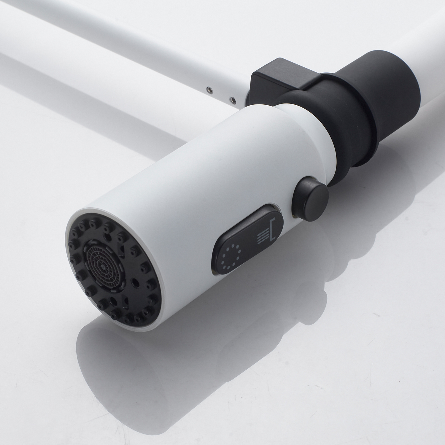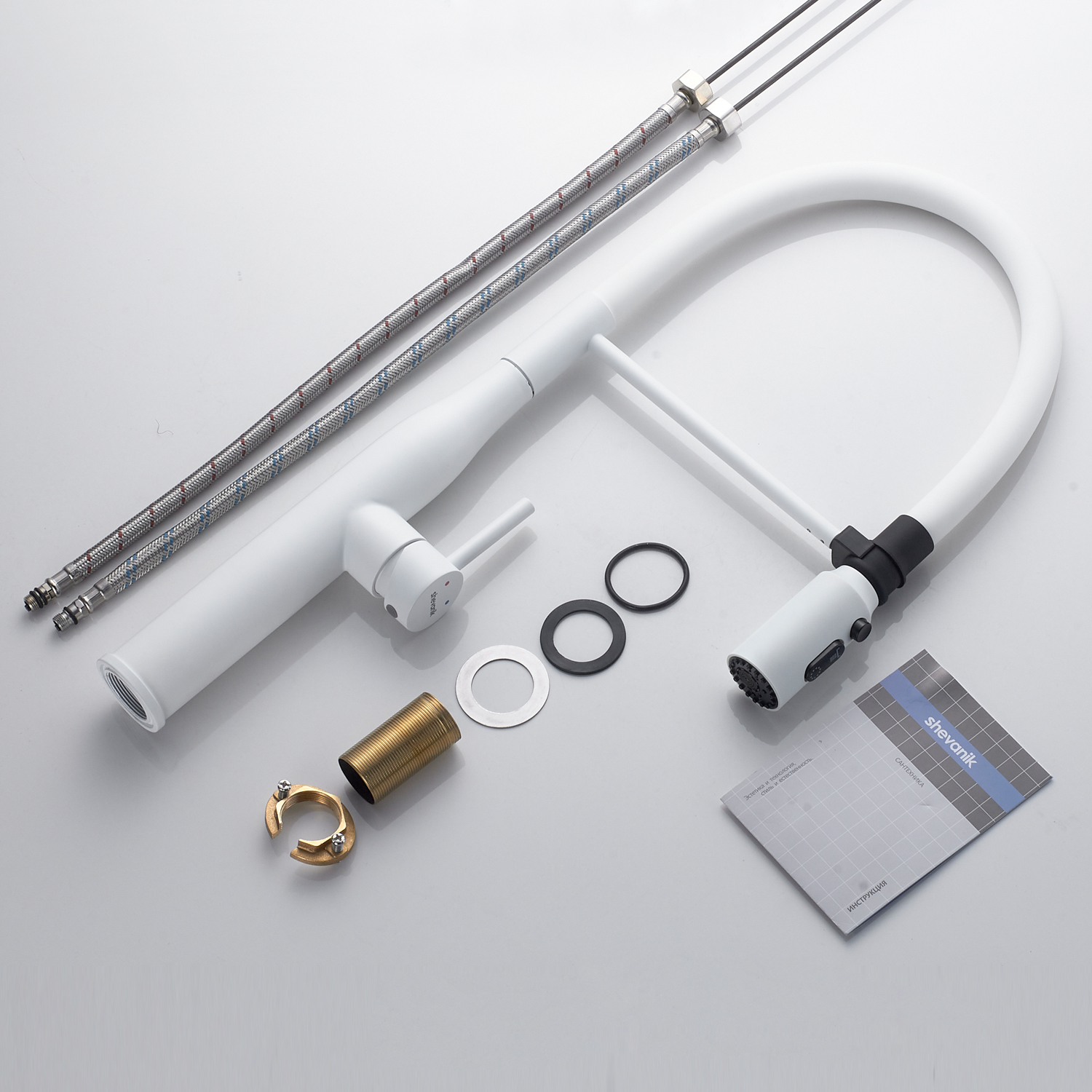 Смеситель для кухни с гибким изливом и режимом "душ" Shevanik S123C-1, белый