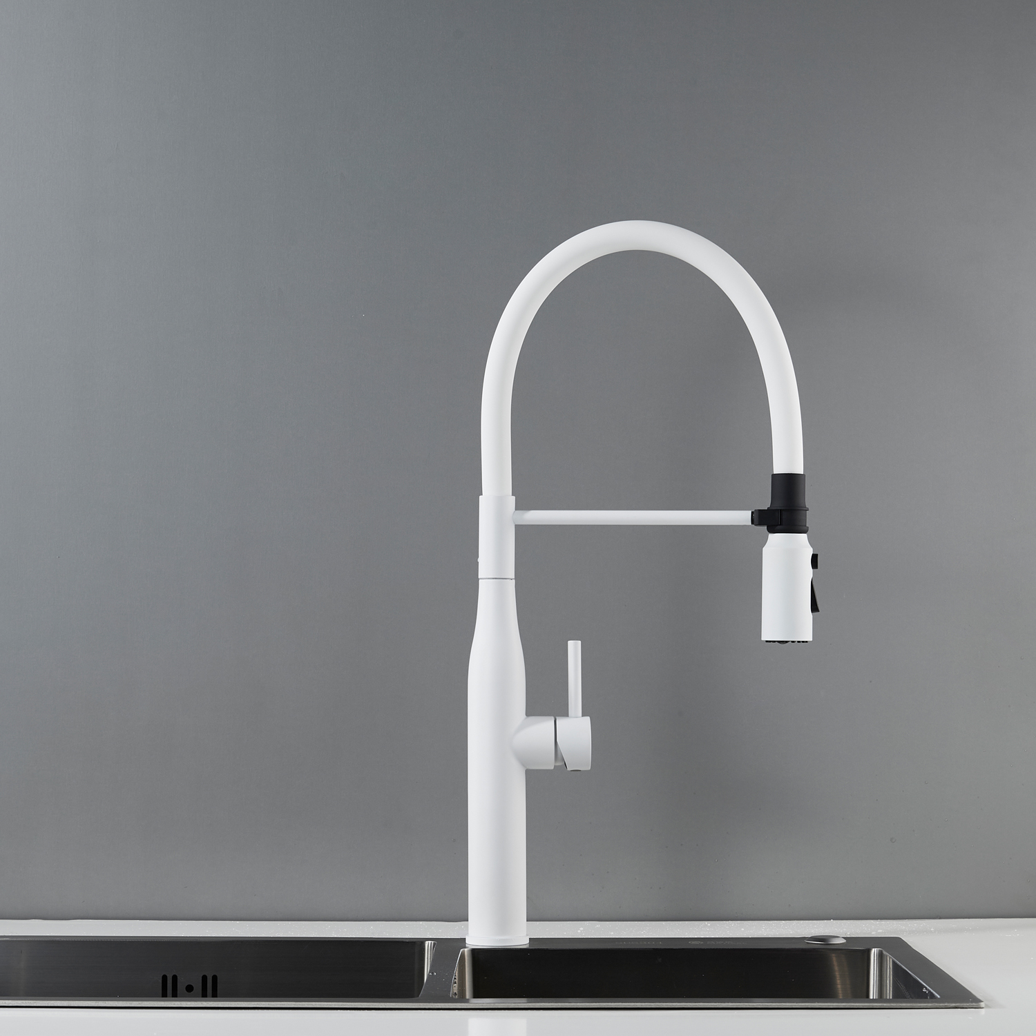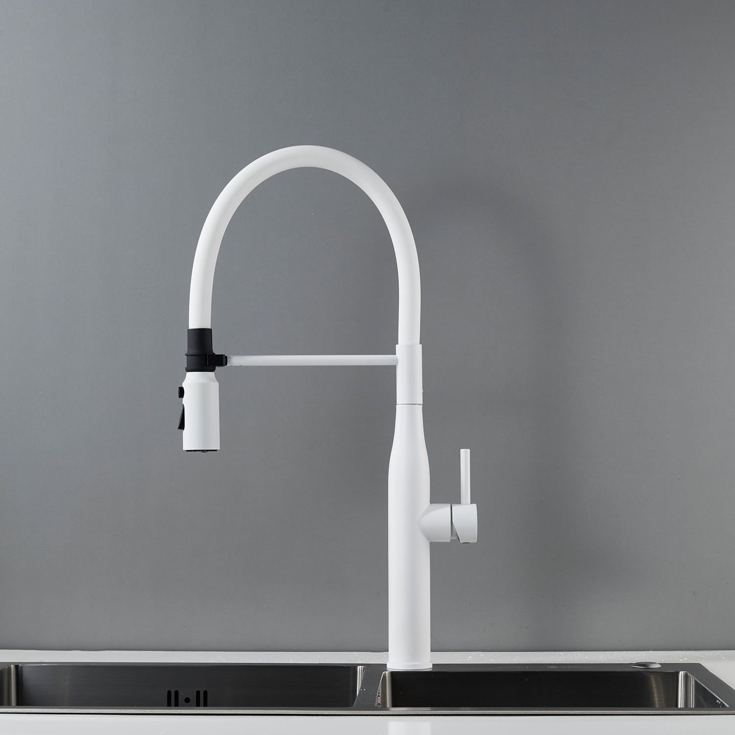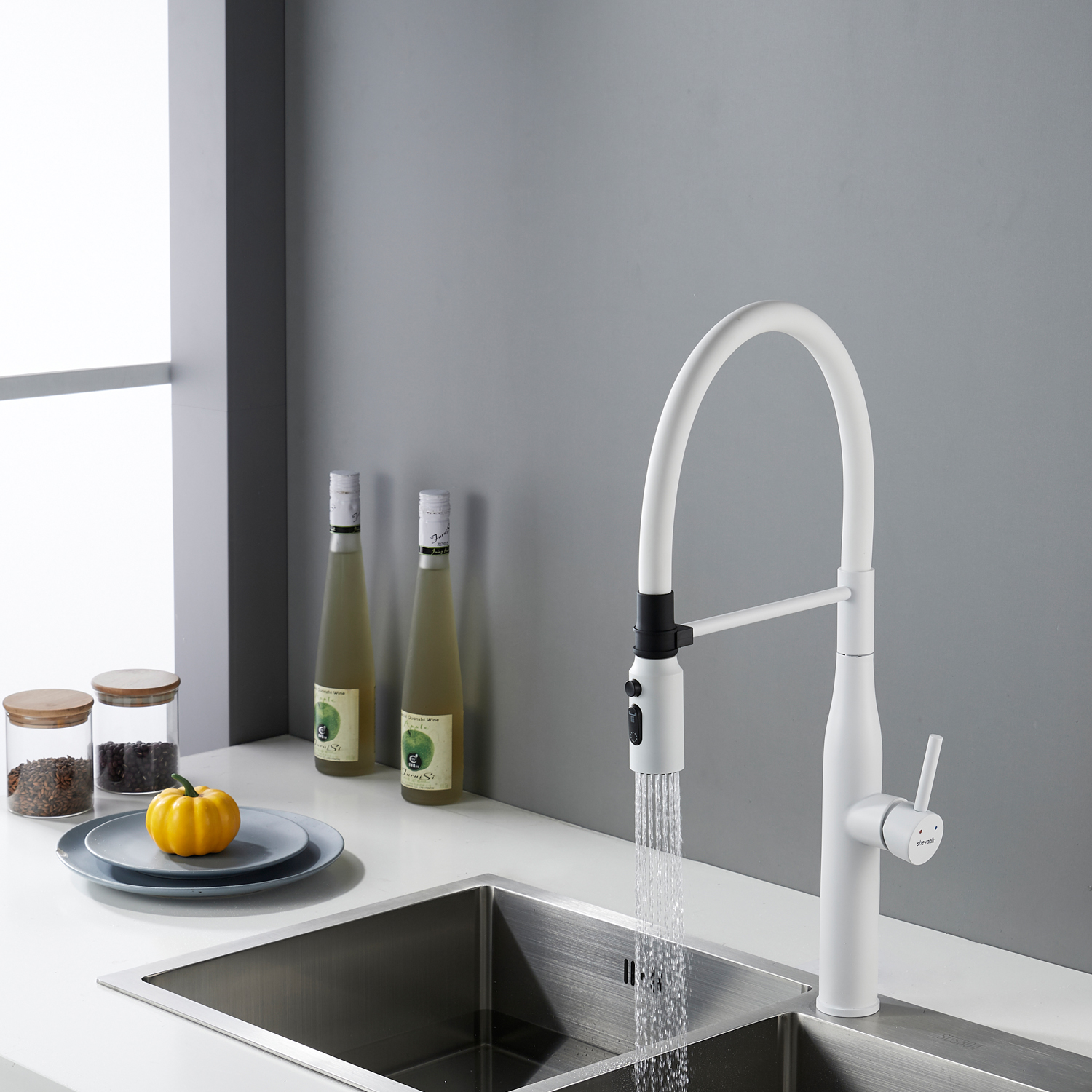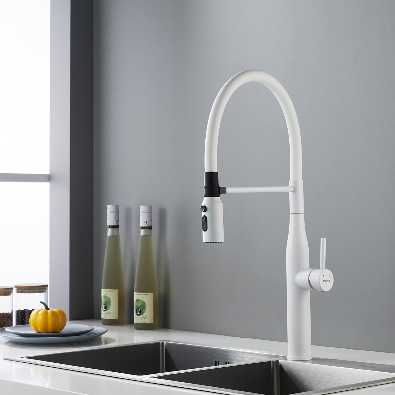 Смеситель для кухни с гибким изливом и режимом "душ" Shevanik S123C-1, белый