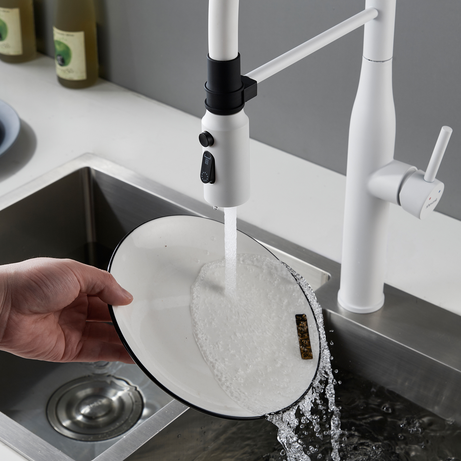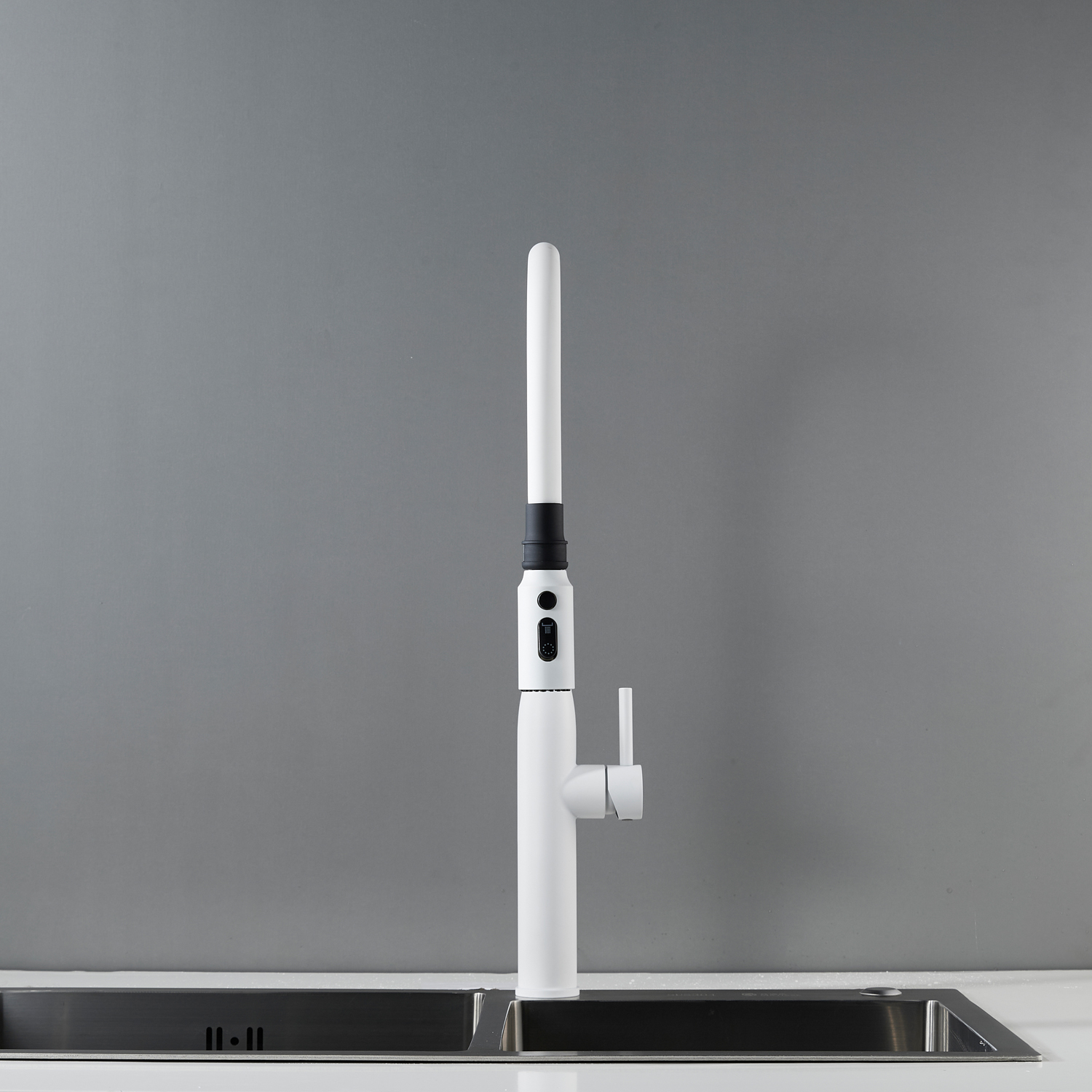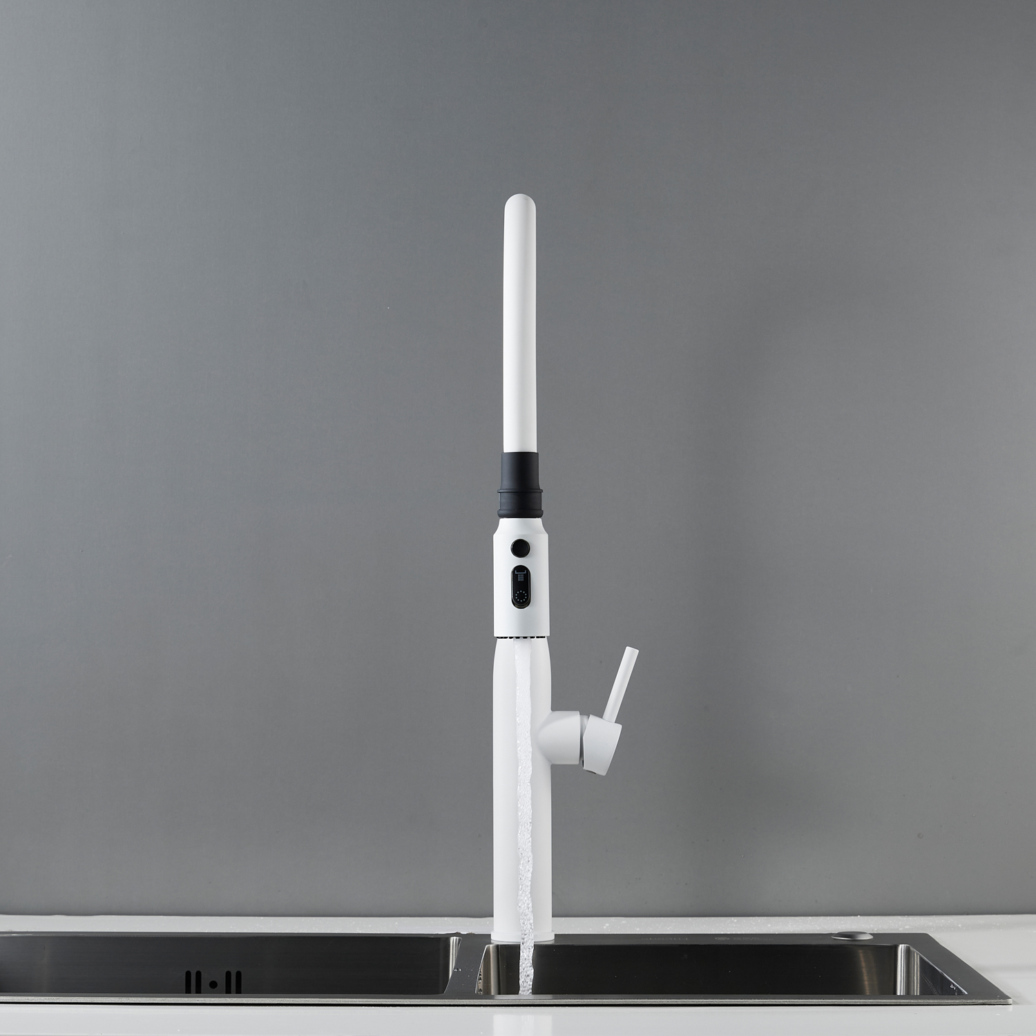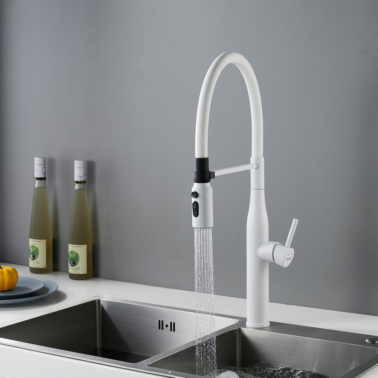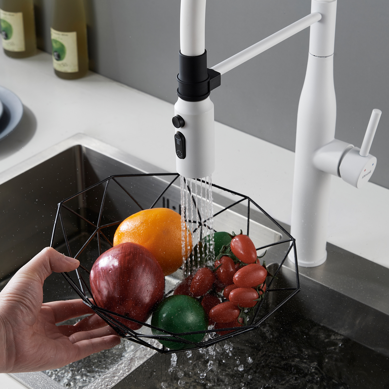 Смеситель для кухни с гибким изливом и режимом "душ" Shevanik S123C-1, белый