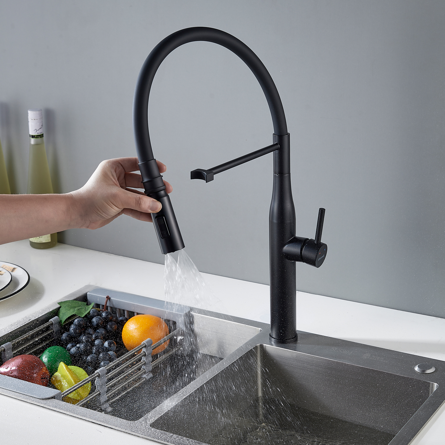 В режиме повседневного использования вода проходит через аэратор, обеспечивая мягкий, насыщенный воздухом поток без брызг. А при необходимости можно активировать двухрежимный режим «душ» — для более интенсивного напора, например, при мойке овощей или очистке раковины.