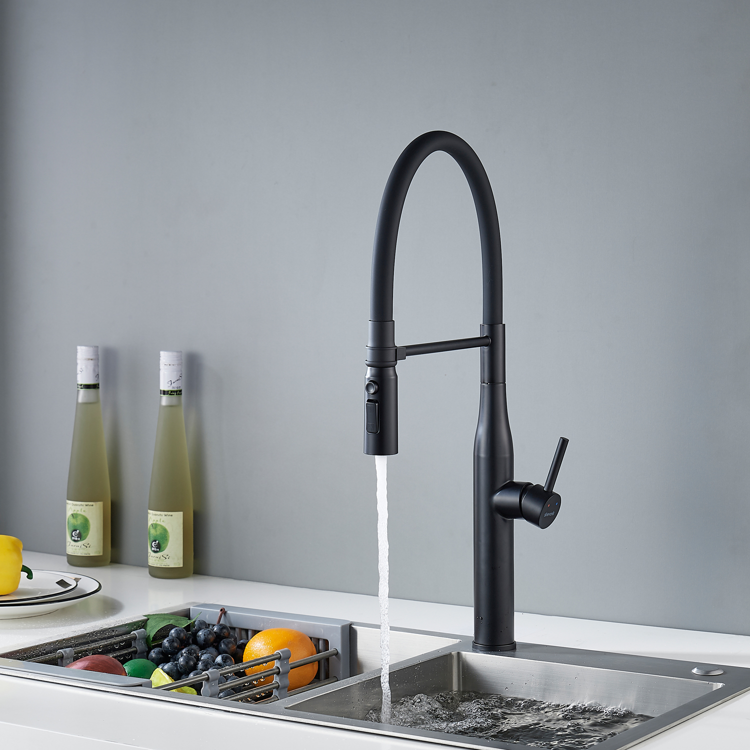 Смеситель для кухни с гибким изливом и режимом "душ" Shevanik S123H-3, черный