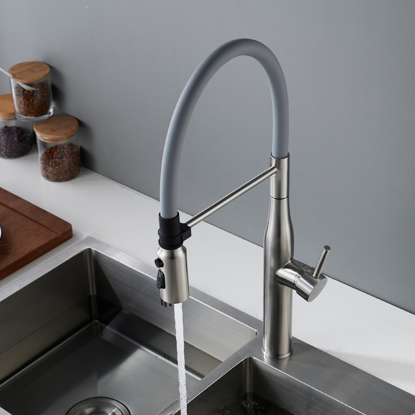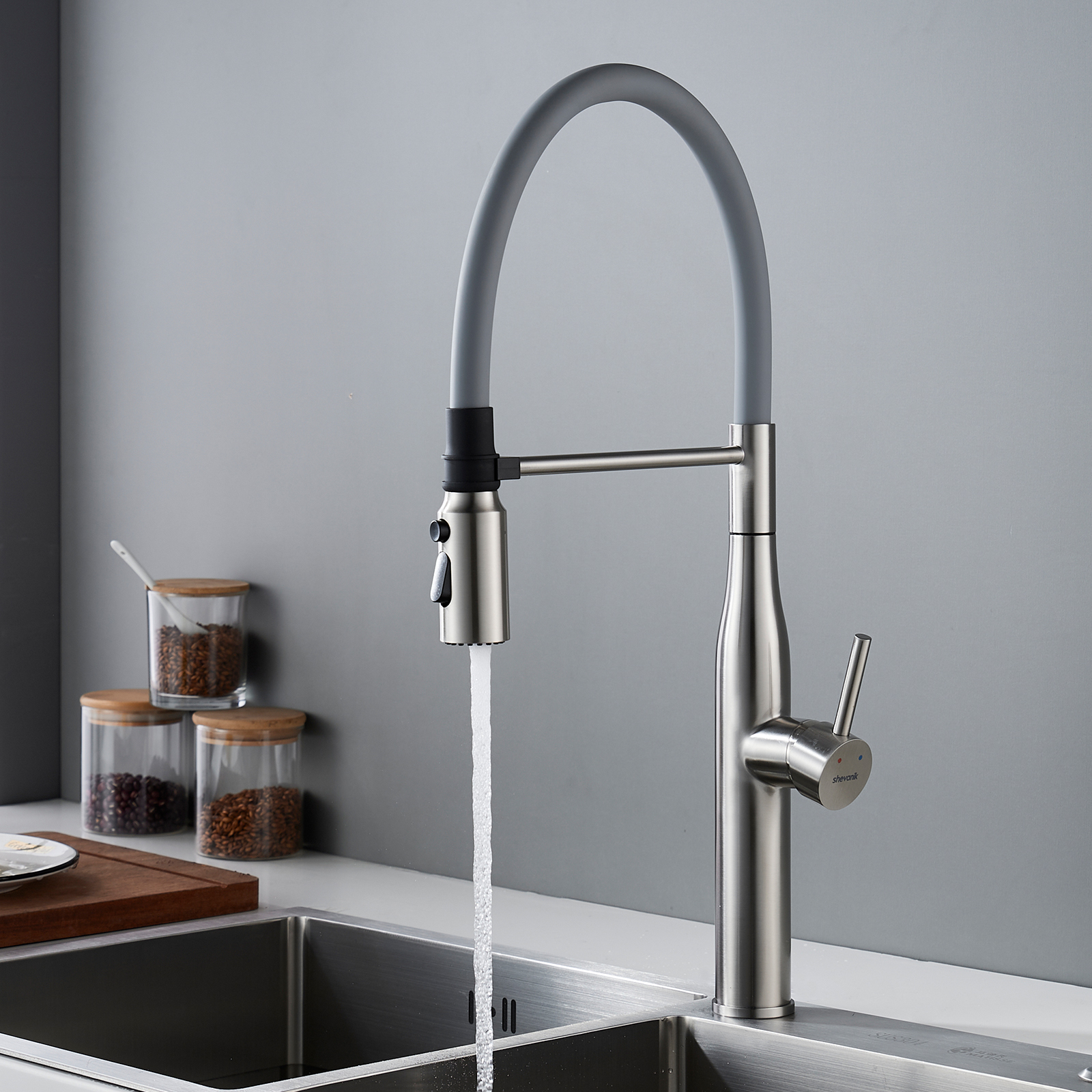 Смеситель для кухни с гибким изливом и режимом "душ" Shevanik S123L-9, сатин