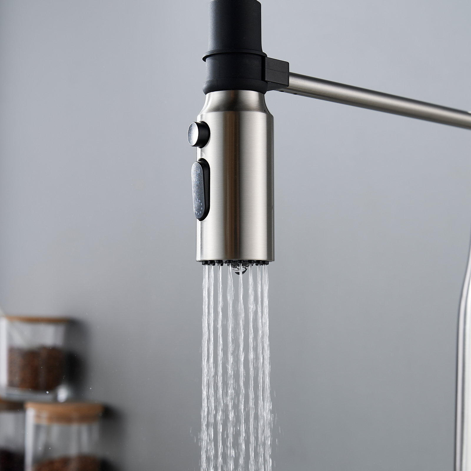 В режиме повседневного использования вода проходит через аэратор, обеспечивая мягкий, насыщенный воздухом поток без брызг. А при необходимости можно активировать двухрежимный режим «душ» — для более интенсивного напора, например, при мойке овощей или очистке раковины.