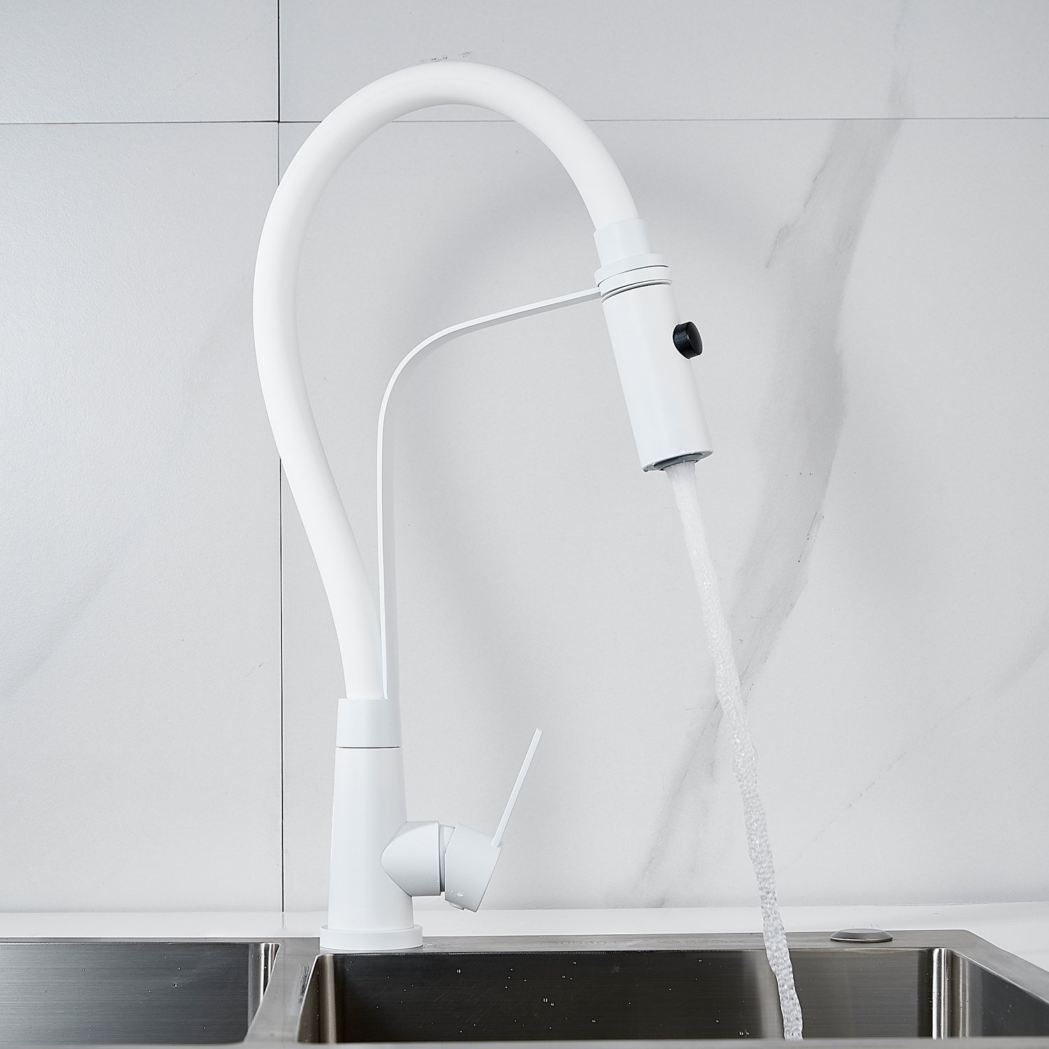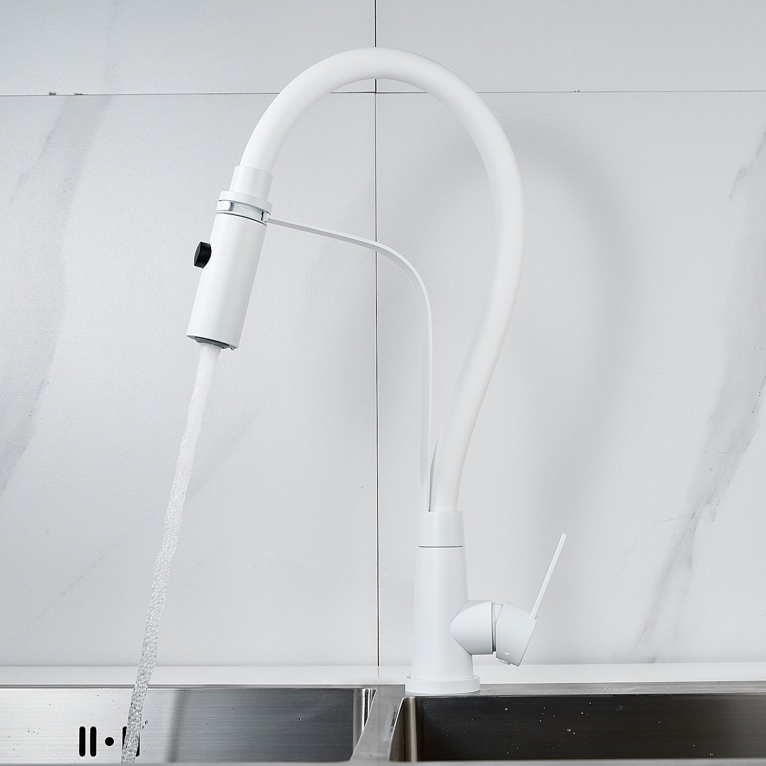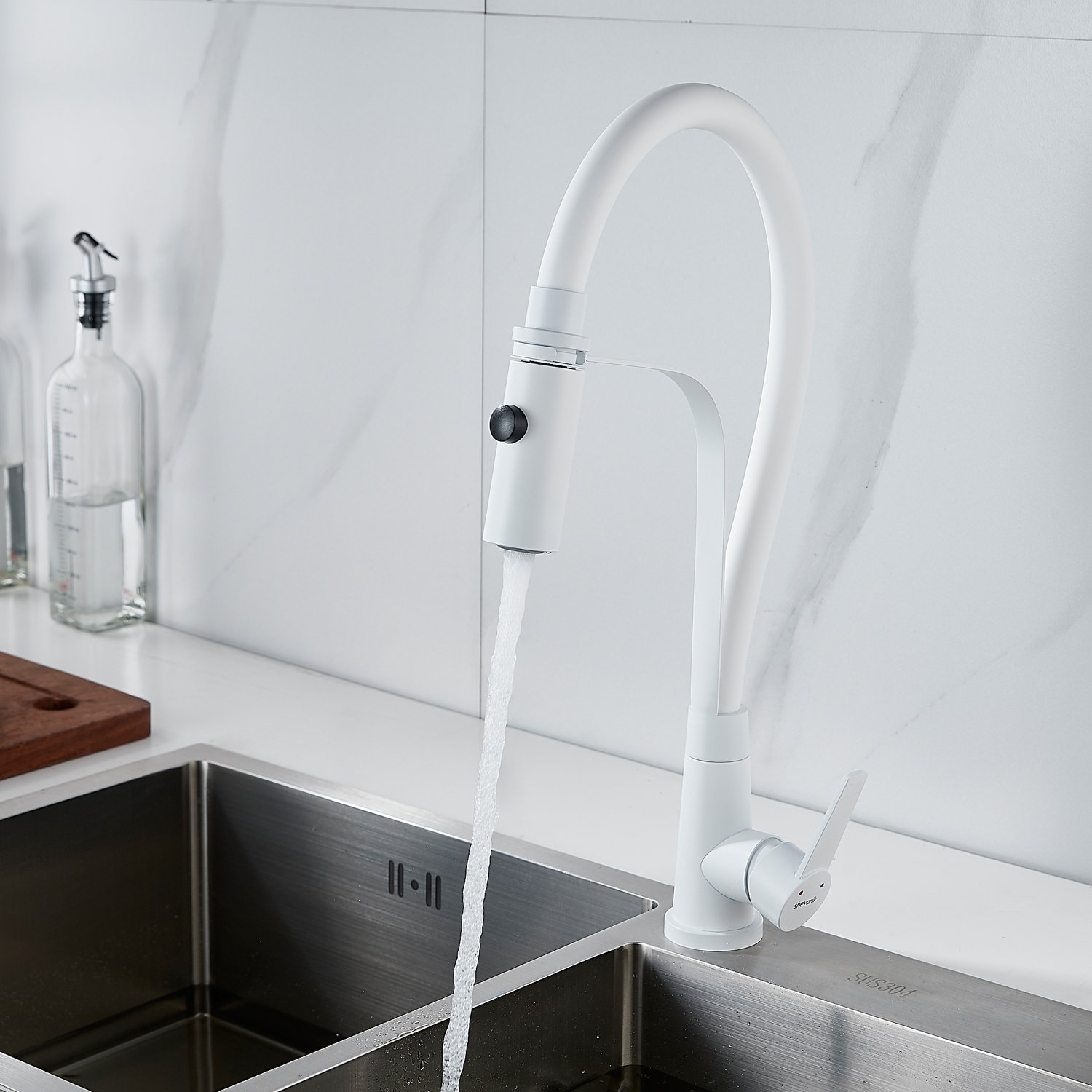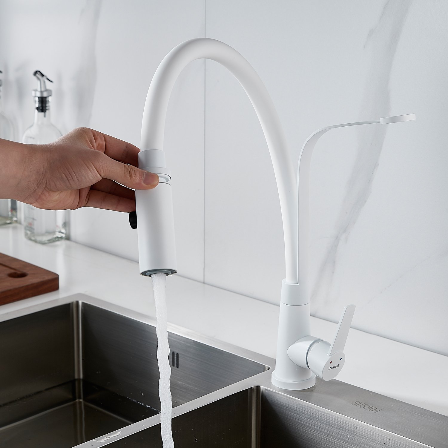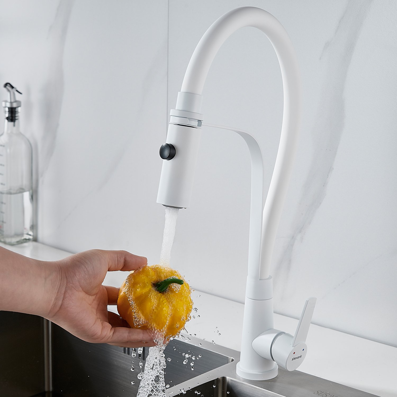 Смеситель для кухни с гибким изливом и режимом "душ" Shevanik S943C-1, белый