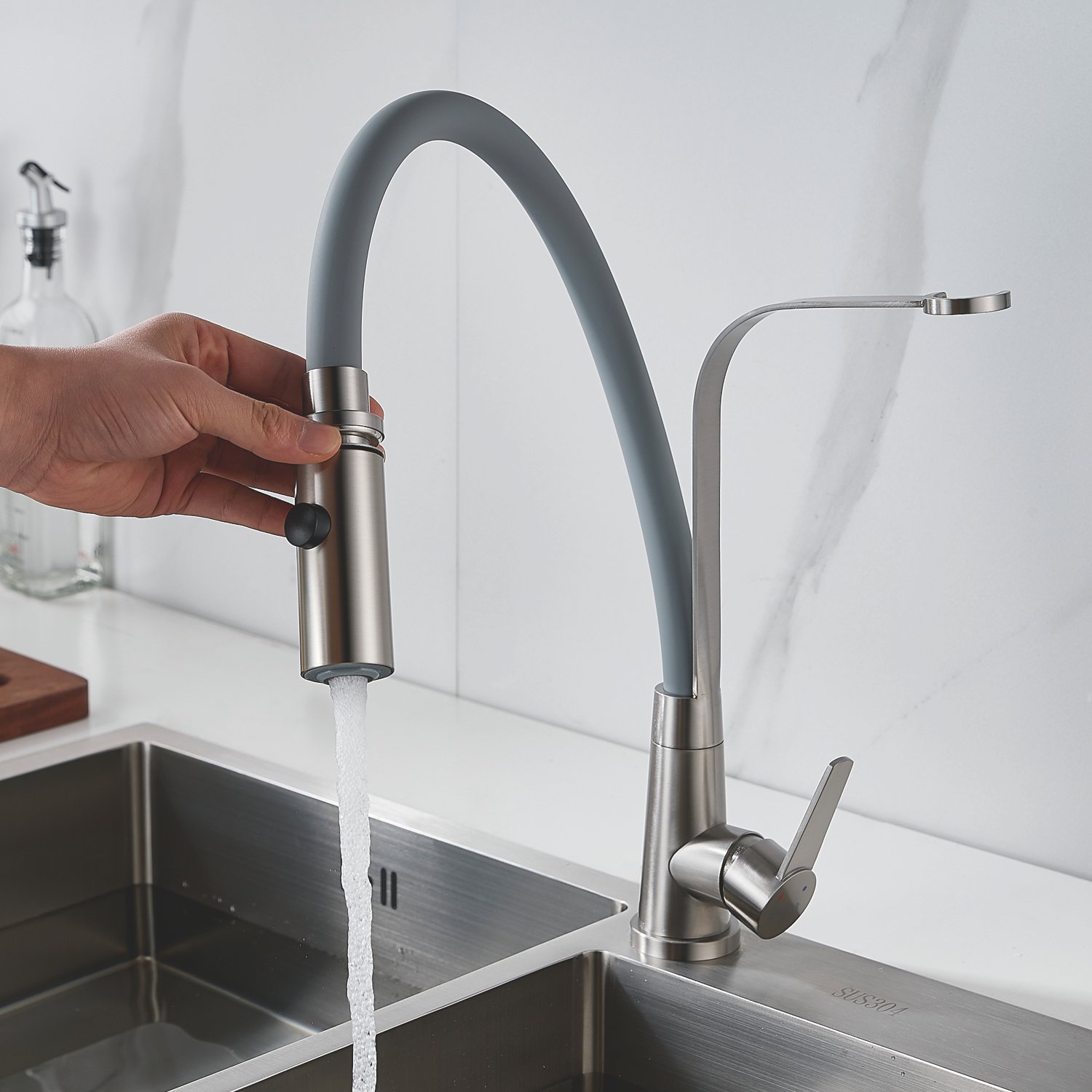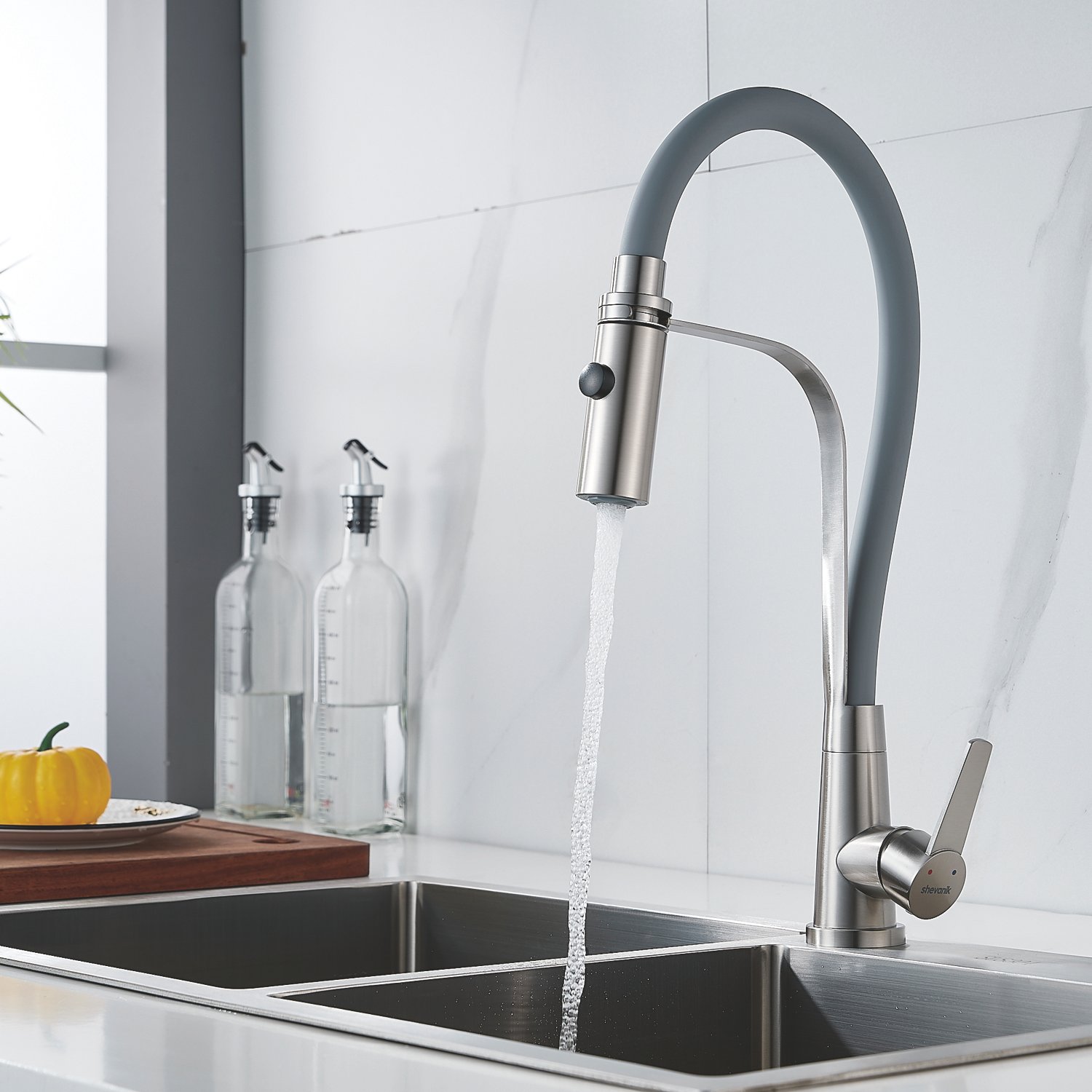 Смеситель для кухни с гибким изливом и режимом "душ" Shevanik S943L-9, сатин
