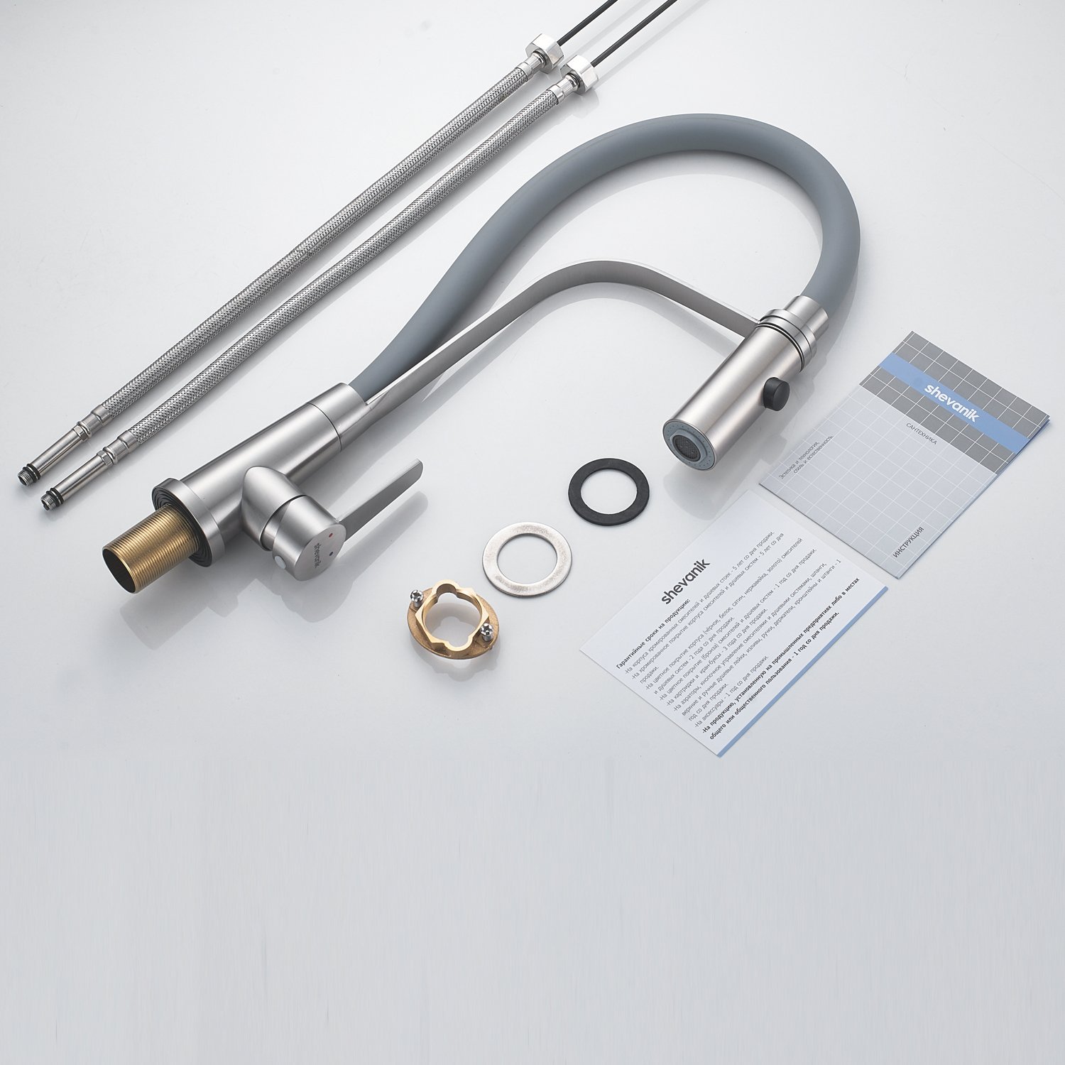 Смеситель для кухни Shevanik S943L-9 - идеальный выбор для вашей кухни! Гибкий излив с режимом “душ” обеспечивает удобство при мытье посуды и наполнении больших емкостей водой. Держатель гибкого излива позволяет зафиксировать его в “классическом” положении для комфортного использования. Изготовленный из высококачественной латуни, смеситель отличается прочностью и долговечностью. На него предоставляется гарантия 5 лет, что подтверждает его надежность. Стильный и функциональный смеситель Shevanik станет украшением вашей кухни и надежным помощником в повседневных делах!
